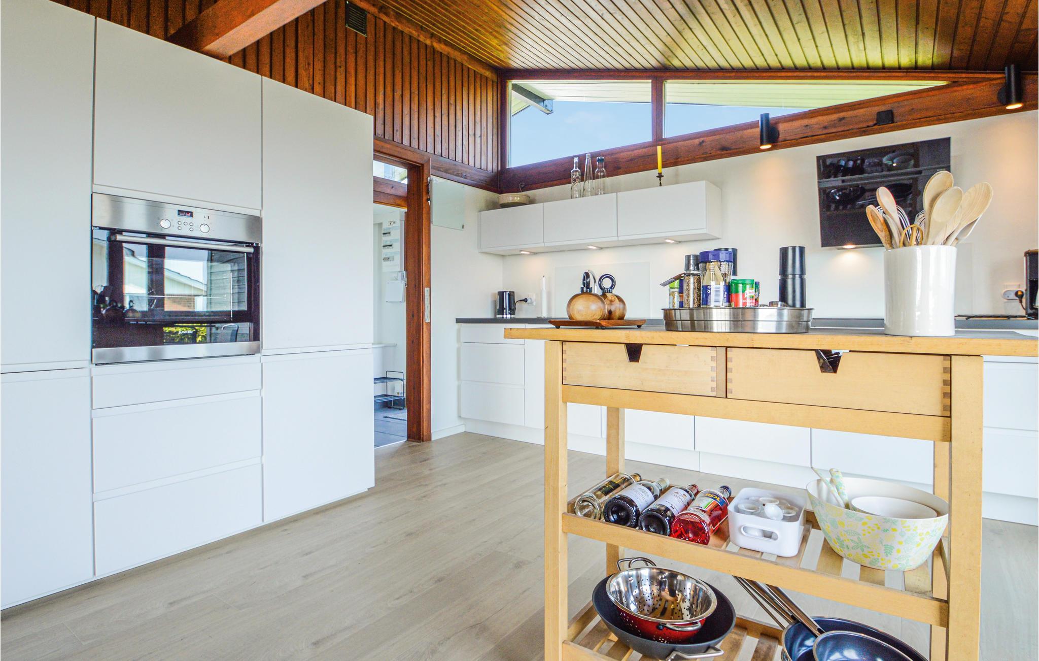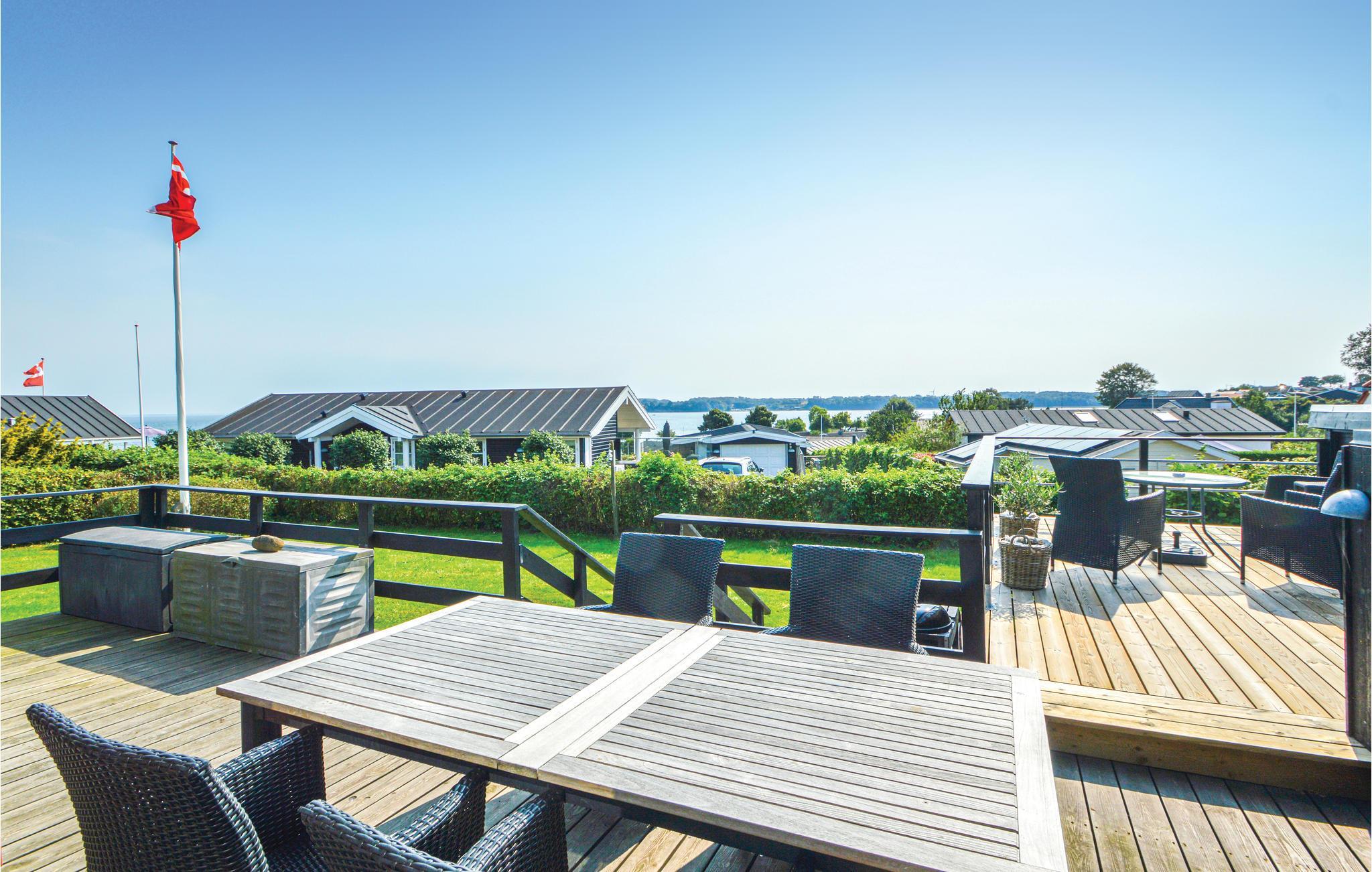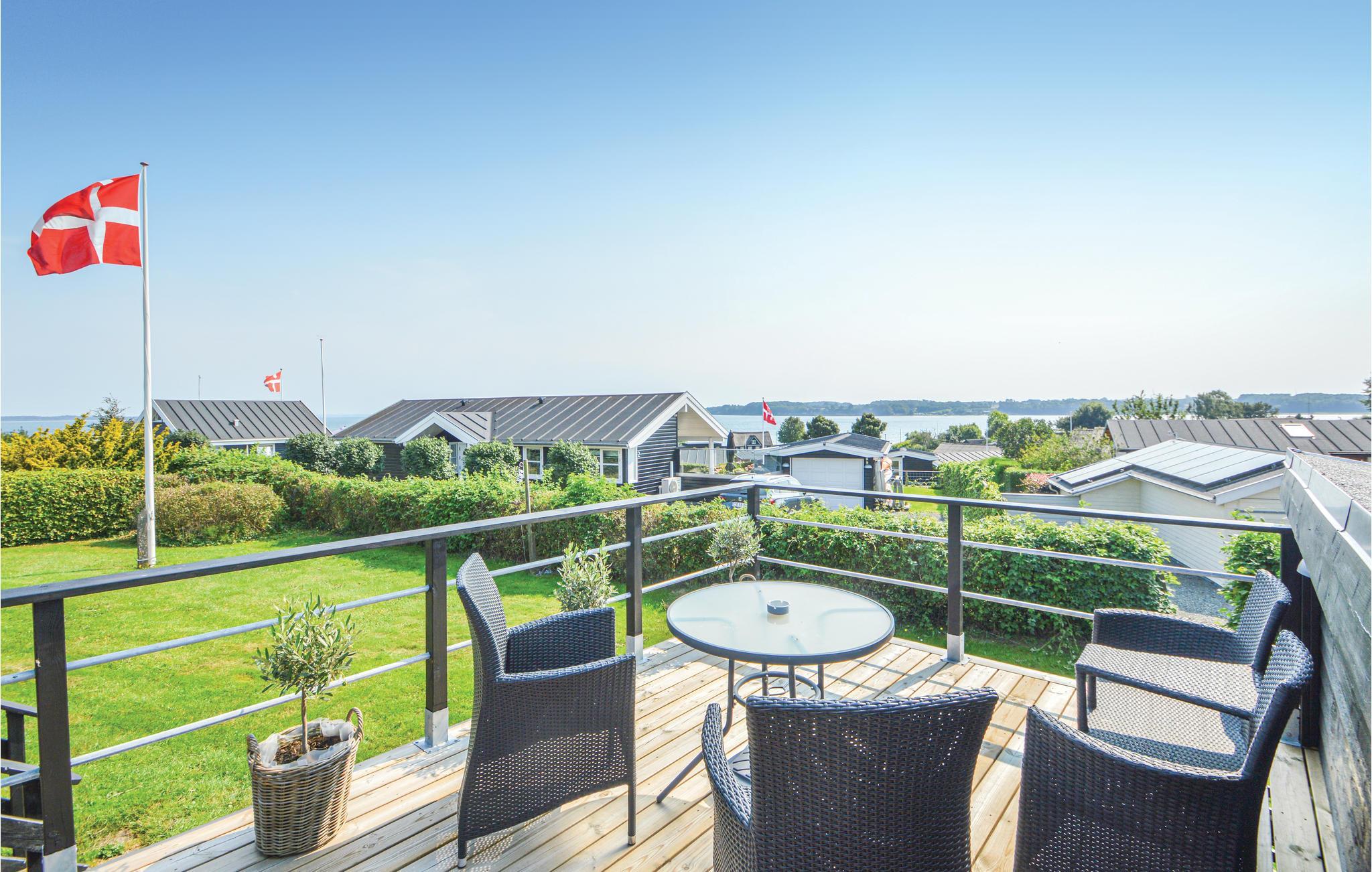 Schönes Ferienhaus mit Meerespanorama. Hier wohnen Sie an einer ruhigen Straße nahe am Wasser. Auf dem großen Grundstück sind mehrere Terrassen angelegt, die sich auf verschiedenen Niveaus befinden und so je nach Wetterlage Lee bieten können. Genießen Sie den schönen Blick auf den Kleinen Belt.