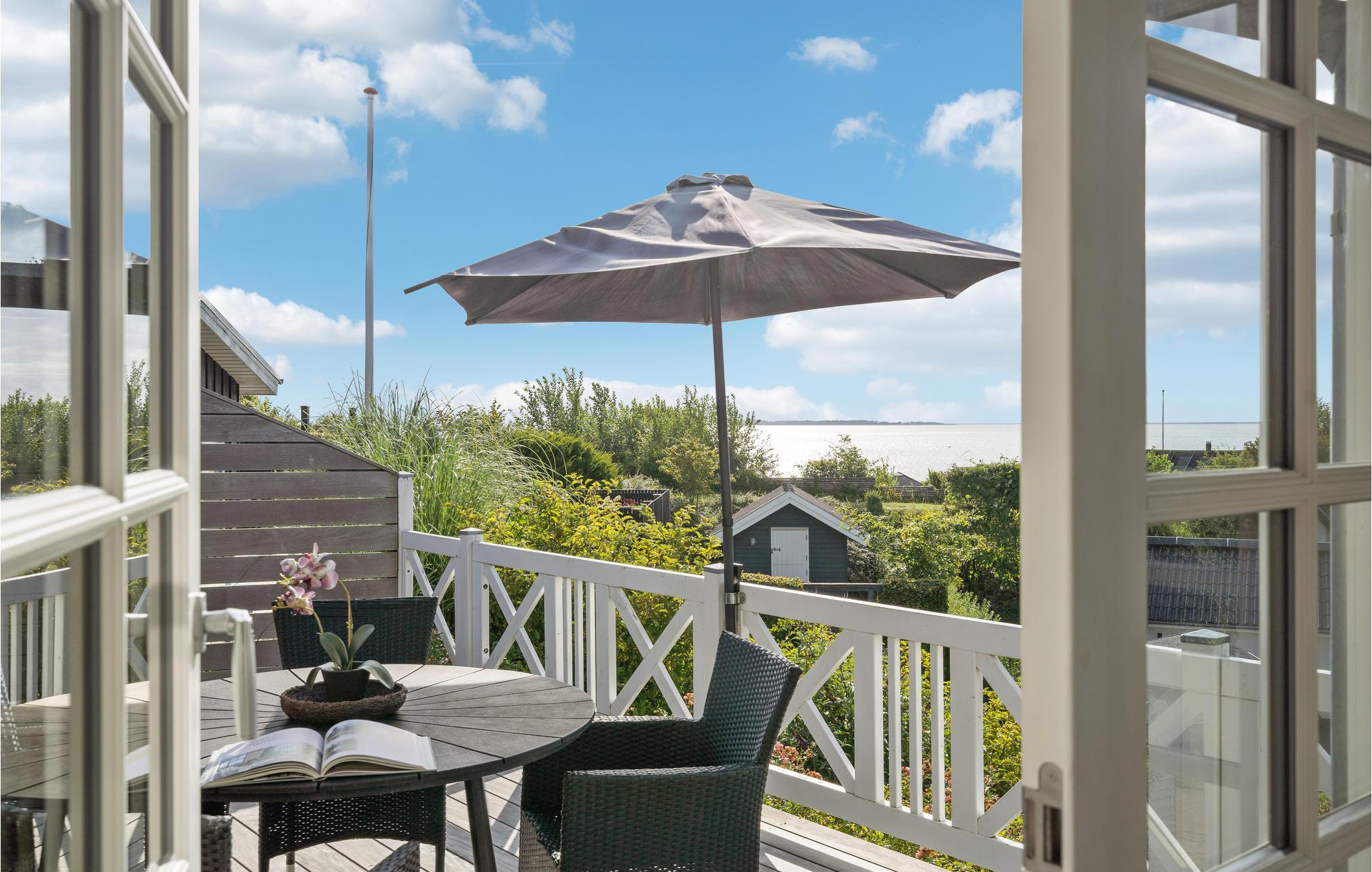 Charmantes Ferienhaus mit Meerblick und Strandnähe in Hejlsminde, Dänemark, ideal für entspannte Urlaubstage am Wasser.