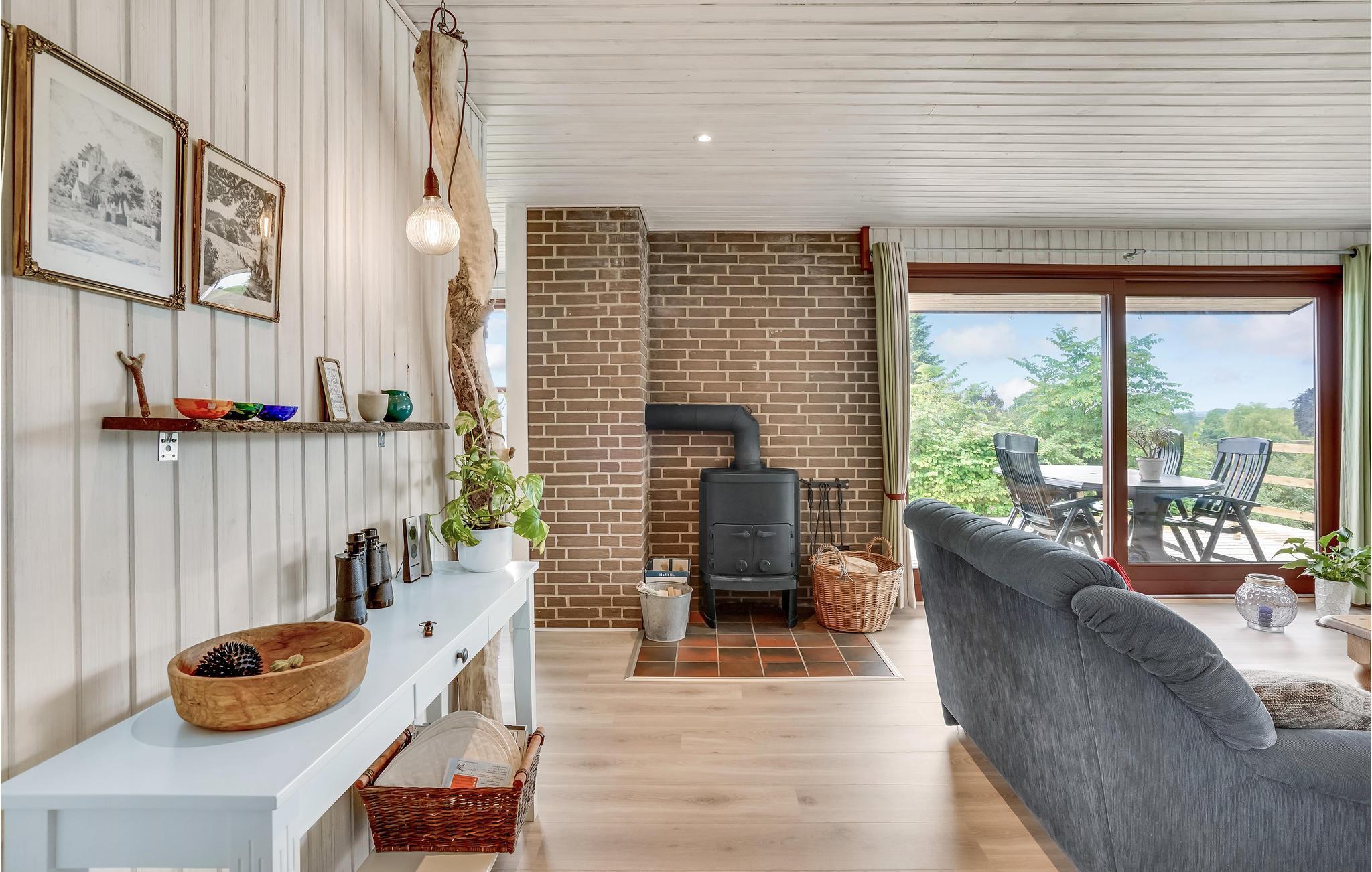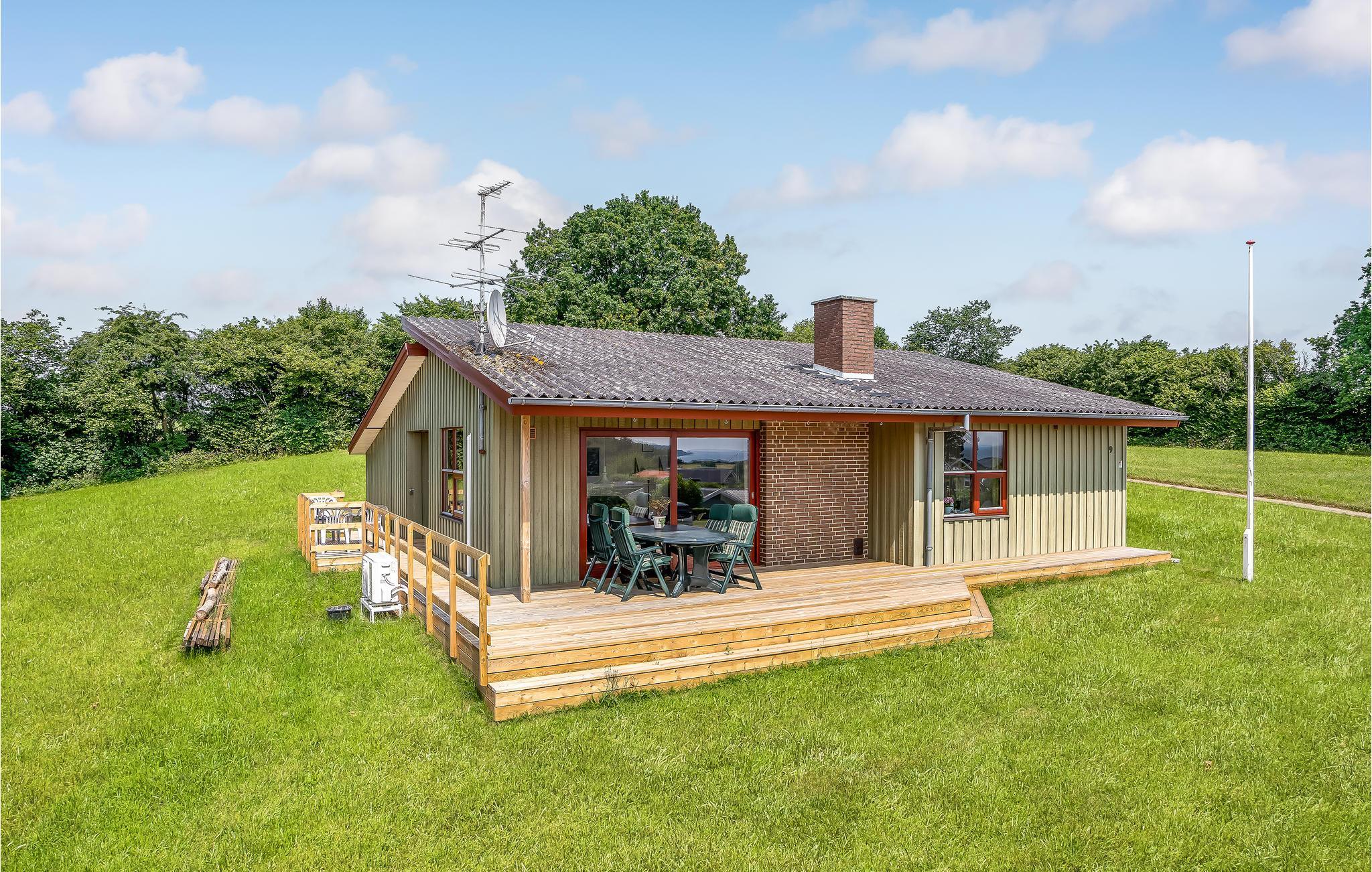 Ferienhaus in Hejlsminde mit Panorama-Meerblick, großem Grundstück, Terrasse und gemütlichem Kaminofen.