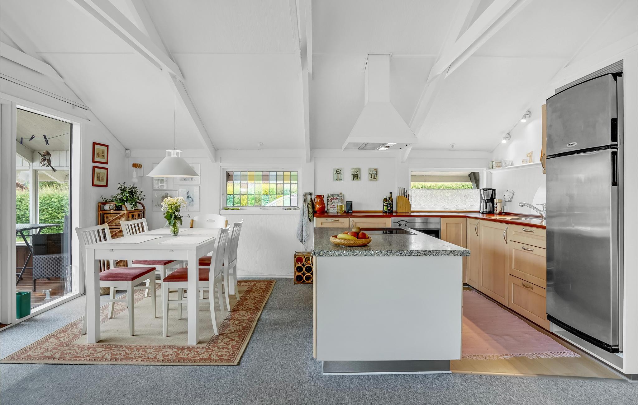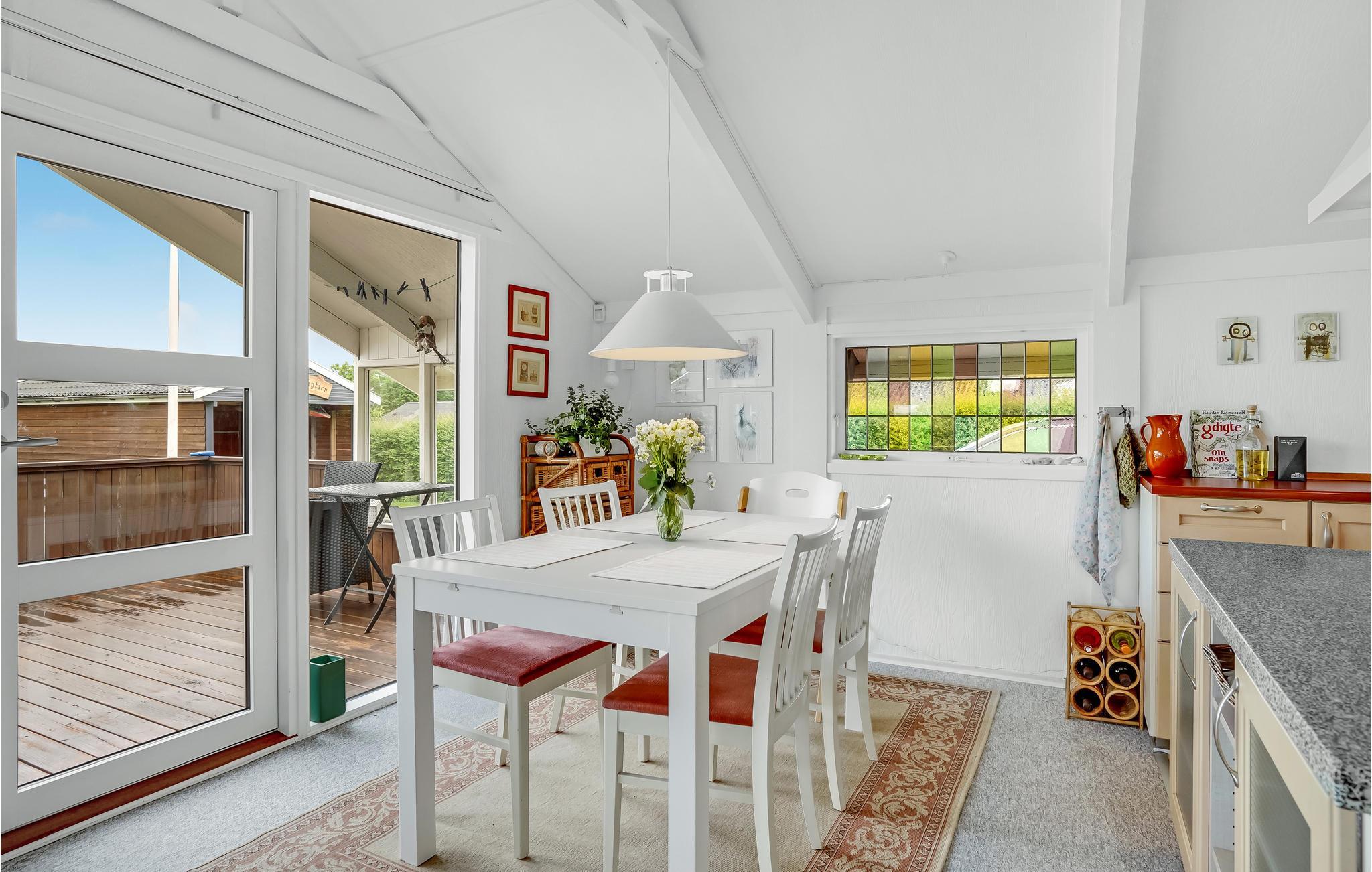 Auf einem großen Grundstück im schönen Ferienhausgebiet Hejlsminde finden Sie dieses gepflegte Ferienhaus. Das Haus ist hell und gut eingerichtet mit Küche und Wohnzimmer in offener Verbindung. Vom Wohnzimmer gelangen Sie auf die große, teilweise überdachte Terrasse, wo Sie sitzen und den Garten sowie die hellen Sommerabende genießen können. Das Haus verfügt über zwei Schlafzimmer und ein schönes Bad. Nur 200 m vom Haus befindet sich ein Kinderspielplatz.