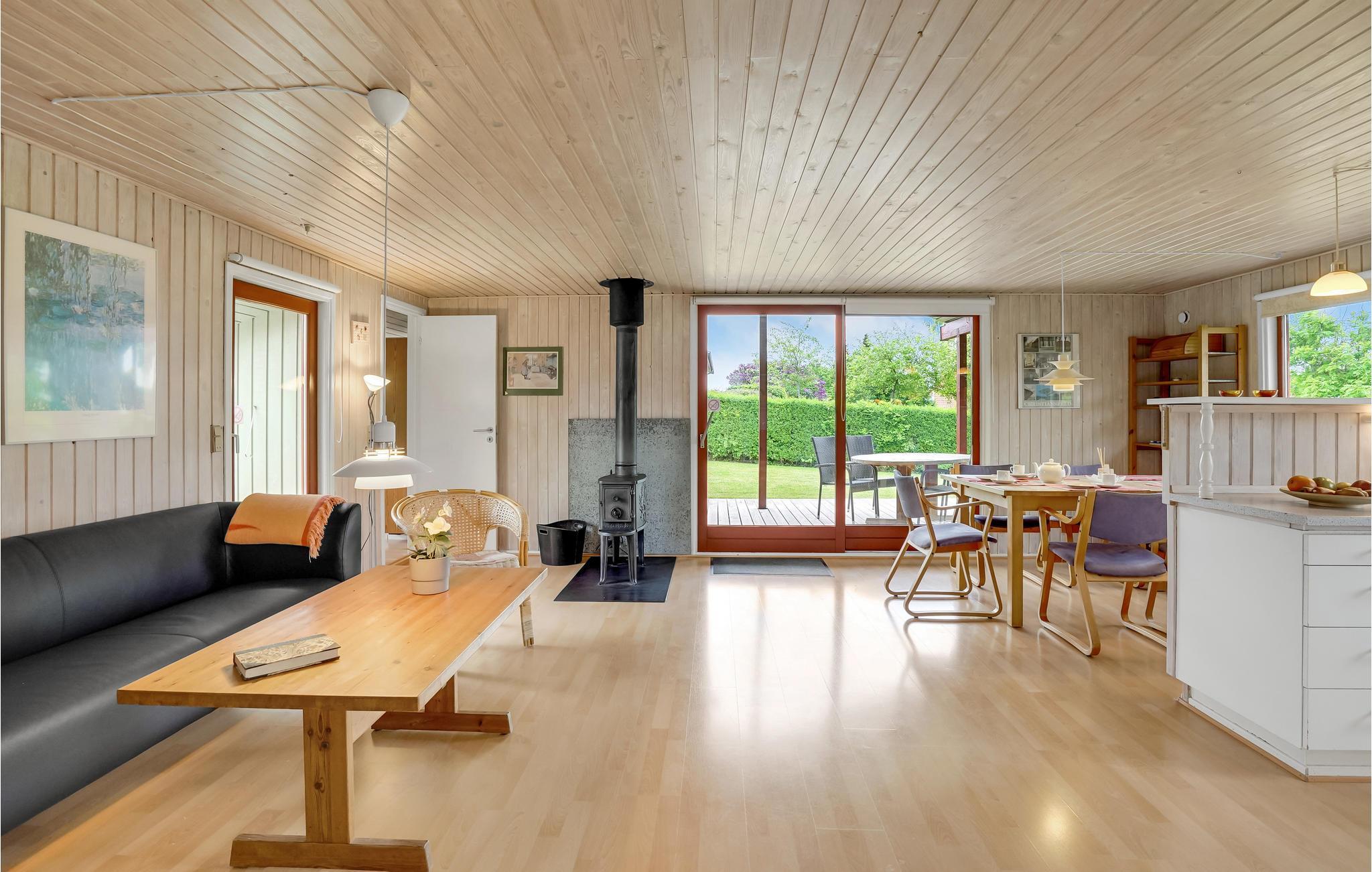 In einer ruhigen Straße in Hejlsmindes Ferienhausgebiet liegt dieses gemütliche Ferienhaus auf einem großen, abgeschirmten Grundstück. Hier können Sie sich ungestört aufhalten und das Leben im Freien auf der überdachten Terrasse genießen. Das Haus ist mit einem Wohnzimmer-Küchenbereich ausgestattet, sechs Schlafplätze sind auf drei Schlafzimmer verteilt, so dass es viel Platz für die Familie gibt. Machen Sie es sich vor dem prasselnden Kaminofen bequem oder nutzen Sie an kühleren Abenden die Wärmepumpe.