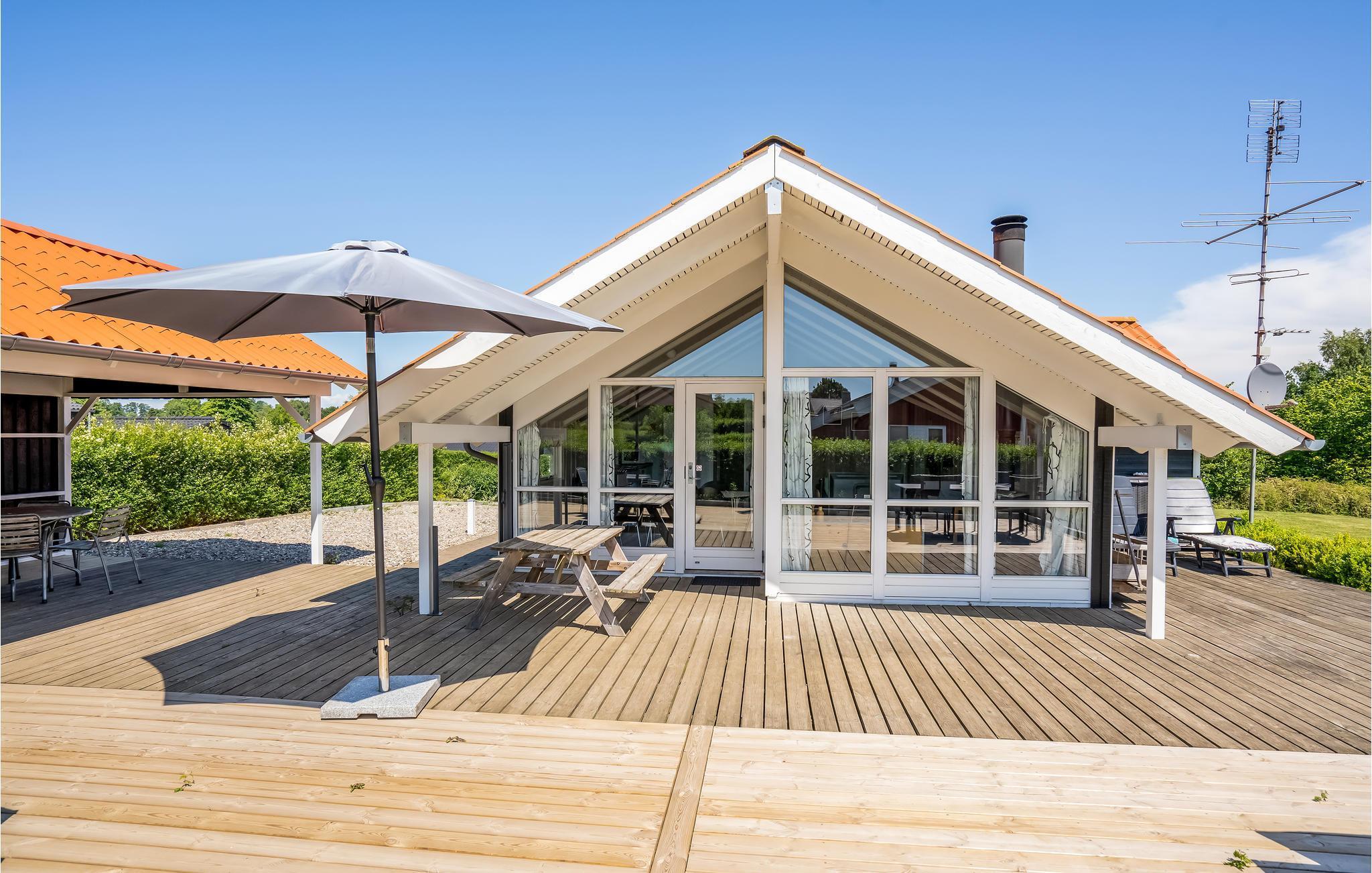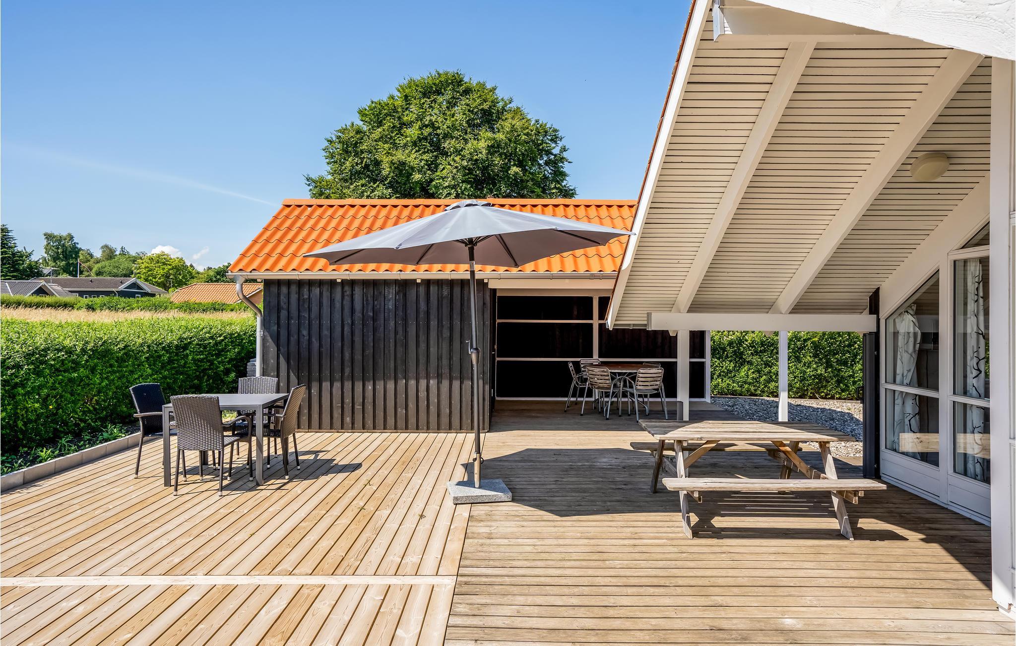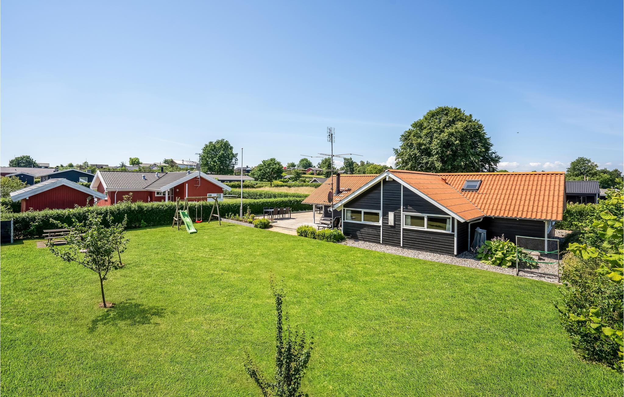 Gemütliches Holzferienhaus mit großem Garten, Kaminofen und Spielplatznähe in Hejls, Dänemark für erholsame Familienferien.