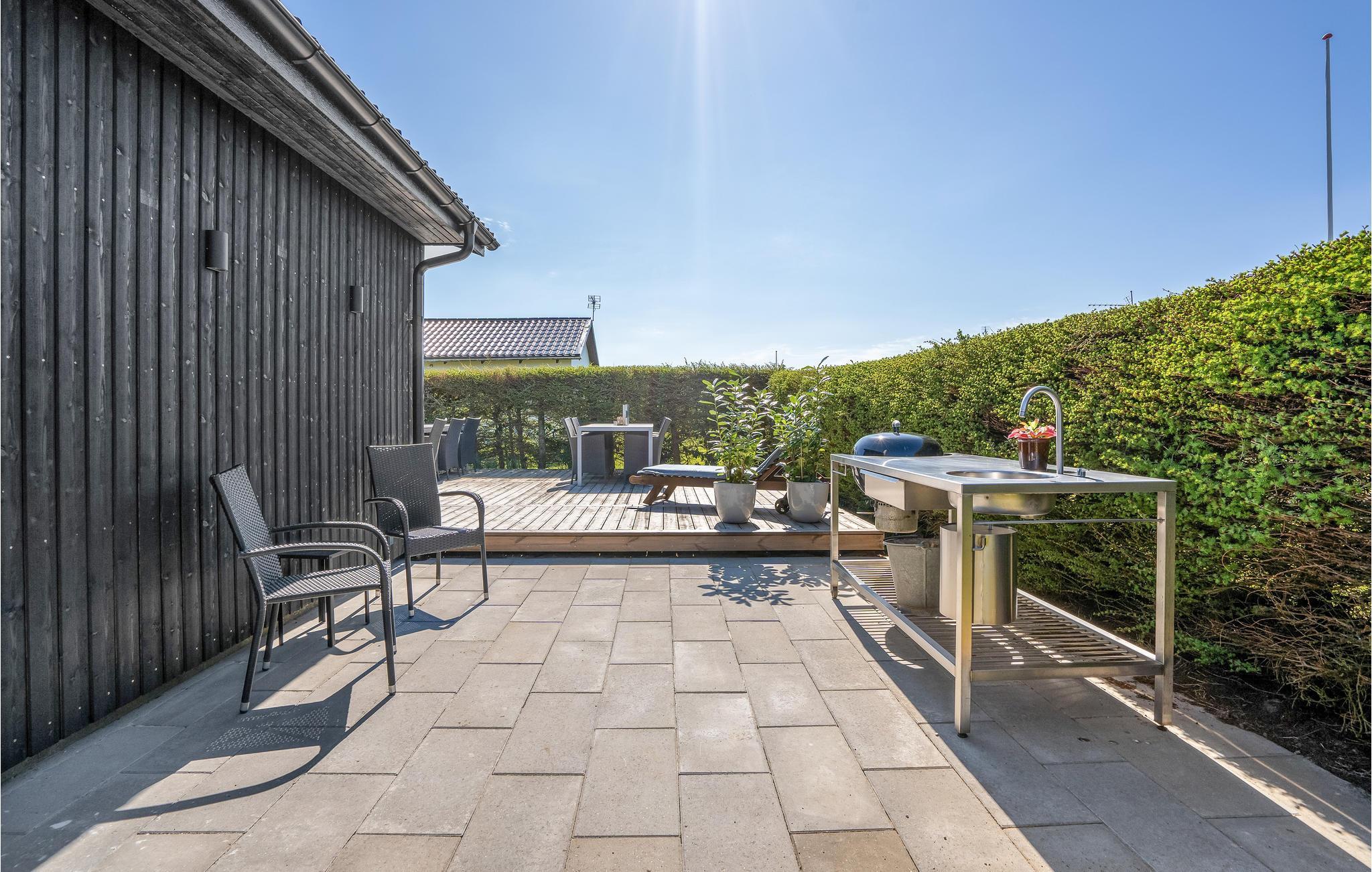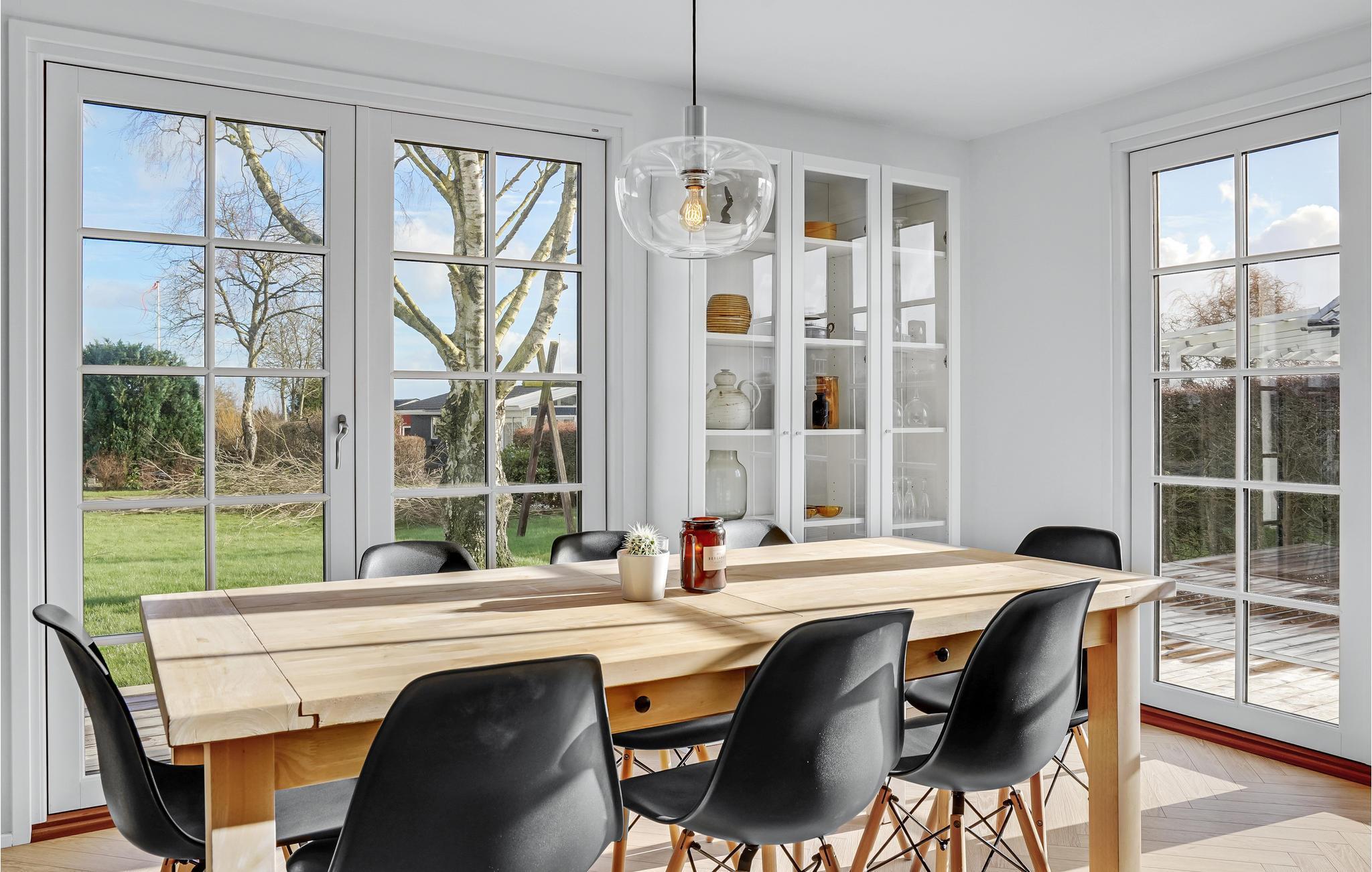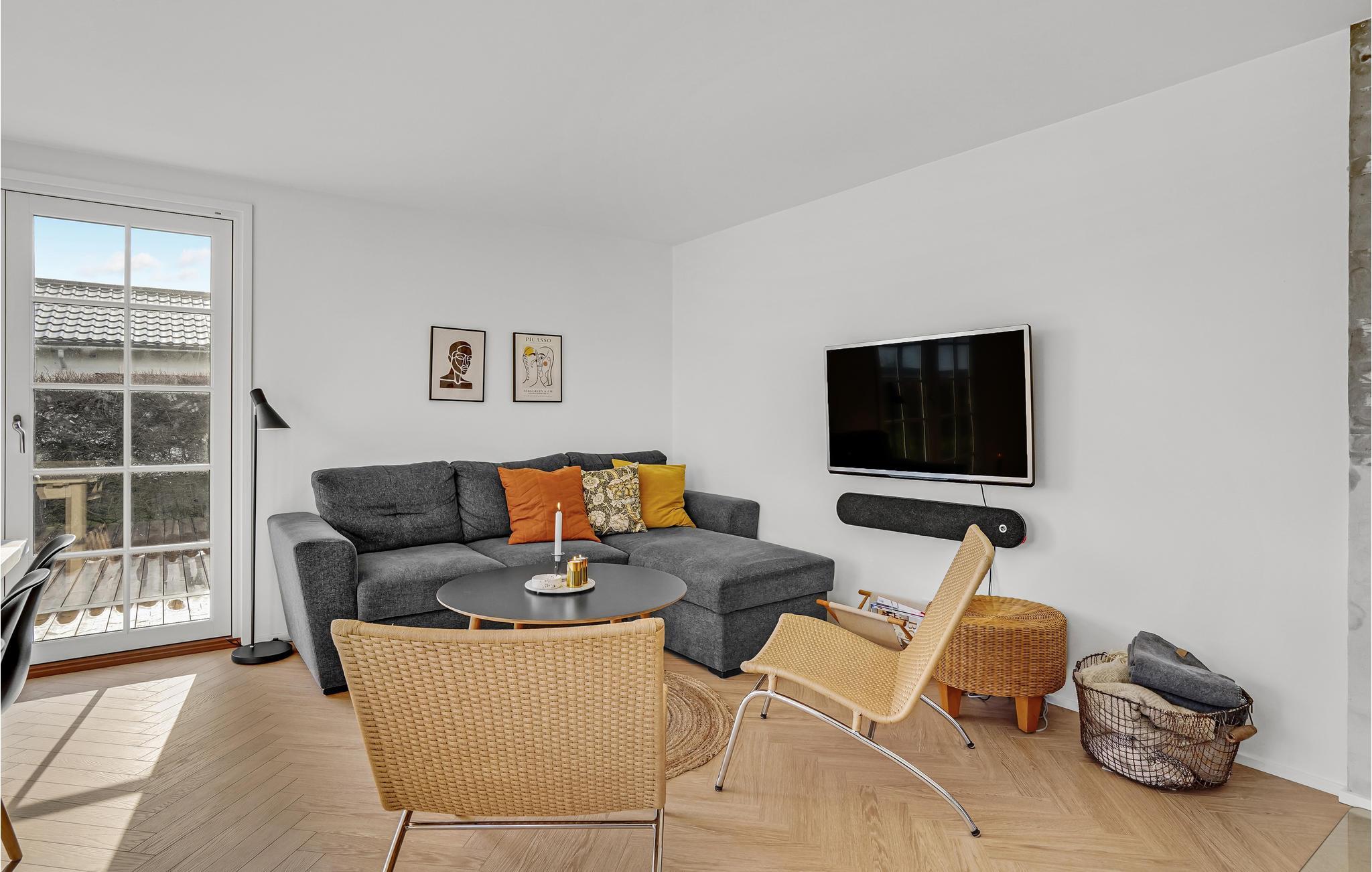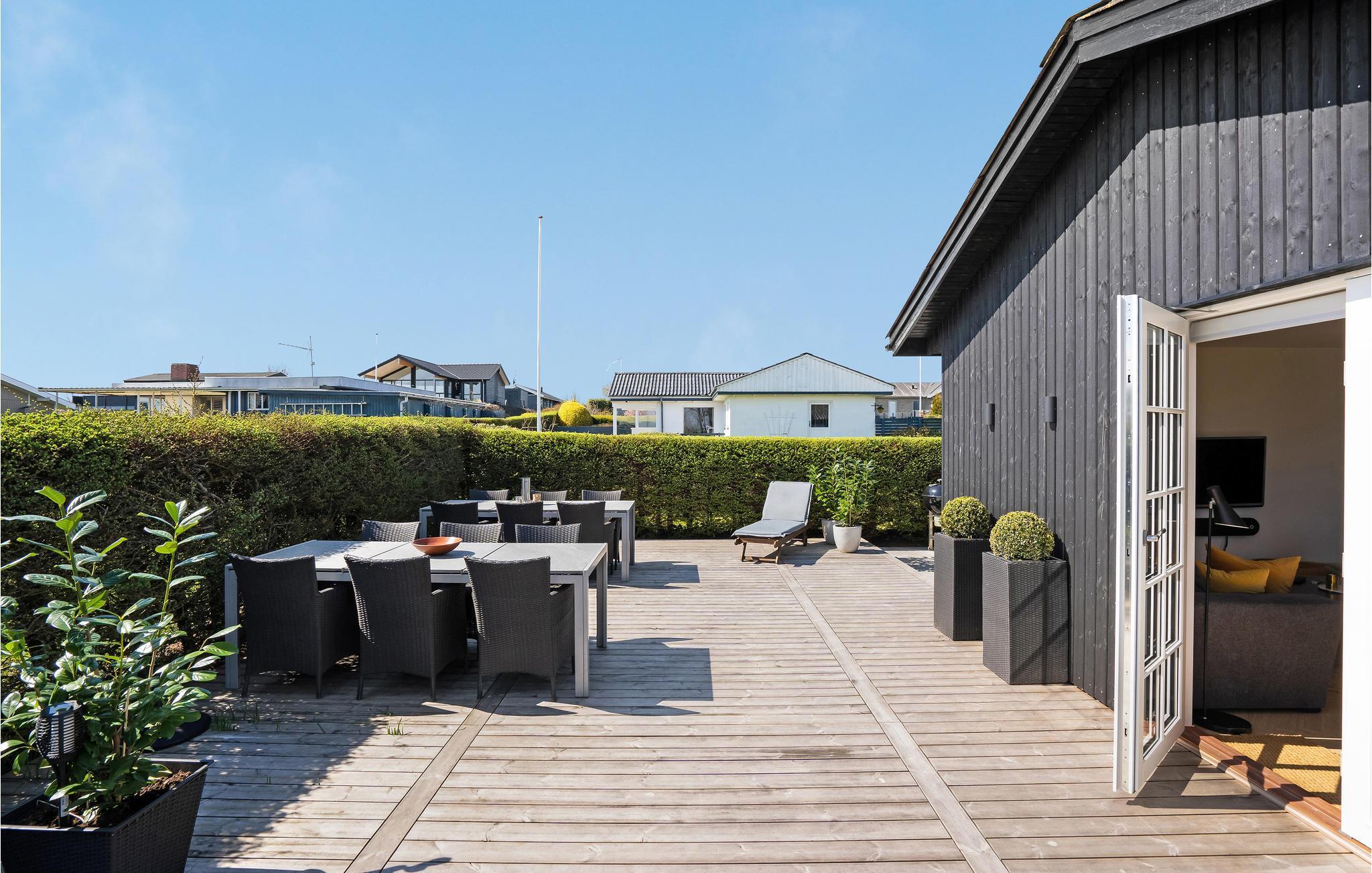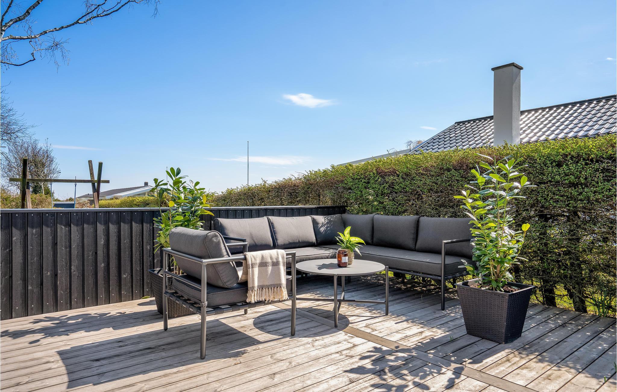 Nur 200 m vom Strand entfernt liegt dieses schöne Ferienhaus auf einem schönen ungestörten Gartengrundstück am Ende einer Sackgasse. Das Haus macht einen guten Eindruck und ist mit einem geräumigen Wohnzimmer ausgestattet. Dieses ist mit Kaminofen eingerichtet und mit der Küche verbunden, wo Sie auf dem Barhocker am Küchentisch sitzen und gesellige Stunden beim Kochen verbringen können.