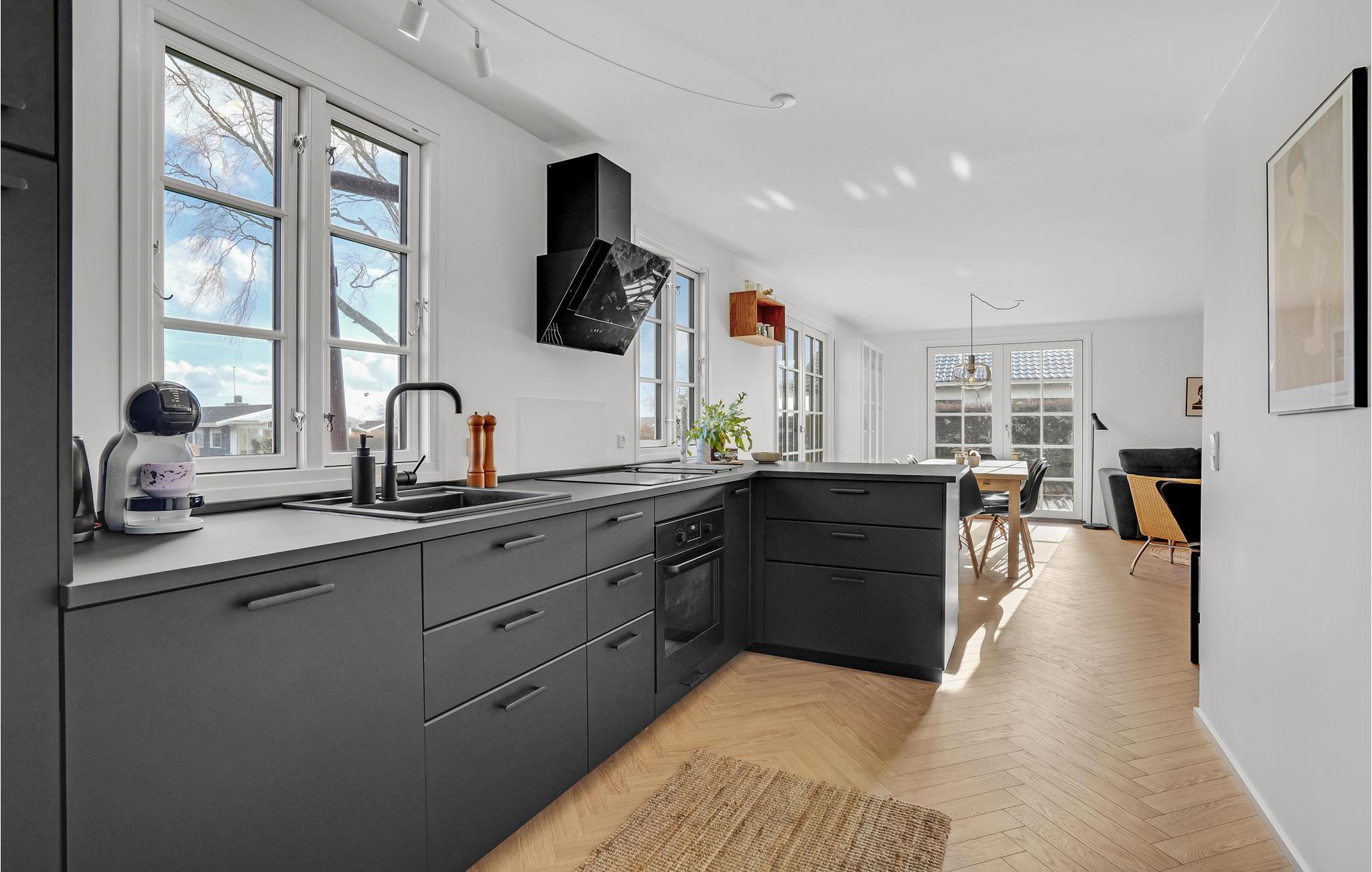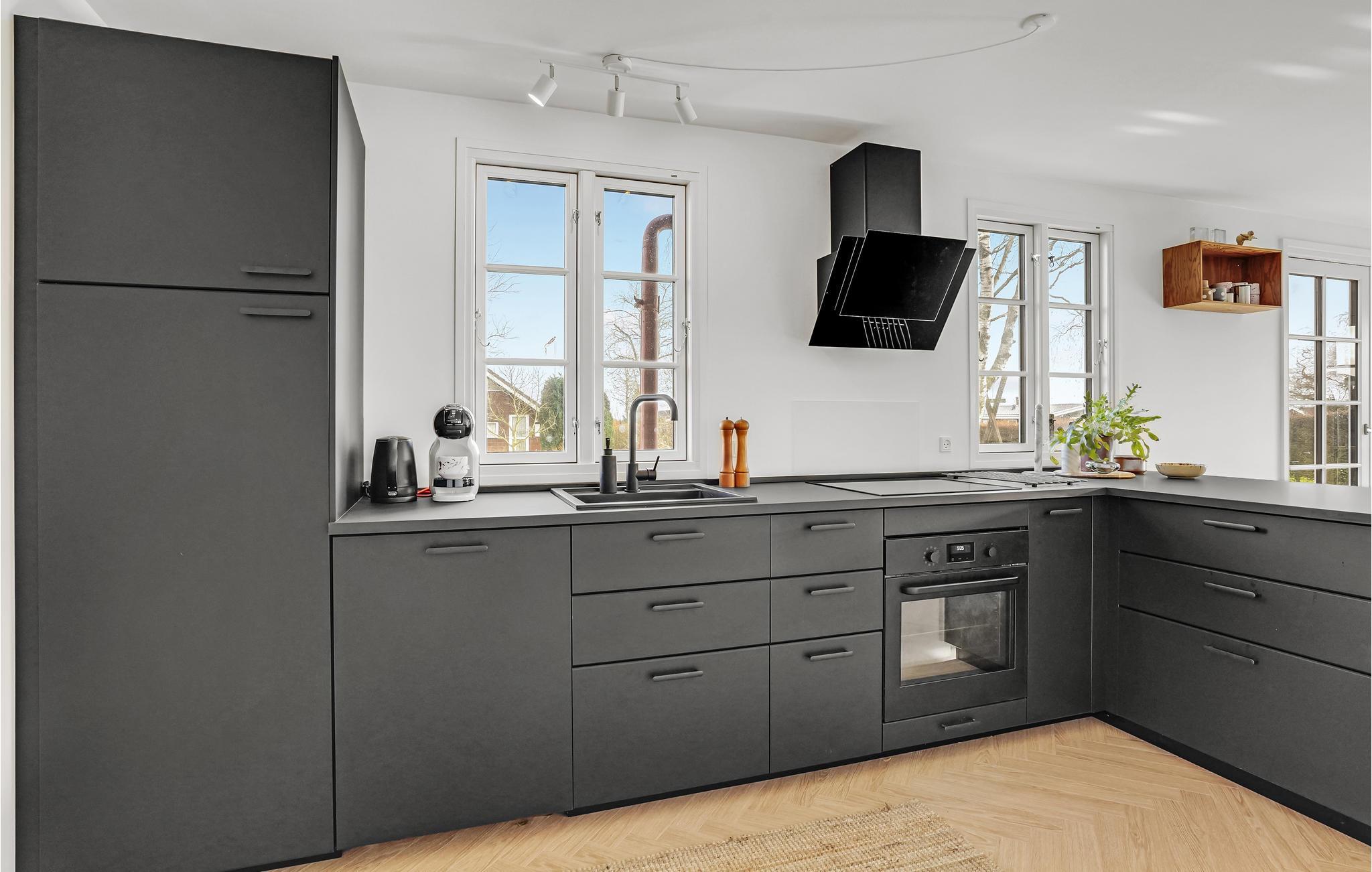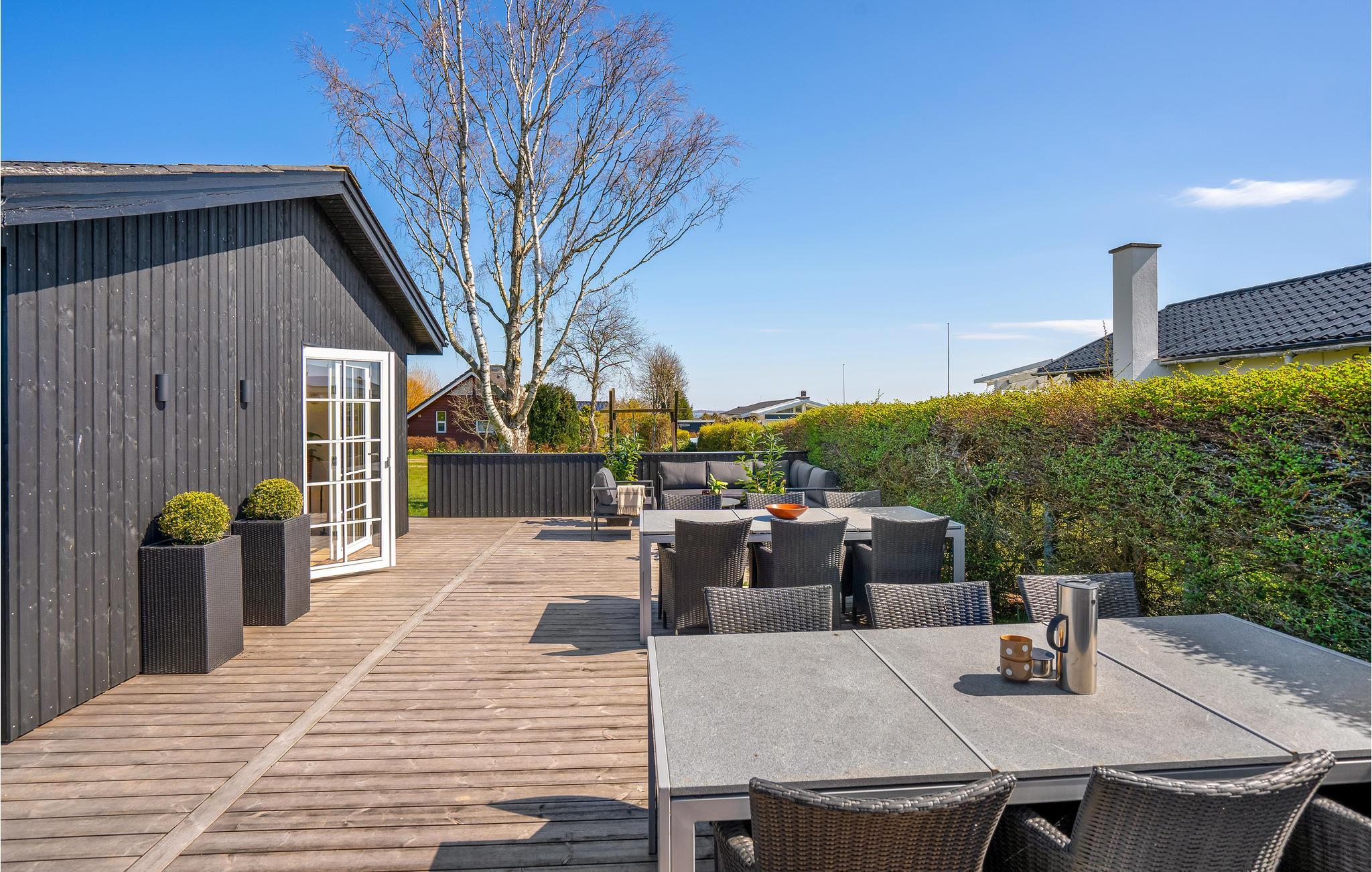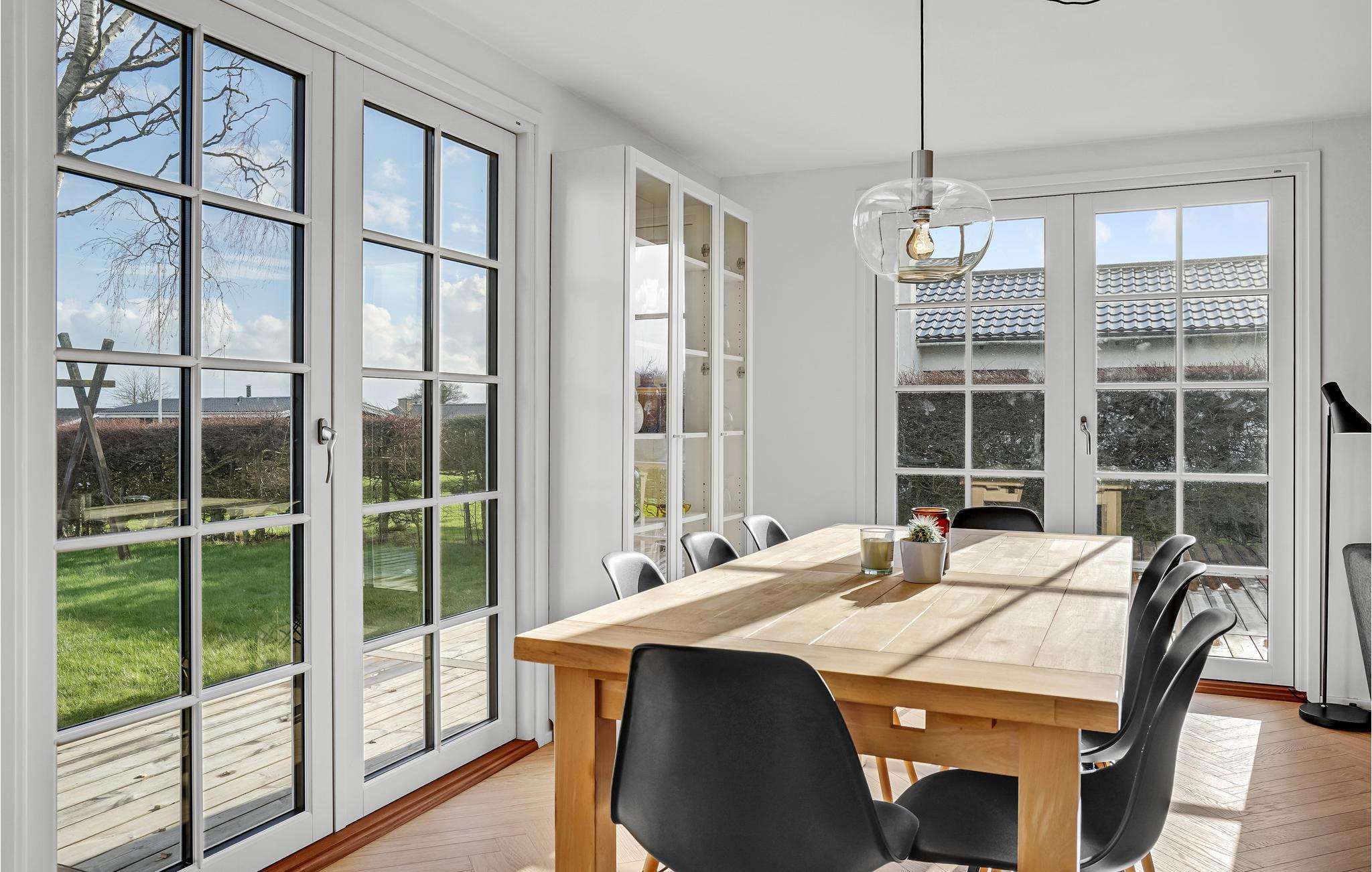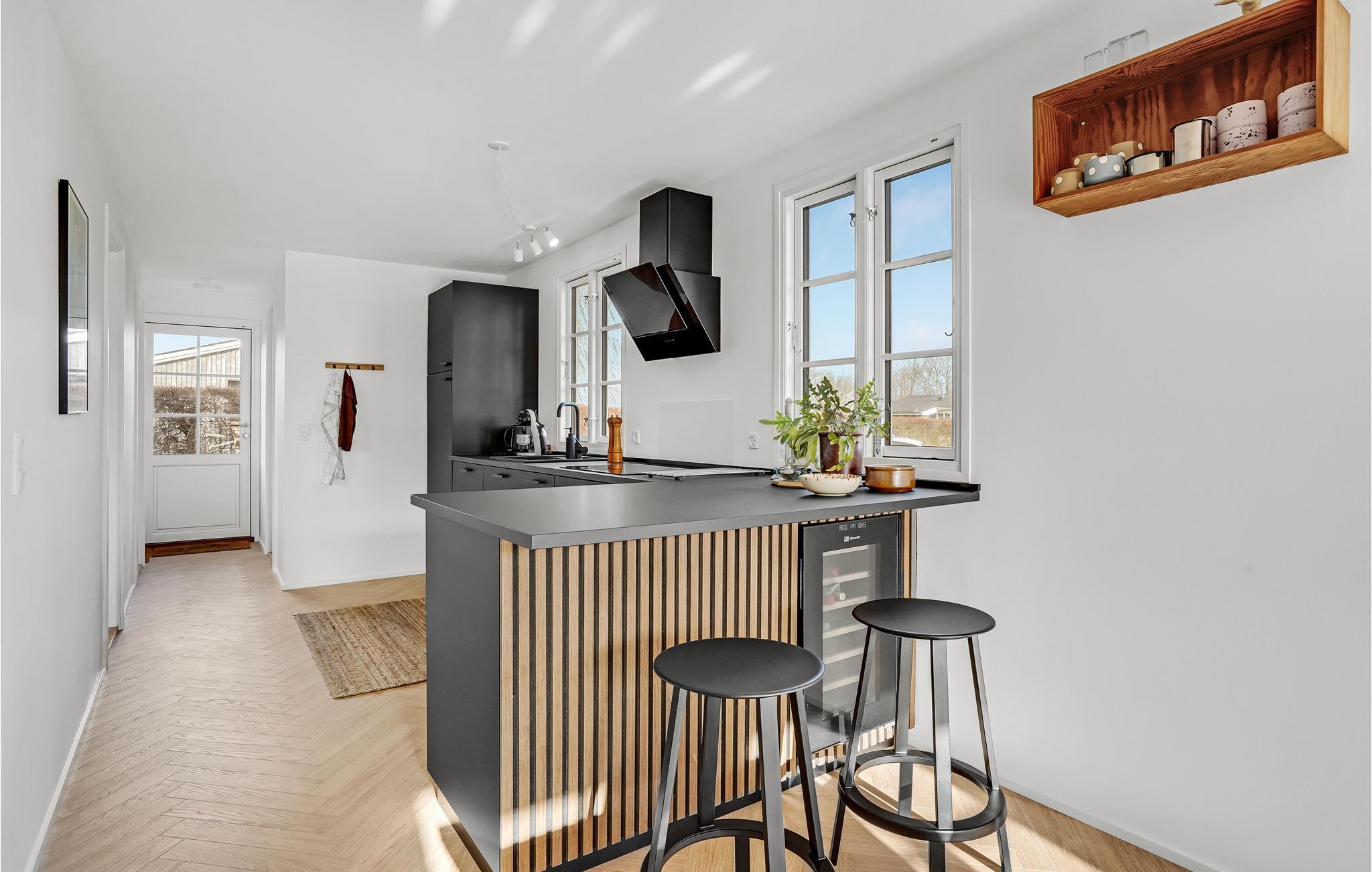 Nur 200 m vom Strand entfernt liegt dieses schöne Ferienhaus auf einem schönen ungestörten Gartengrundstück am Ende einer Sackgasse. Das Haus macht einen guten Eindruck und ist mit einem geräumigen Wohnzimmer ausgestattet. Dieses ist mit Kaminofen eingerichtet und mit der Küche verbunden, wo Sie auf dem Barhocker am Küchentisch sitzen und gesellige Stunden beim Kochen verbringen können.