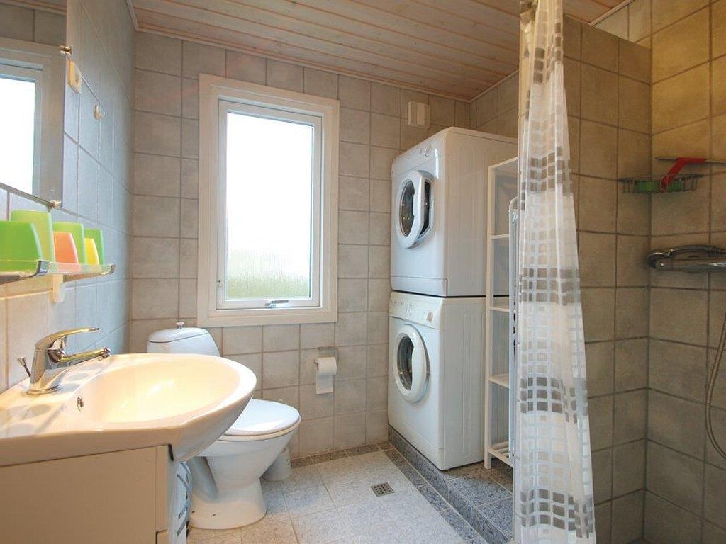Im Haus befinden sich 3 gute und ebenfalls hell gestaltete Schlafzimmer. In zweien steht jeweils ein Doppelbett und im dritten ein Etagenbett mit 2 Betten. Im Badezimmer gibt es eine Dusche und hier steht eine Waschmaschine und einen Wäschetrockner.