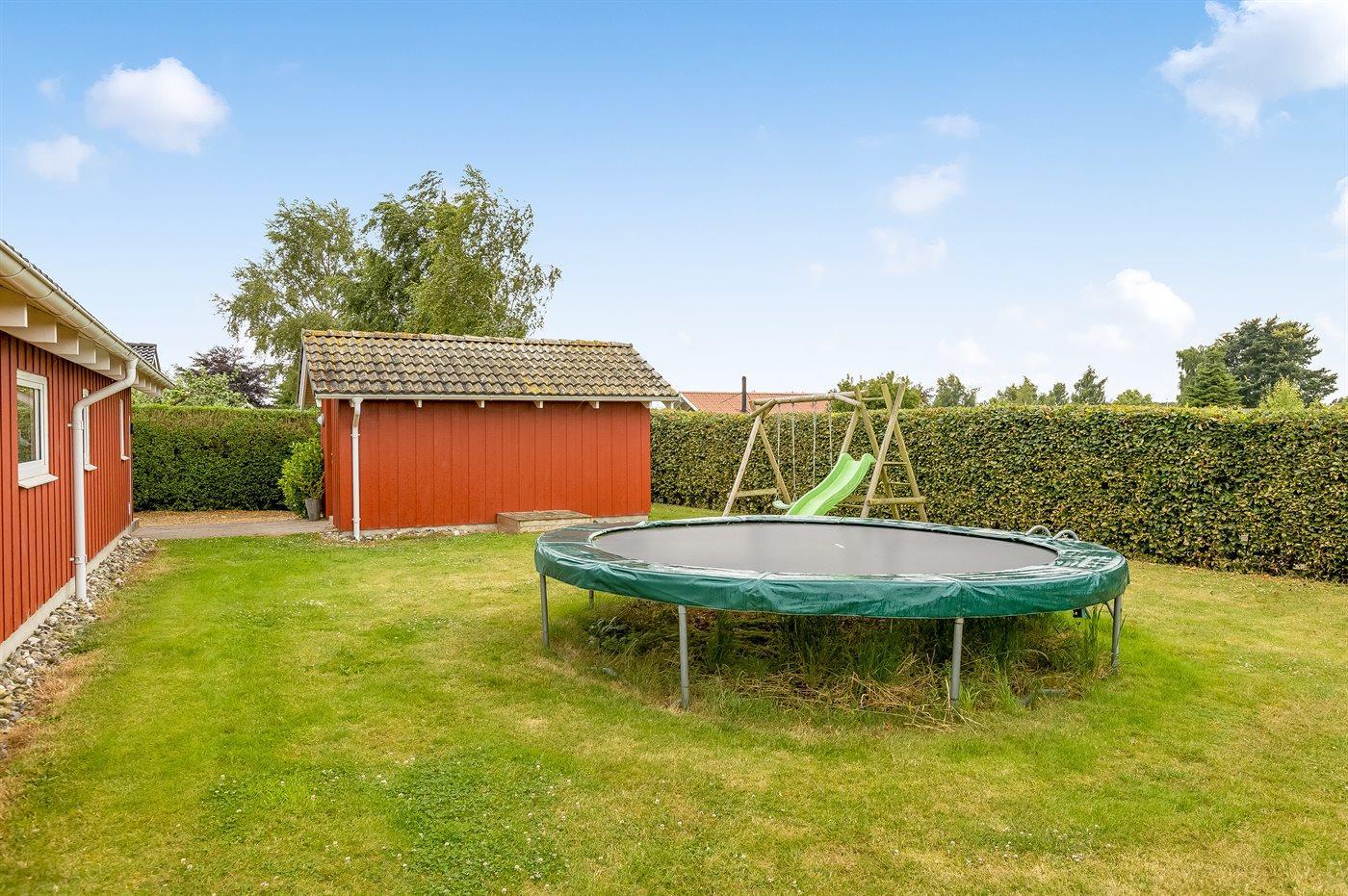 Draußen erwartet euch eine herrliche Terrasse, auf der ihr die Sonne genießen, grillen oder einfach den Klängen der Natur lauschen könnt. Tatsächlich habt ihr hier sogar eine komplett geschlossene und teilweise überdachte Terrasse. So wisst ihr genau, wo eure Kinder – und vielleicht auch euer Hund – sich sicher aufhalten können. Im Garten gibt es jede Menge Platz zum Spielen und Entspannen. Für die Kleinen stehen unter anderem ein Trampolin, ein Schaukelgestell und ein Sandkasten bereit. Außerdem hat der Hauseigentümer dafür gesorgt, dass ihr auch ein Dreirad, einen Bollerwagen und viele Outdoor-Spiele nutzen könnt. Die Umgebung rund um das Ferienhaus lädt zu schönen Spaziergängen, Fahrradtouren und Naturerlebnissen ein. Der nahegelegene Strand bietet die Möglichkeit für ein erfrischendes Bad oder einen wunderschönen Abendspaziergang am Wasser.