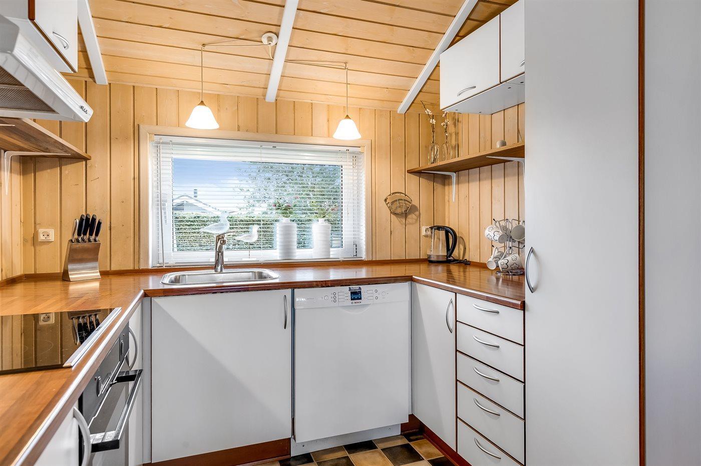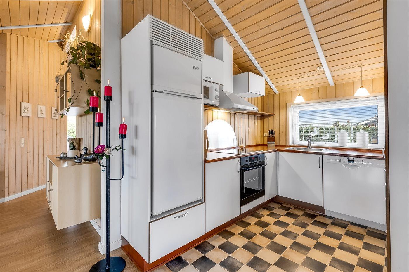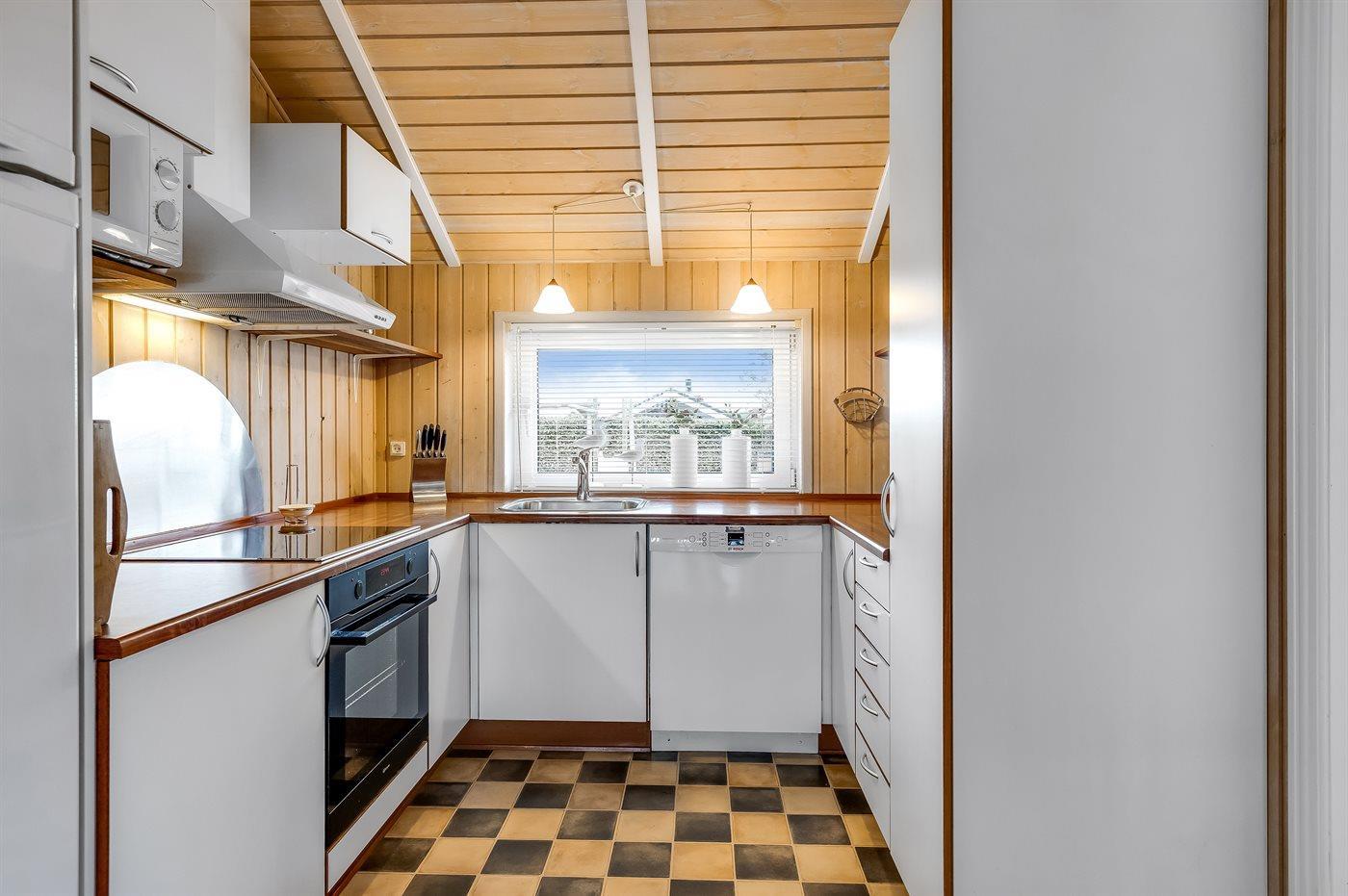 Die Küche ist mit Kühlschrank ausgestattet. Außerdem gibt es 4 Induktions-Kochzonen, Umluftofen, Mikrowelle sowie Geschirrspüler.