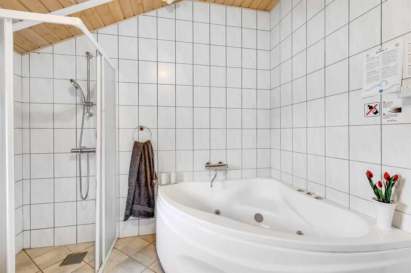 Es gibt 1 Badezimmer mit Duschnische und 1 Toilette.. Fußbodenheizung in 1 Badezimmer. Es steht eine Sauna zur Verfügung in der Sie sich so richtig entspannen können.