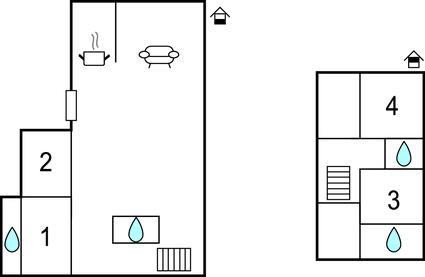 Badezimmer (nr. 1) - WC. Warmes und kaltes Wasser. Dusche