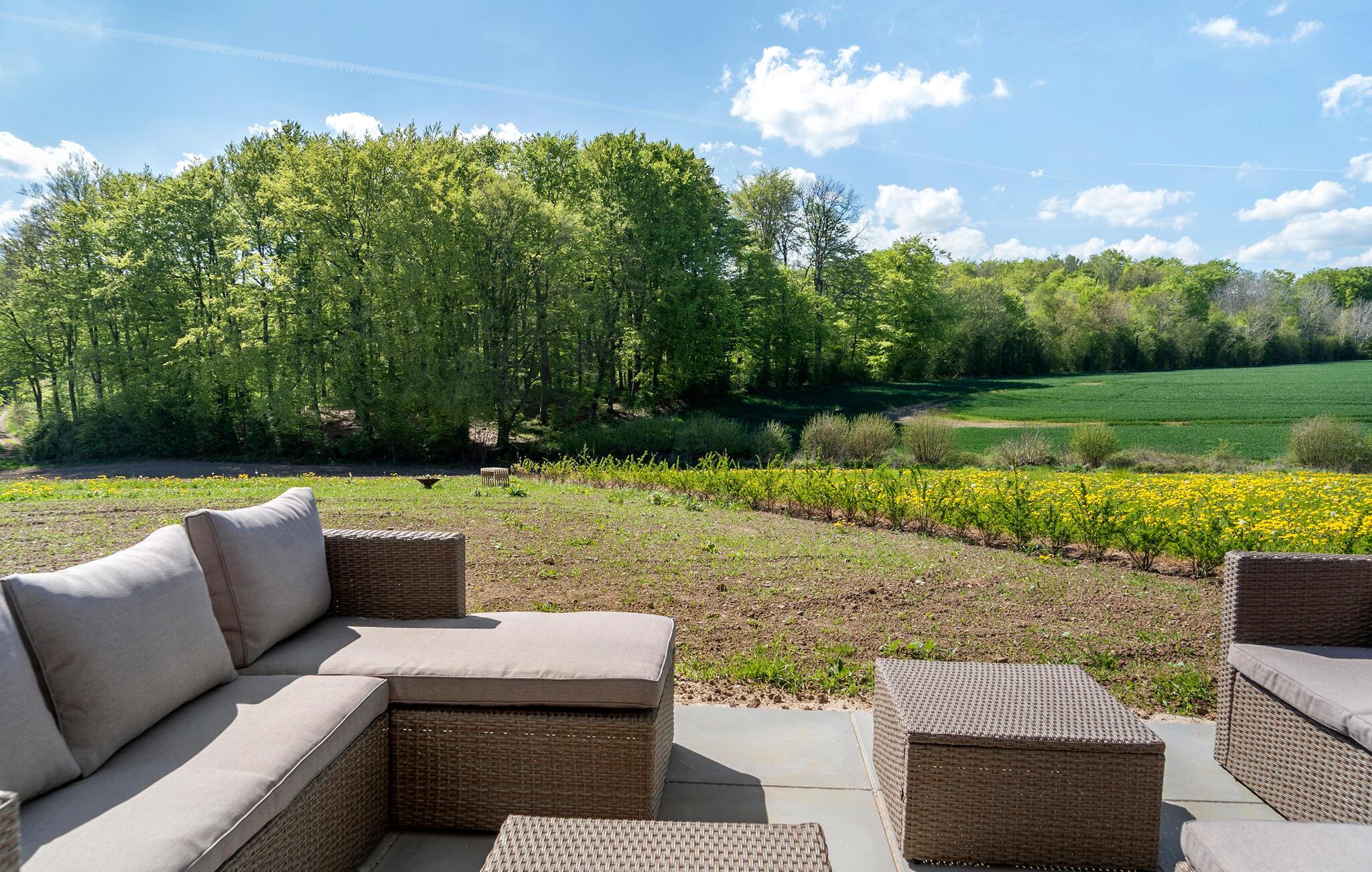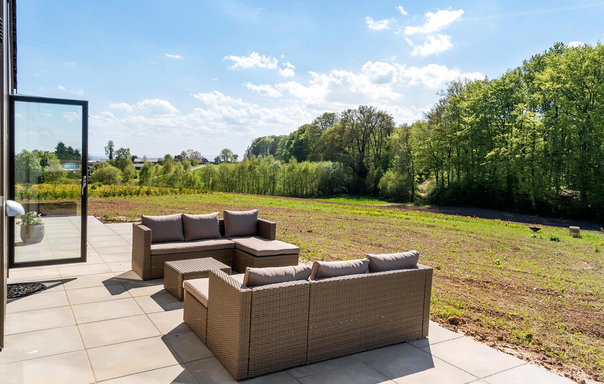 Verbringen Sie Zeit an der frischen Luft auf der möblierten Terrasse. Ob Frühstück in der Morgensonne, im Schatten unter dem Sonnenschirm am Nachmittag oder ein gemeinsames Abendessen vom Grill – hier findet jeder seinen Lieblingsplatz. Die Kinder können sich im Garten austoben oder den Sandkasten entdecken, während die Erwachsenen entspannt zur Ruhe kommen. Am Abend lädt die Feuerstelle zu gemütlichen Stunden unter freiem Himmel ein.