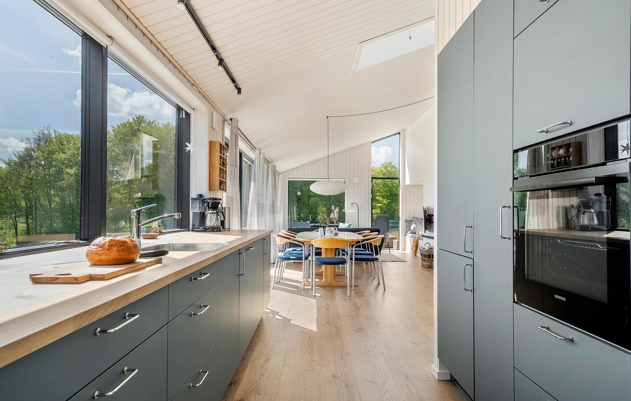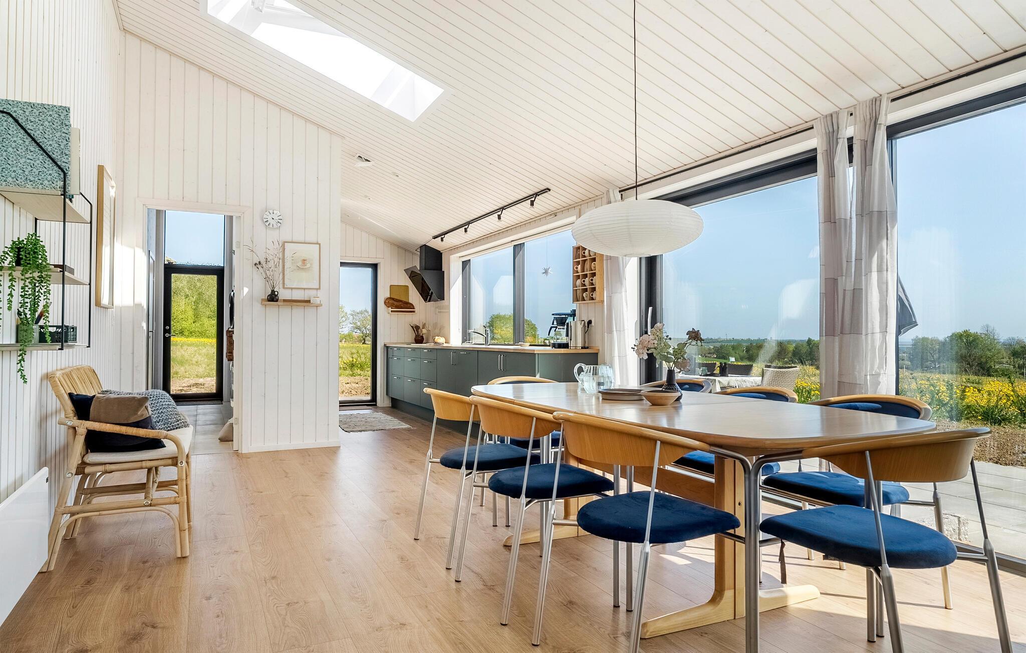 Ihr charmantes Ferienhaus bietet die ideale Kulisse für unbeschwerte Urlaubstage mit der Familie. Die offene Raumgestaltung mit großen Fenstern schafft eine helle und einladende Atmosphäre. Der Wohnbereich verbindet Küche, Esstisch und Sofaecke auf harmonische Weise, ideal, um gemeinsam zu kochen, zu essen oder bei einem guten Film und lustigen Spielen den Tag ausklingen zu lassen.