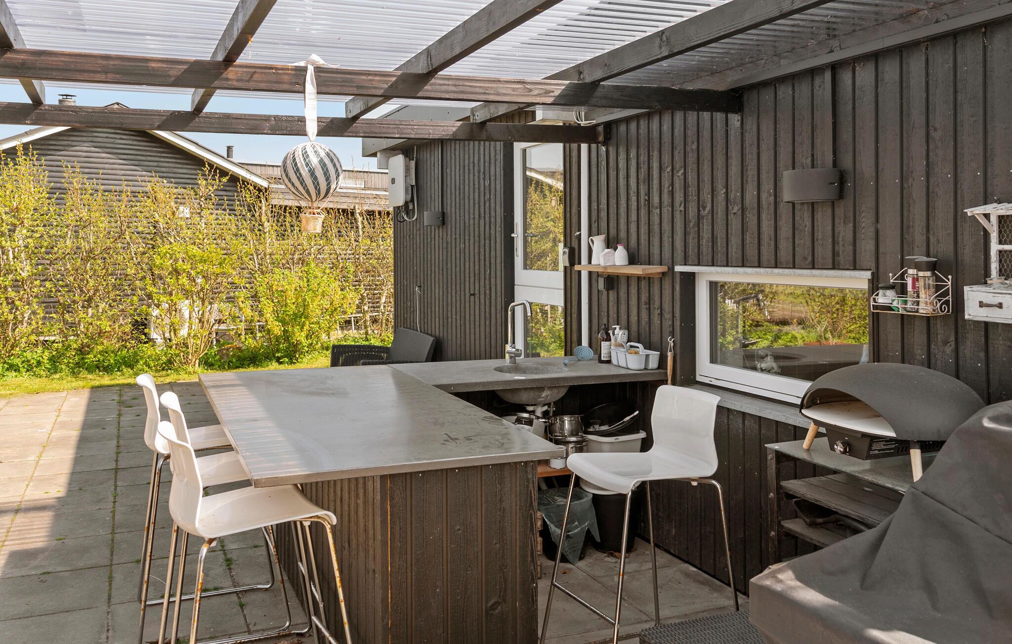 Nutzen Sie die verschiedenen Terrassenbereiche für ruhige Stunden im Freien. Machen Sie es sich auf den Sonnenliegen bequem oder genießen Sie einen geselligen Grillabend an der überdachten Outdoor-Küche. Ob Frühstück im Freien oder ein gutes Buch in der Lounge-Ecke, hier findet jeder seinen Lieblingsplatz. Dabei sorgt auch der Meerblick für entspannte Urlaubsmomente.