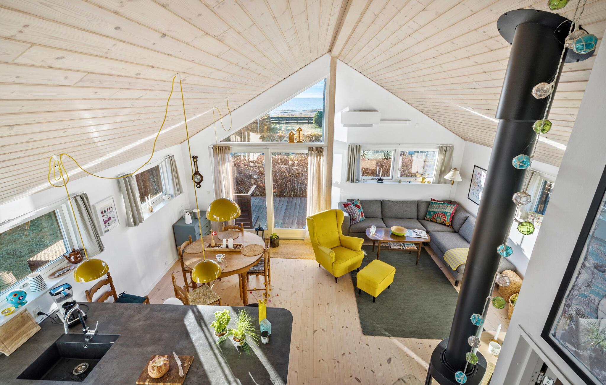 Gemütliches Ferienhaus mit Meerblick, Holzofen und Garten nahe Hejsager Strand für entspannte Familienurlaube.