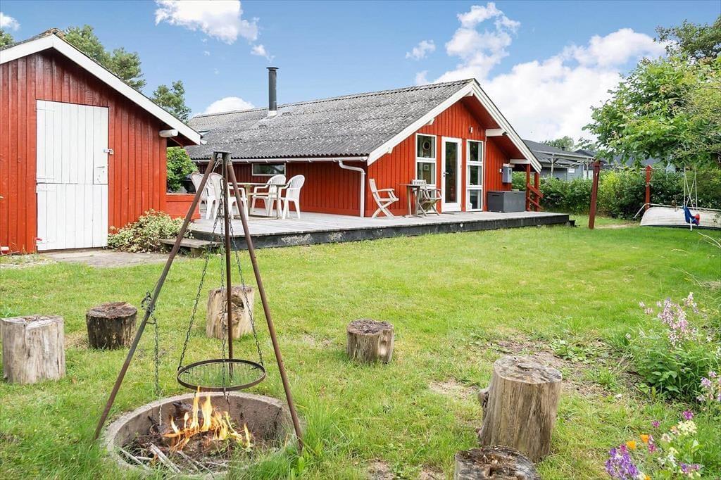 Authentisches, familienfreundliches Ferienhaus mit Meerblick auf einem schönen Naturgrundstück neben einer Grünfläche. Das Haus beinhaltet einen offen mit der Küche verbundenen Wohn- und Essbereich, von dem Sie hinaus auf die überdachte Terrasse treten können. Auch das Badezimmer mit einer Duschnische, die beiden Schlafräume mit Doppelbetten und das Schlafzimmer mit einem doppelten Schlafsofa sind von diesem Raum aus zugänglich. Rund um das Urlaubsdomizil erstreckt sich eine schöne Terrasse mit zahlreichen gemütlichen Plätzchen und einer fantastischen Aussicht über die Umgebung und nicht zuletzt über den nahe gelegenen Sandstrand und den Kleinen Belt.