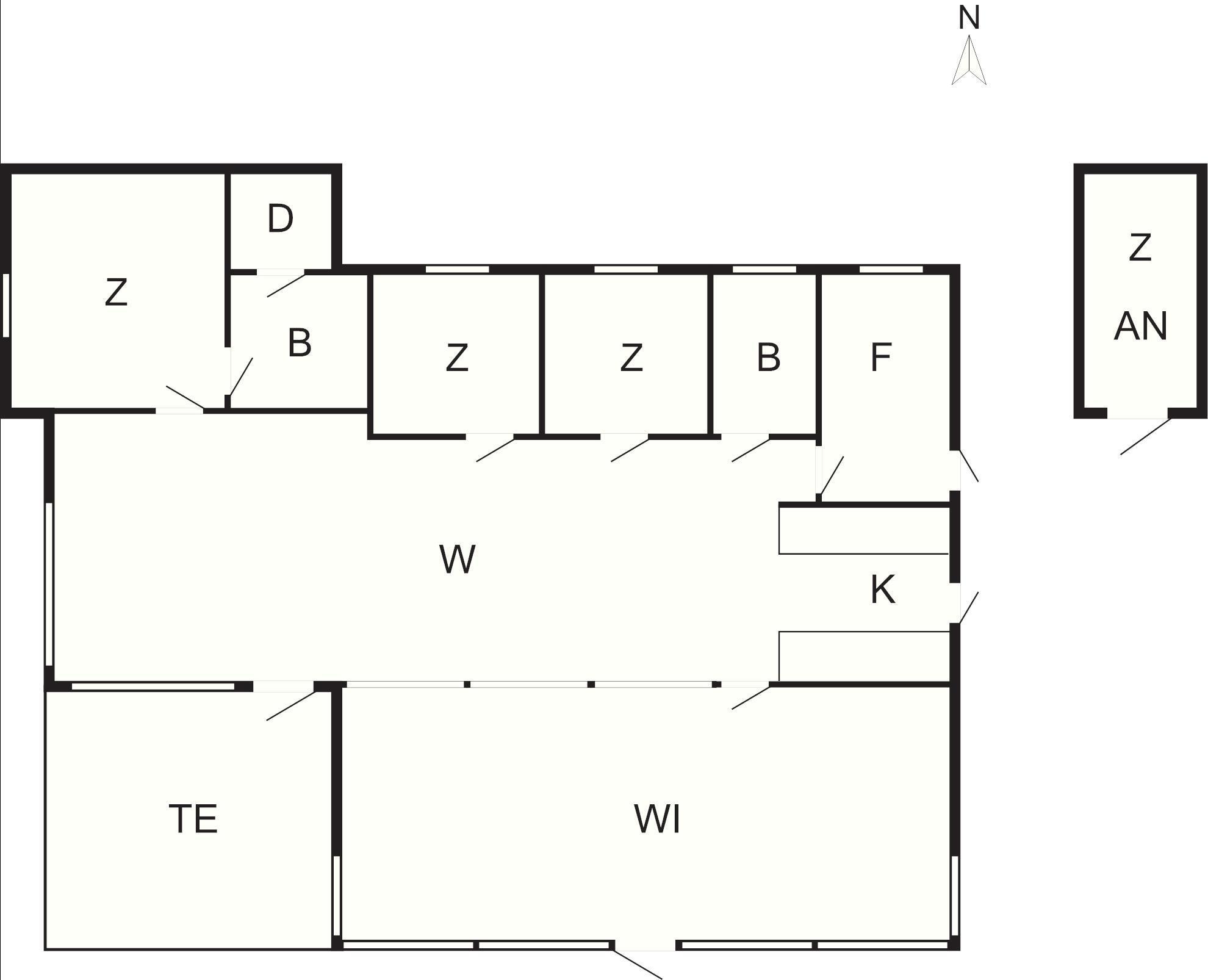 Ferienhaus nur wenige Gehminuten vom Meer entfernt, in einem ruhigen Ferienhausgebiet bei Helberskov gelegen. Das Haus bietet Platz für 11 Personen, davon vier im Anbau – ideal für eine große Familie.