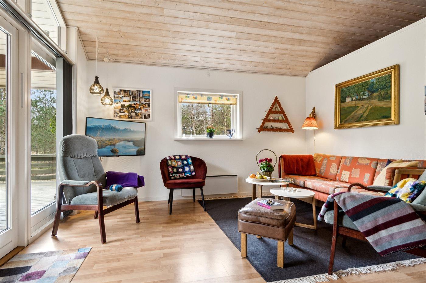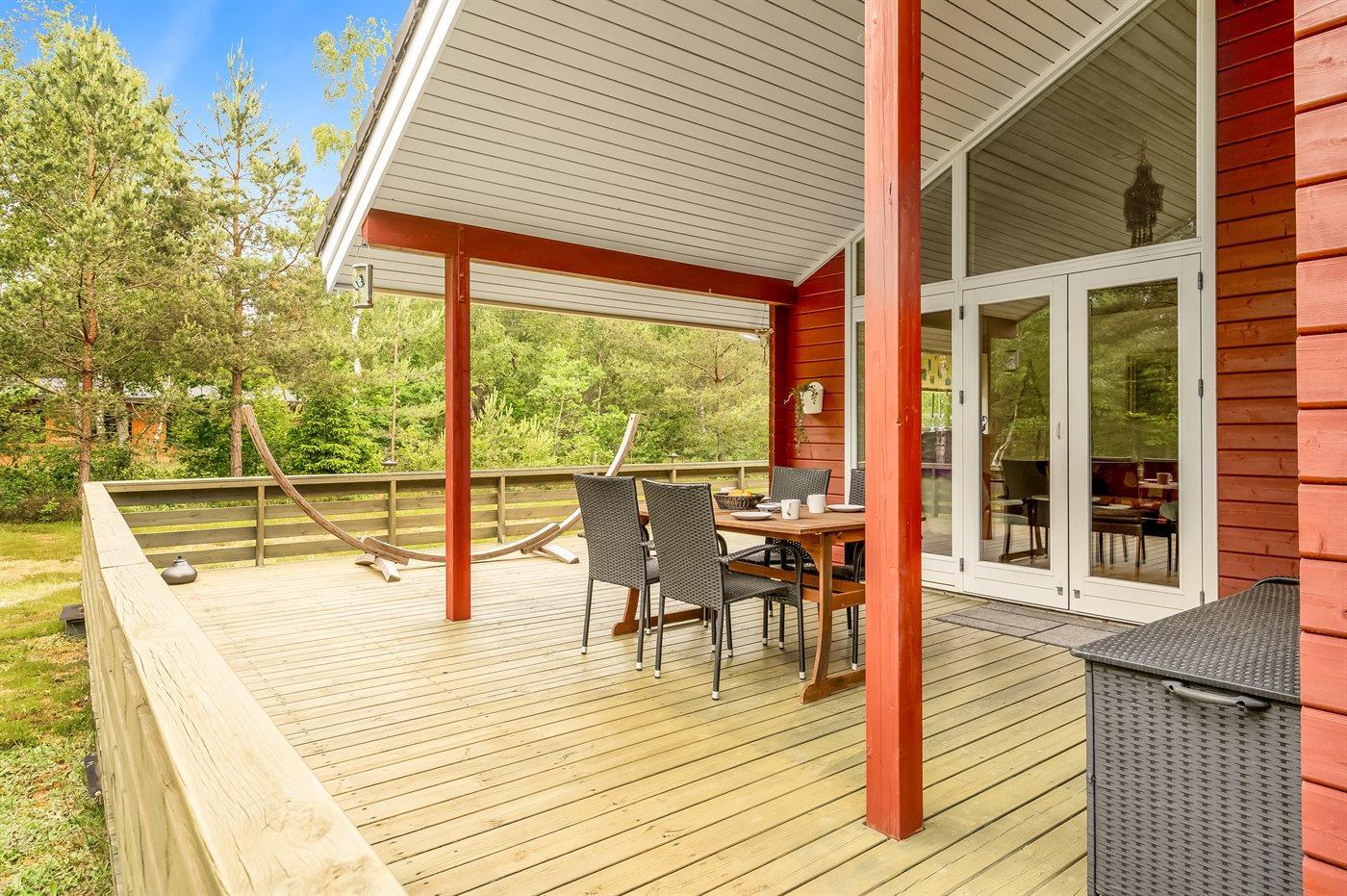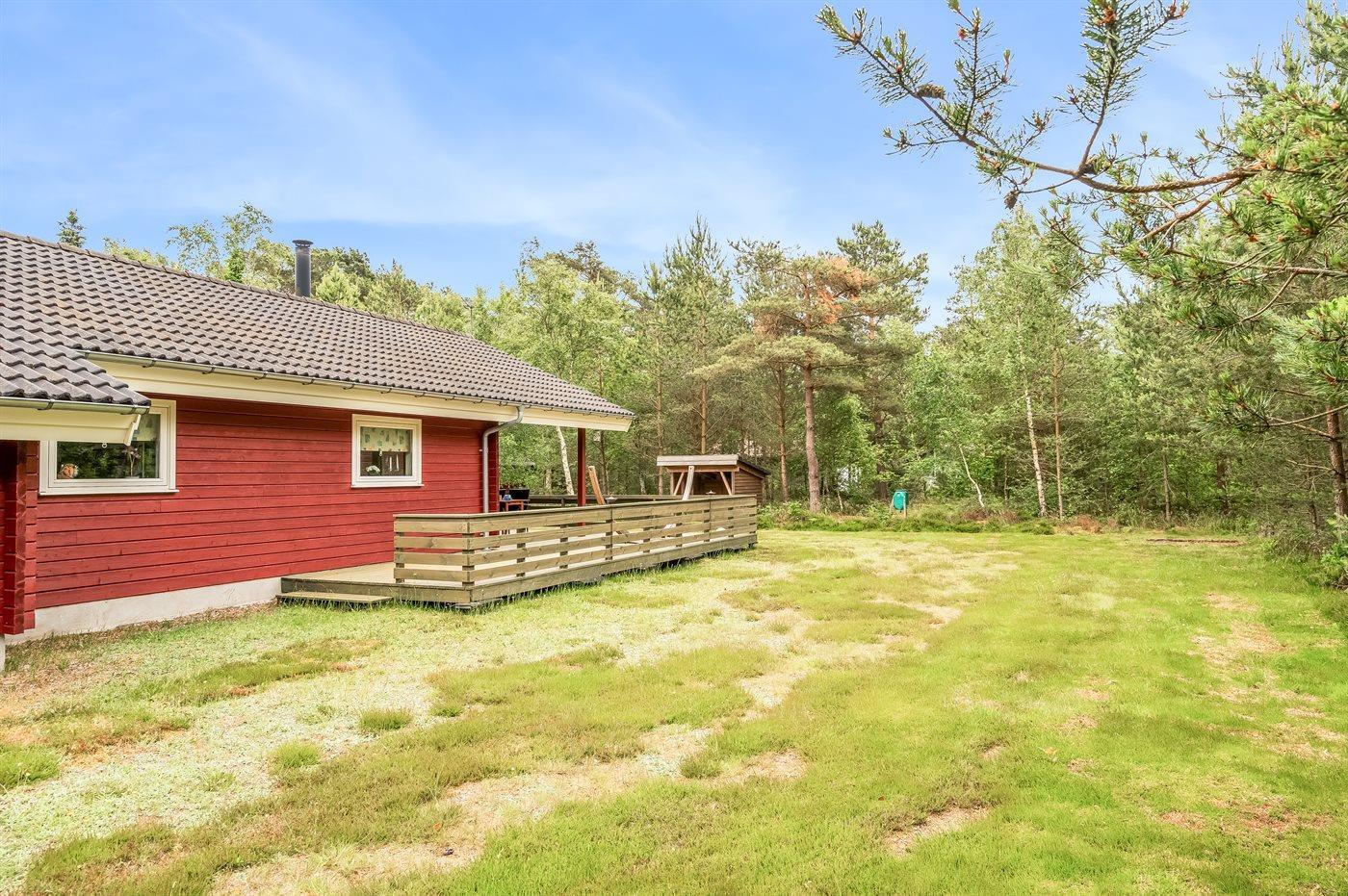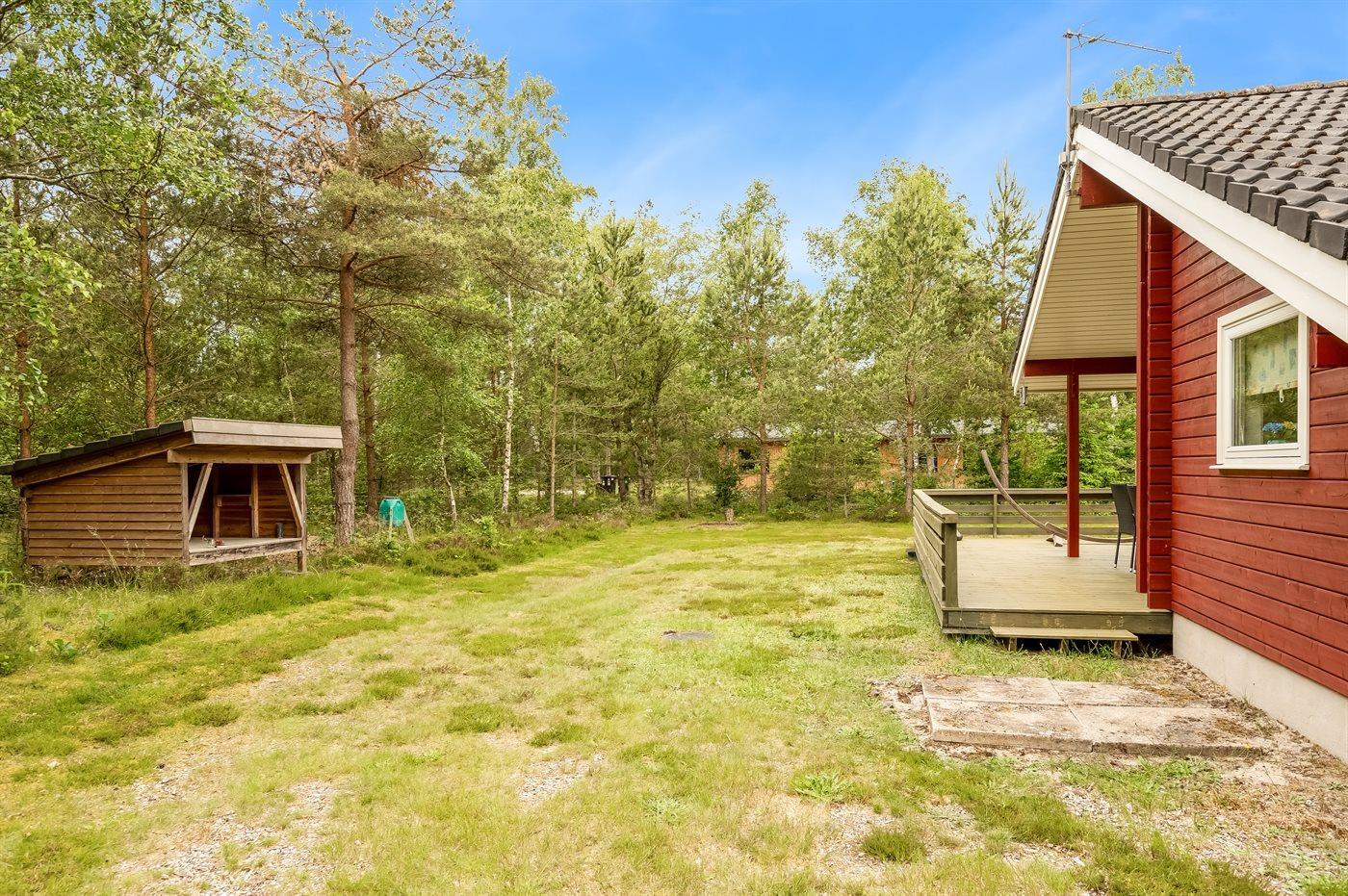 Ein schönes Ferienhaus auf einem herrlichen Naturgrundstück - von Büschen und Bäumen umgeben. Das Ferienhaus liegt in kurzer Laufweite zur Ostsee. Wenn du Lust hast, im Freien zu übernachten, gibt es eine Windschutzhütte im Garten - ganz in der Nähe des Hauses.