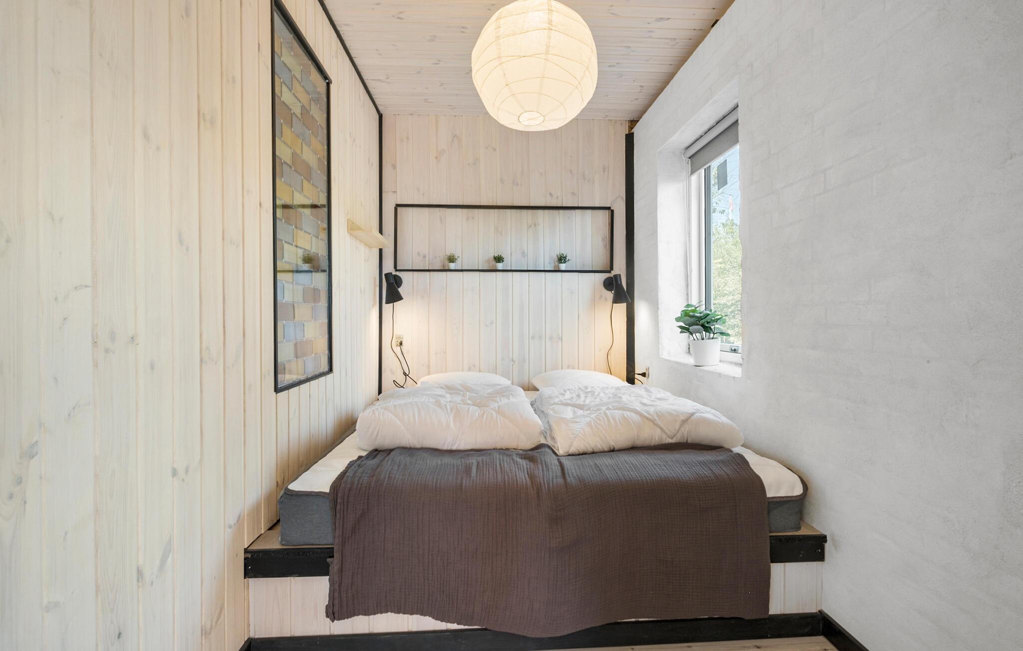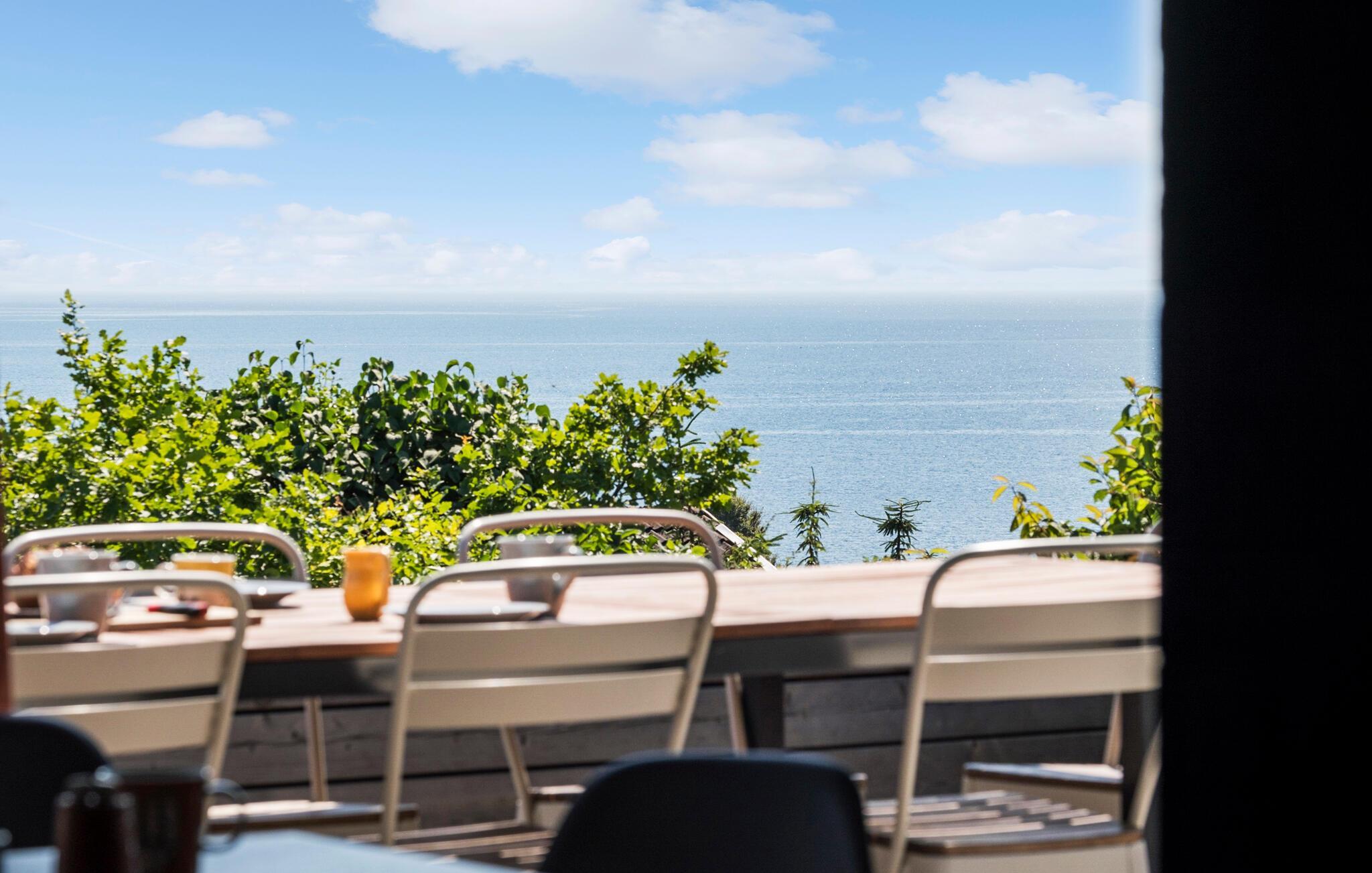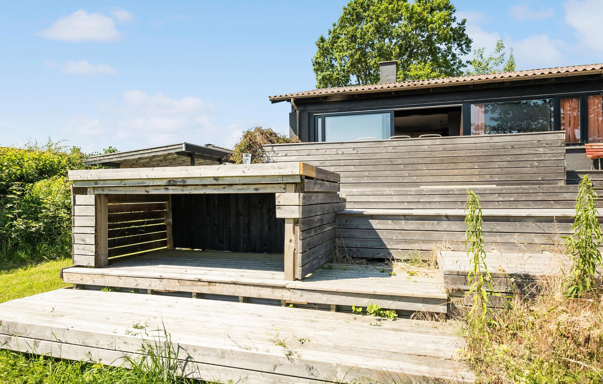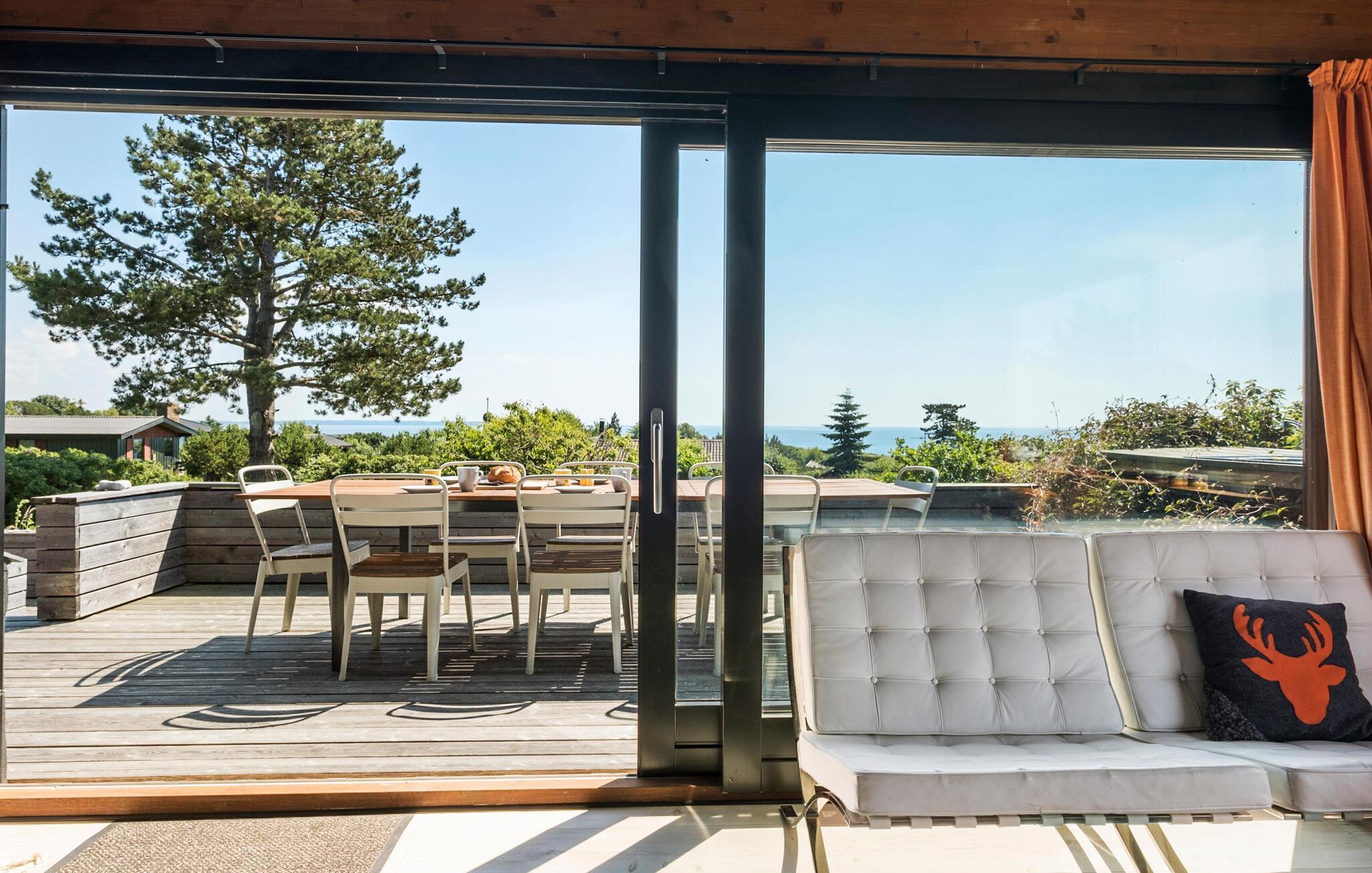 Modern eingerichtetes Ferienhaus mit Meerblick, großer Terrasse und stilvollem Design in Hellesklint, Dänemark.