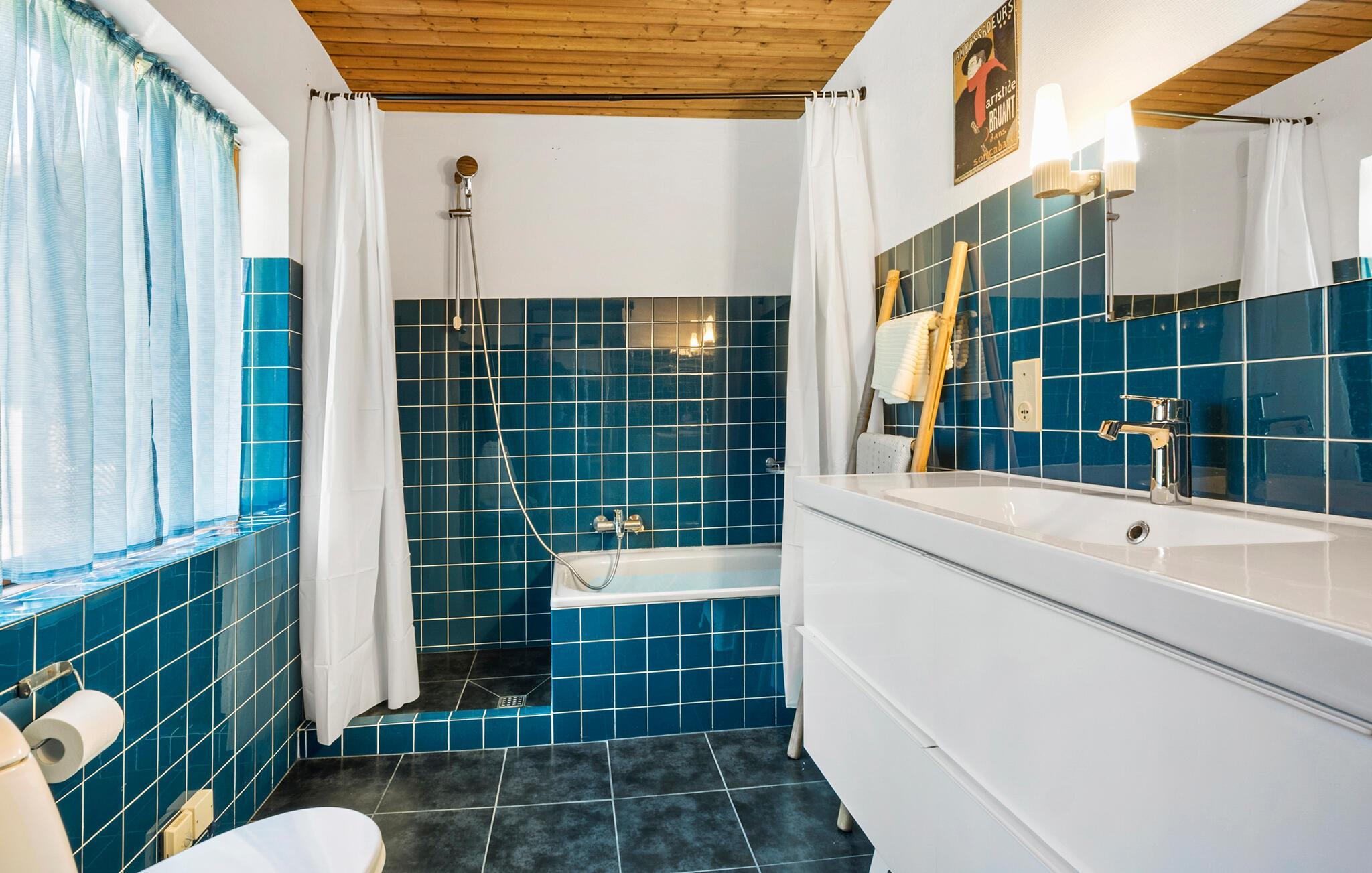 Badezimmer (nr. 1) - WC. Warmes und kaltes Wasser. Dusche und Badewanne