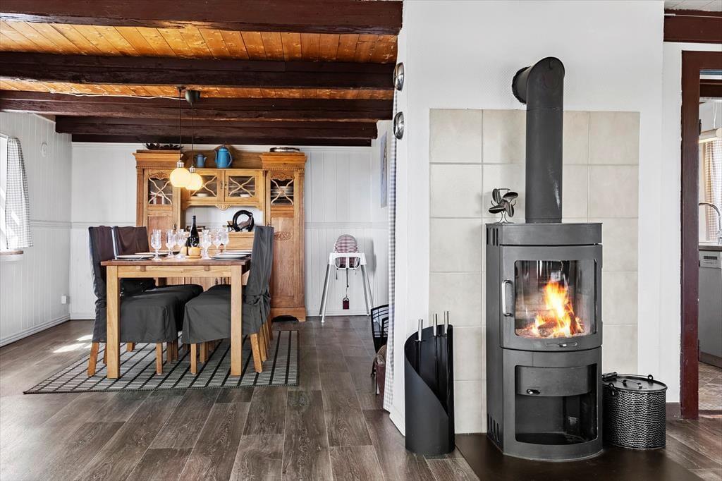 An der Südseite des Hauses befindet sich eine schöne Holzterrasse, auf der ein Grill und Gartenmöbel zu gemütlichen Stunden und geselligen Runden unter dem hohen nordischen Himmel einladen. Es ist einfach herrlich, hier draußen zu sitzen, die Sonne zu genießen und dem lieblichen Gezwitscher der Vögel zuzuhören. Das Grundstück bietet mit 1.500 m² unglaublich viel Platz zum Umhertollen und für Ballspiele auf der Grasfläche. Gute Parkmöglichkeiten finden Sie auf dem Schotterareal. Das Haus verfügt auch über einen mobilen Hundezaun der 50 m. lang und 1,12 m. hoch ist.
