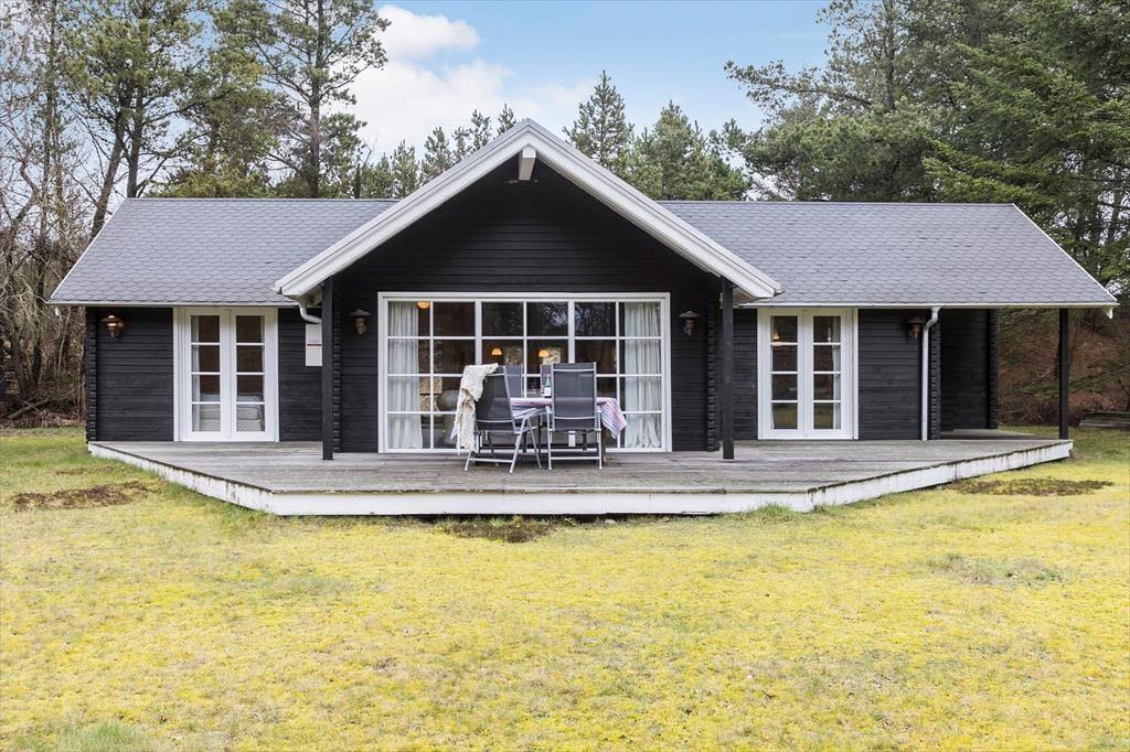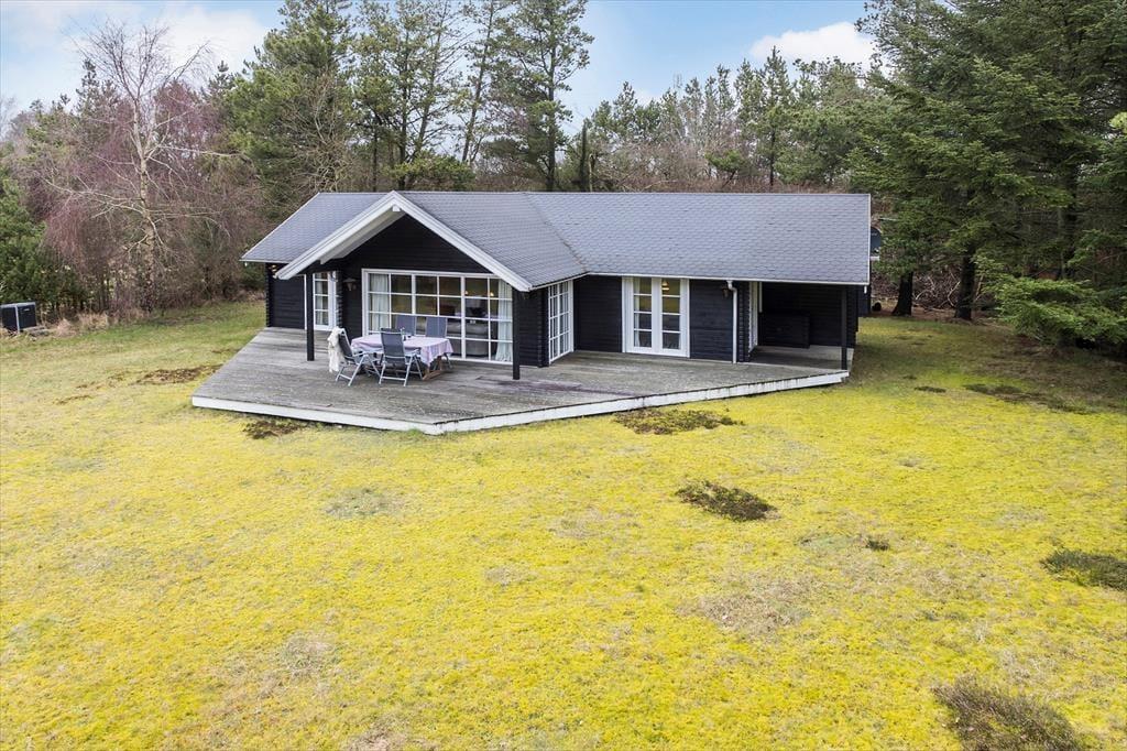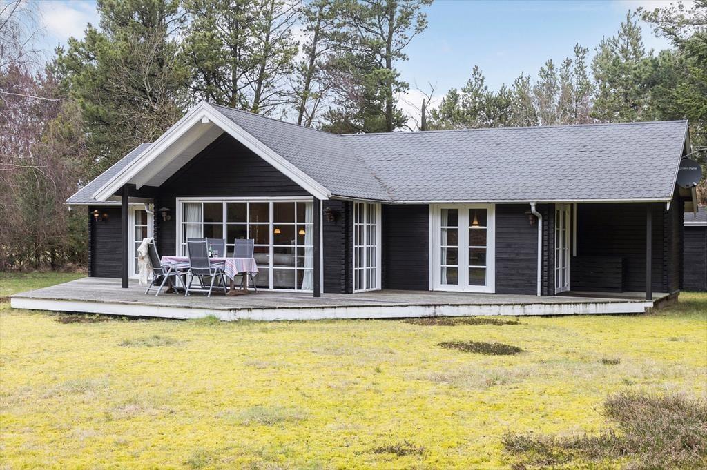 Draußen kannst du den schönen Terrassenbereich genießen, wo du dich in der Sonne entspannen oder im Schatten unter dem Sonnenschirm ein ruhiges Plätzchen finden kannst. Die große Terrasse ist sowohl zum Entspannen als auch zum gemeinsamen Essen mit Familie und Freunden perfekt, während der Grill einen wunderbaren Duft in die Luft verbreitet. Das Gebiet rund um das Ferienhaus bietet viele Möglichkeiten, die Natur zu genießen, und der große Rasen lädt zu Spiel und Aktivitäten im Freien ein. Egal, ob du dich in einem Liegestuhl entspannen oder ein aktives Spiel spielen möchtest, es gibt viel Platz, um sich an der frischen Luft auszutoben.