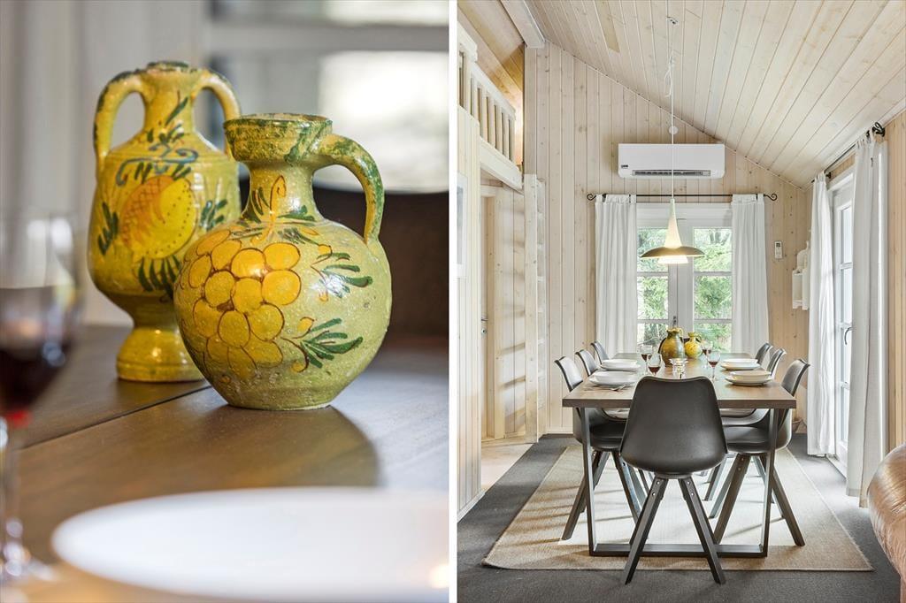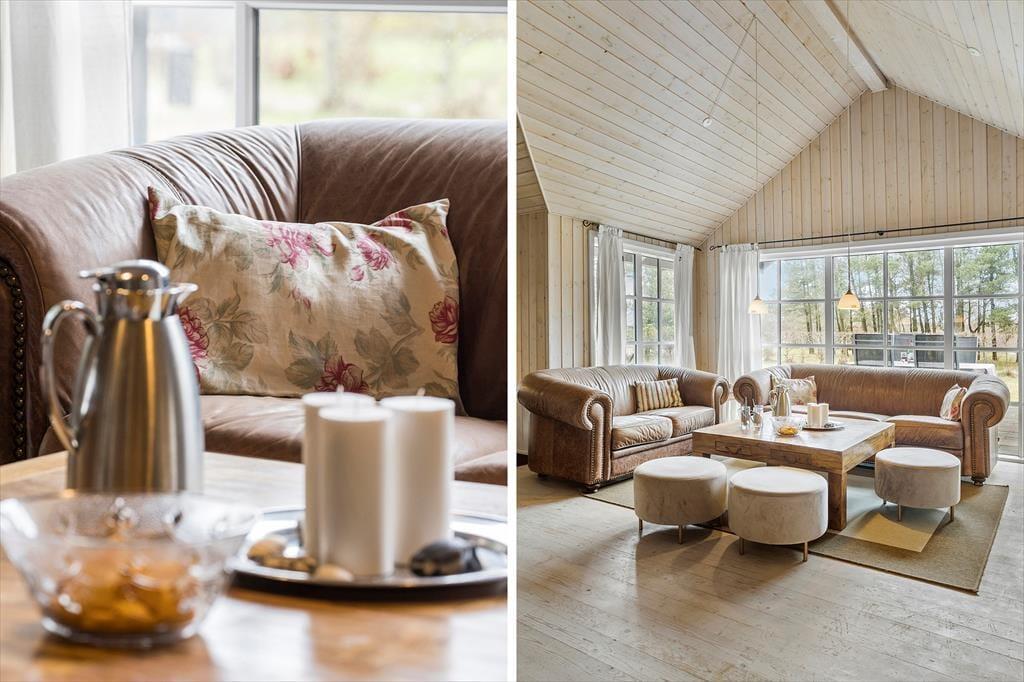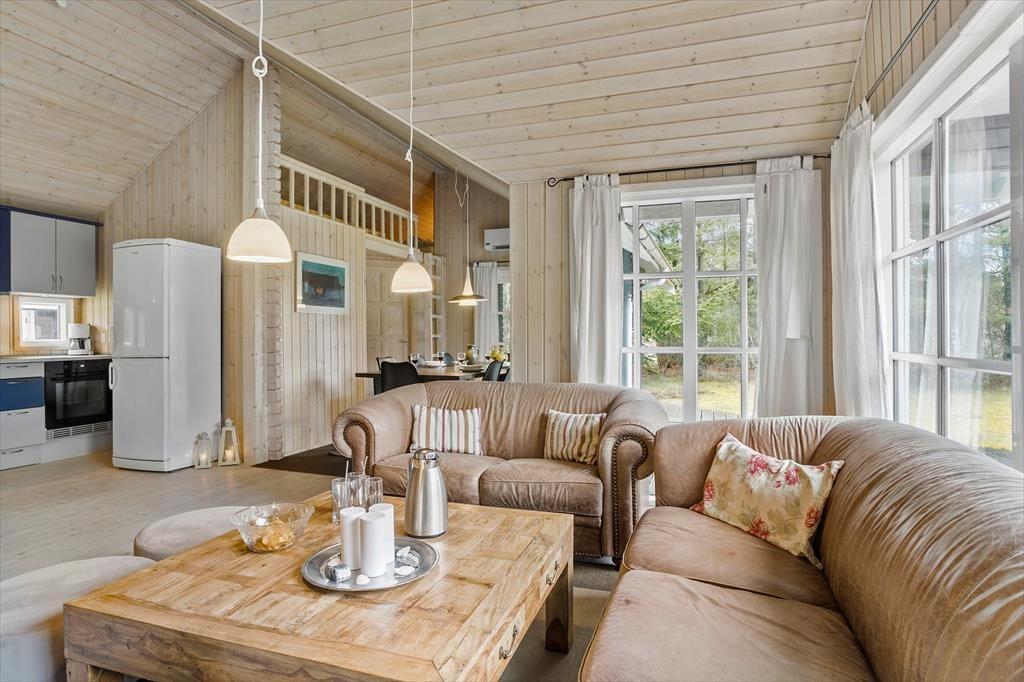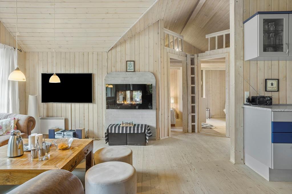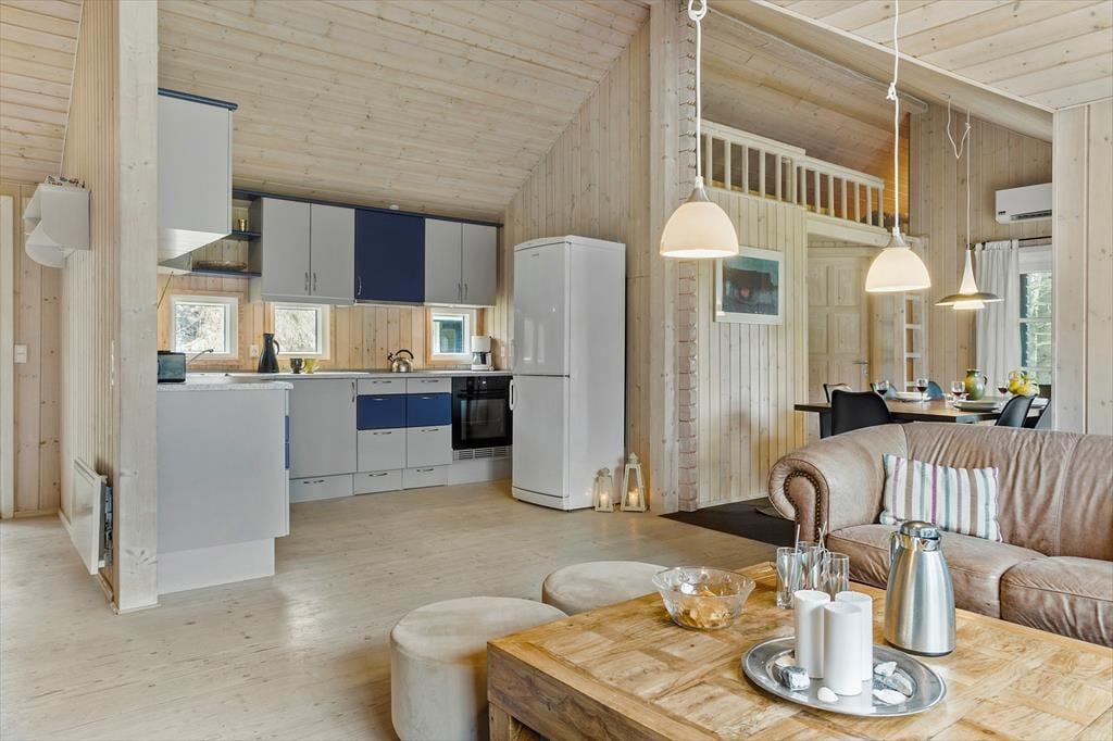 Drinnen wirst du von einer hellen und einladenden Atmosphäre empfangen, in der helle Farben und modernes Design eine gemütliche Stimmung erzeugen. Die offene Verbindung zwischen Wohnzimmer und Küche ermöglicht es, Zeit mit der Familie zu verbringen, egal ob beim Kochen, Entspannen auf dem Sofa oder bei einer guten Lektüre. Das Ferienhaus verfügt über komfortable Schlafzimmer, die für eine gute Nachtruhe nach einem Tag voller Outdoor-Abenteuer sorgen. Der schöne Bioethanol Kaminofen ist perfekt, um an kühleren Abenden etwas Wärme und Gemütlichkeit zu verbreiten, und die großen Fenster bieten einen fantastischen Lichteinfall und einen schönen Blick auf die umliegende Natur.