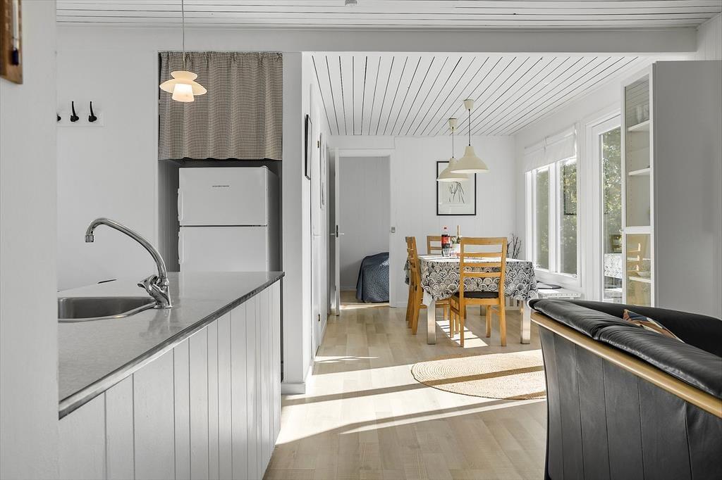 Dein Ferienhaus überzeugt mit seiner idyllischen Lage auf Draget. Die Umgebung verwöhnt mit viel Ruhe und lädt zu Aktivitäten in der Natur ein. Ganz gleich, ob du dir ein frisches Bad gönnen, eine Kajaktour unternehmen oder einfach nur die Aussicht genießen möchtest – es ist einfach wunderschön, nur wenige Gehminuten vom Limfjord entfernt zu wohnen. Du spürst förmlich, wie der Stress des schnelllebigen Alltags von deinen Schultern abfällt und Platz für Ruhe und Entspannung macht. Helligsø Drag ist ein idealer Ausgangspunkt für Ausflüge und Erkundungstouren in ganz Sydthy. Deiner Familie möchten wir einen Ausflug in den alten Fischerort Agger an der Nordsee, in das Kurbad in Hurup und zum Doverodde Købmandsgård, der malerisch am Nees Sund liegt, ans Herz legen.