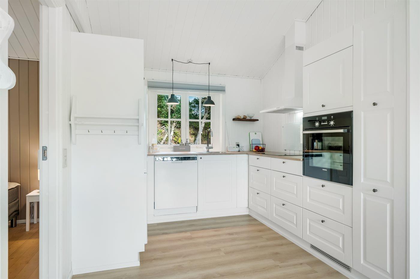 Auf Draget findest du dieses neu renovierte Ferienhaus mit Platz für 5 Gäste – mitten im Wald und nur wenige Meter vom Fjord entfernt.