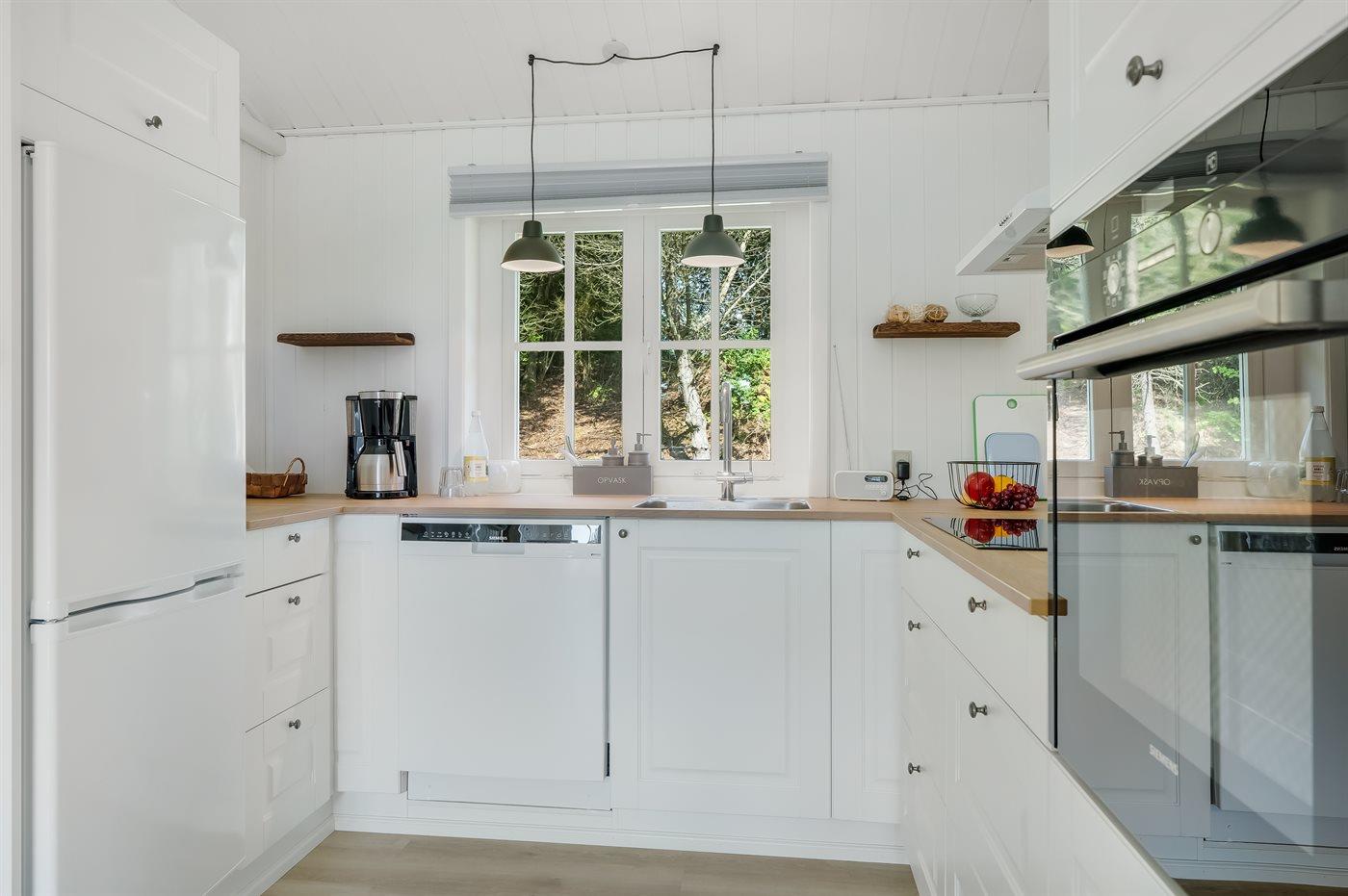 Die Küche ist mit Kühlschrank ausgestattet. Außerdem gibt es 4 Induktions-Kochzonen, Umluftofen, Mikrowelle sowie Geschirrspüler.