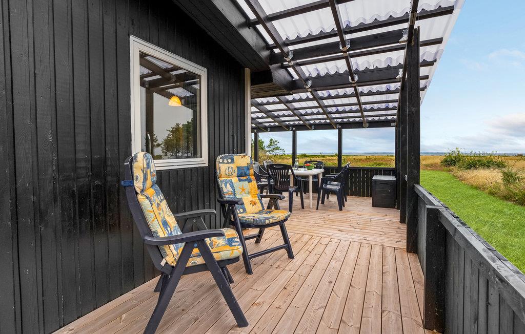 Dieses Ferienhaus bietet eine ungewöhnlich gute Lage, uneingeschränkt zum Wasser hin offen. Von hier aus haben Sie eine schöne Aussicht über das Wasser und können dem Verlauf der Sonne über dem Meer von früh bis spät folgen. Das Haus ist mit einer offenen Küche mit Essbereich eingerichtet, und in der Zwischenetage ist eine Galerie, die sicherlich die Kleinsten ansprechen wird, die sich dort oben Seemannsgarn erzählen können, ohne von den Erwachsenen gestört zu werden. Die Terrasse ist teilweise überdacht und lädt zu langen Stunden mit Aussicht über die grüne Umgebung und dem Meer ein.