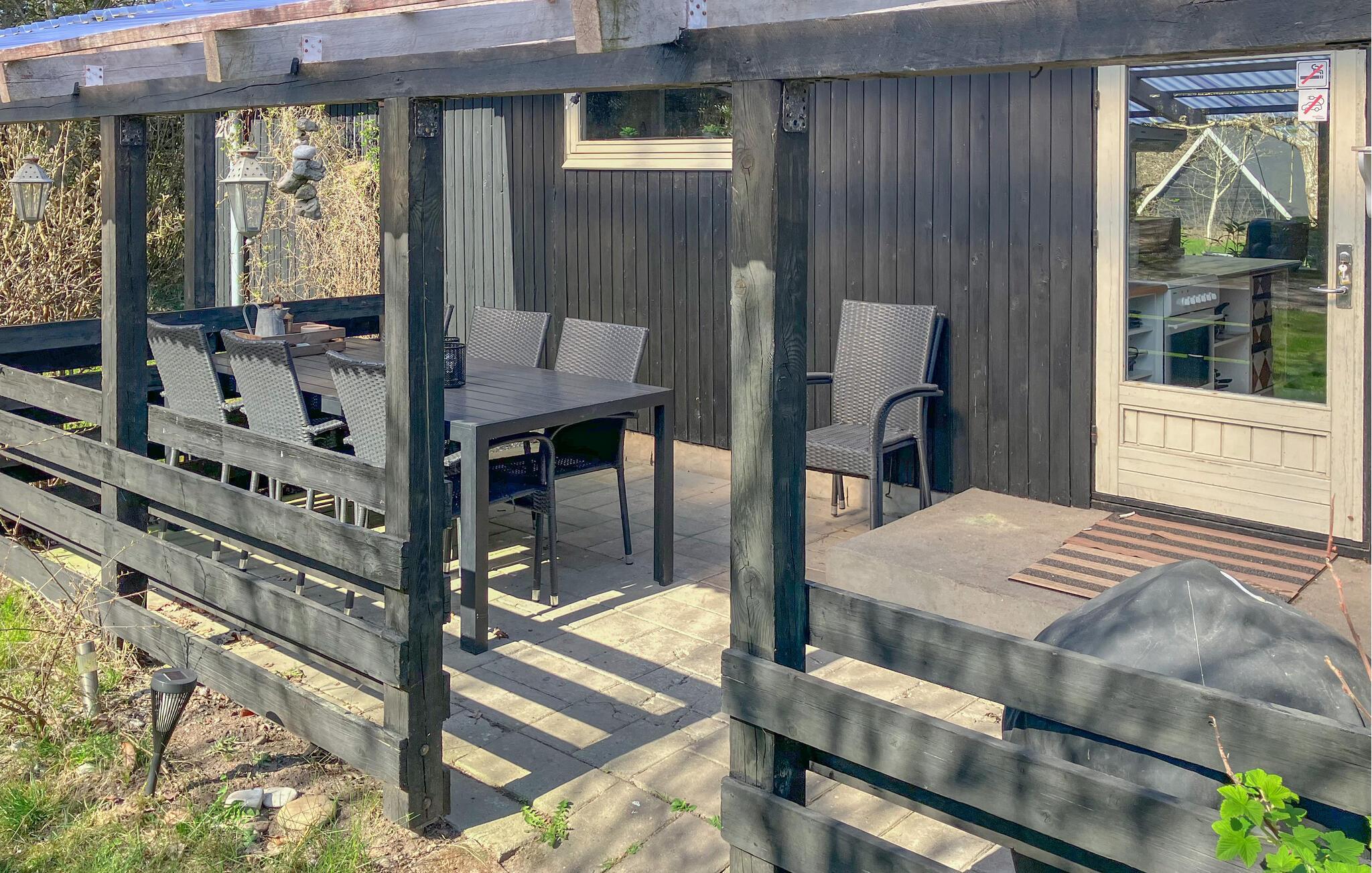 Die überdachte Terrasse schafft ideale Voraussetzungen für entspannte Stunden im Freien. Genießen Sie Ihre freie Urlaubszeit bei einem gemeinsamen Essen und genießen Sie die Ruhe. Lassen Sie Ihre Kinder nach Herzenslust auf dem Trampolin hüpfen, während Sie in der Hängematte die Seele baumeln lassen. Abends kommt die ganze Familie an der urigen Feuerstelle zusammen.