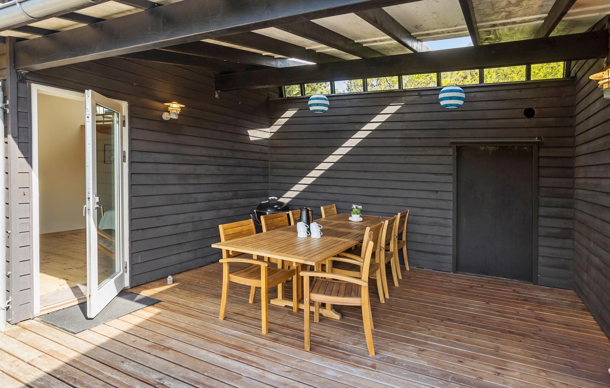 Treten Sie vom Wohnraum auf die Veranda und die sonnige Holzterrasse und genießen gegrillte Mahlzeiten mit Blick auf die Nordsee. Das Grundstück und die Umgebung sind die ideale Umgebung, um Abstand von Ihrem hektischen Alltag zu erhalten und sich zu entspannen.