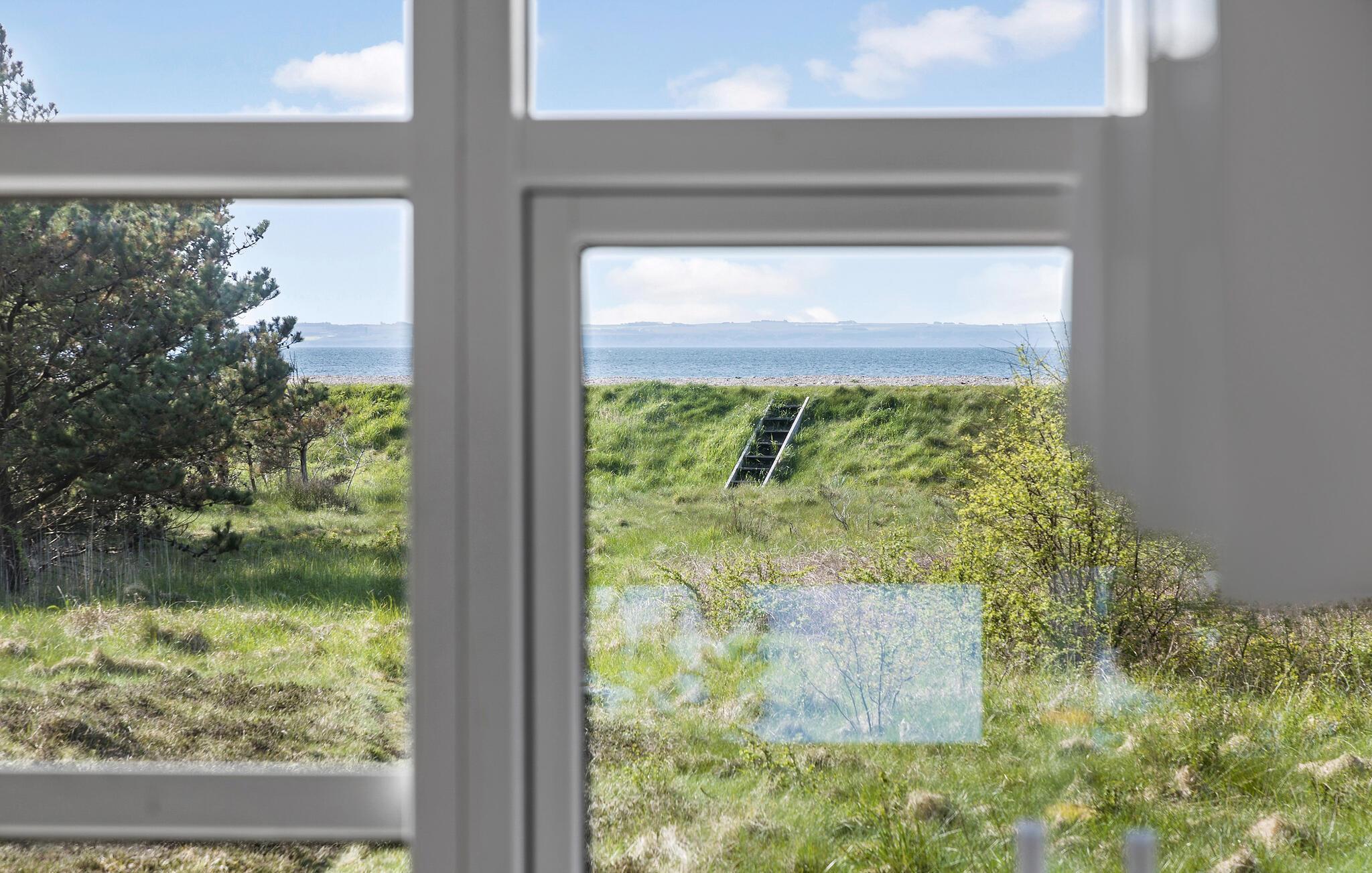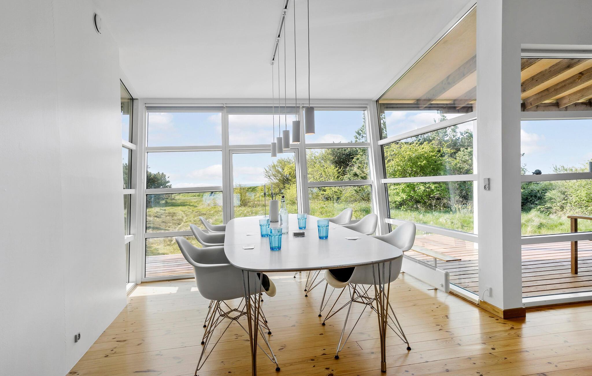 Modernes Ferienhaus in erster Reihe mit Panoramablick auf den Limfjord und Nähe zum steinigen Strand in Helligsø strand.