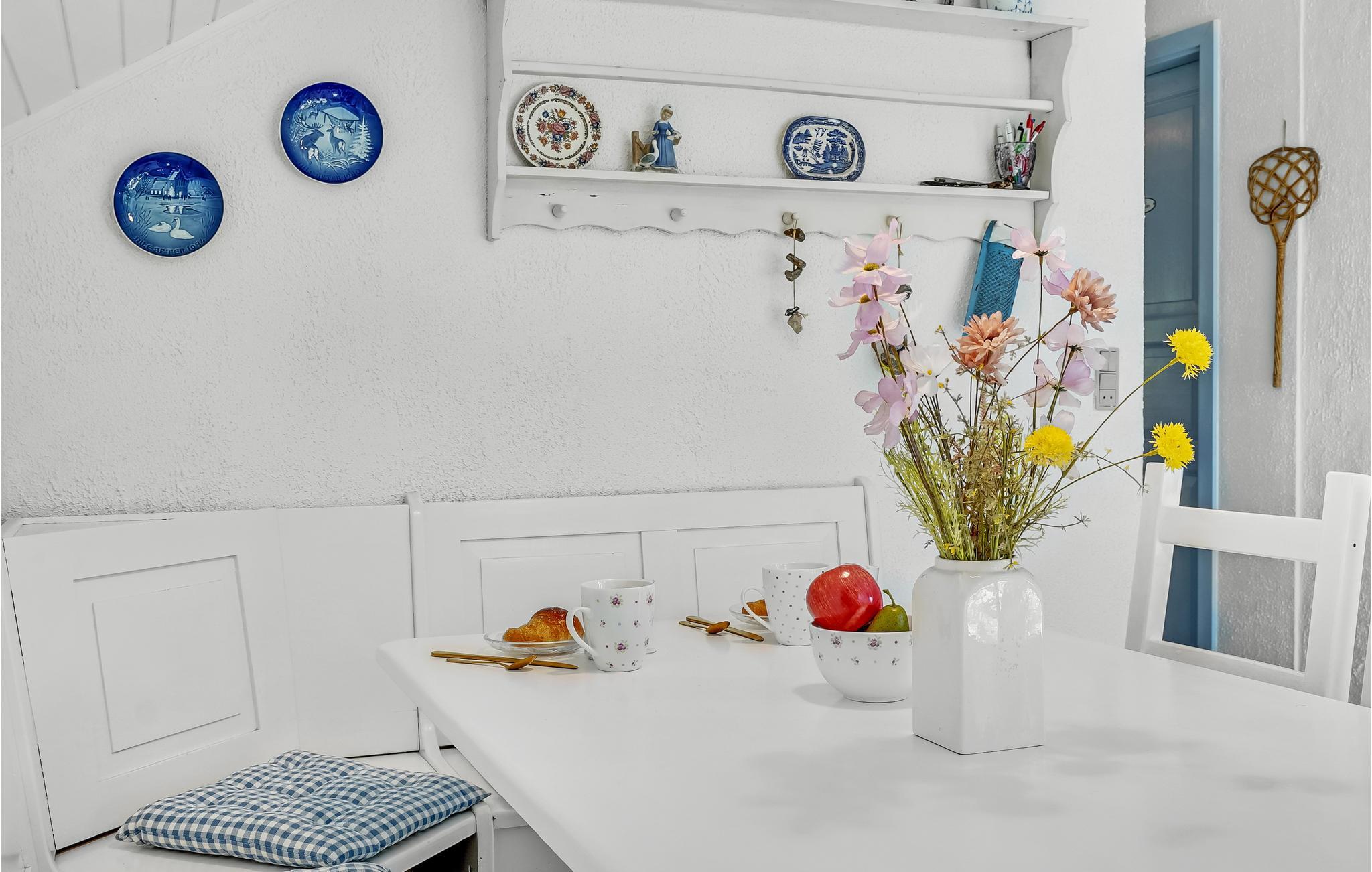 Willkommen in diesem charmanten Ferienhaus, das mit seinen drei Schlafzimmern Platz für eine Familie bietet. Das Herz des Hauses ist der Wohnbereich mit Ess- und Sofaecke, wo Sie gut zusammen essen oder mit einem prasselnden Feuer im Kamin entspannen können. Außerdem gehört eine einfache Küche zum Haus.