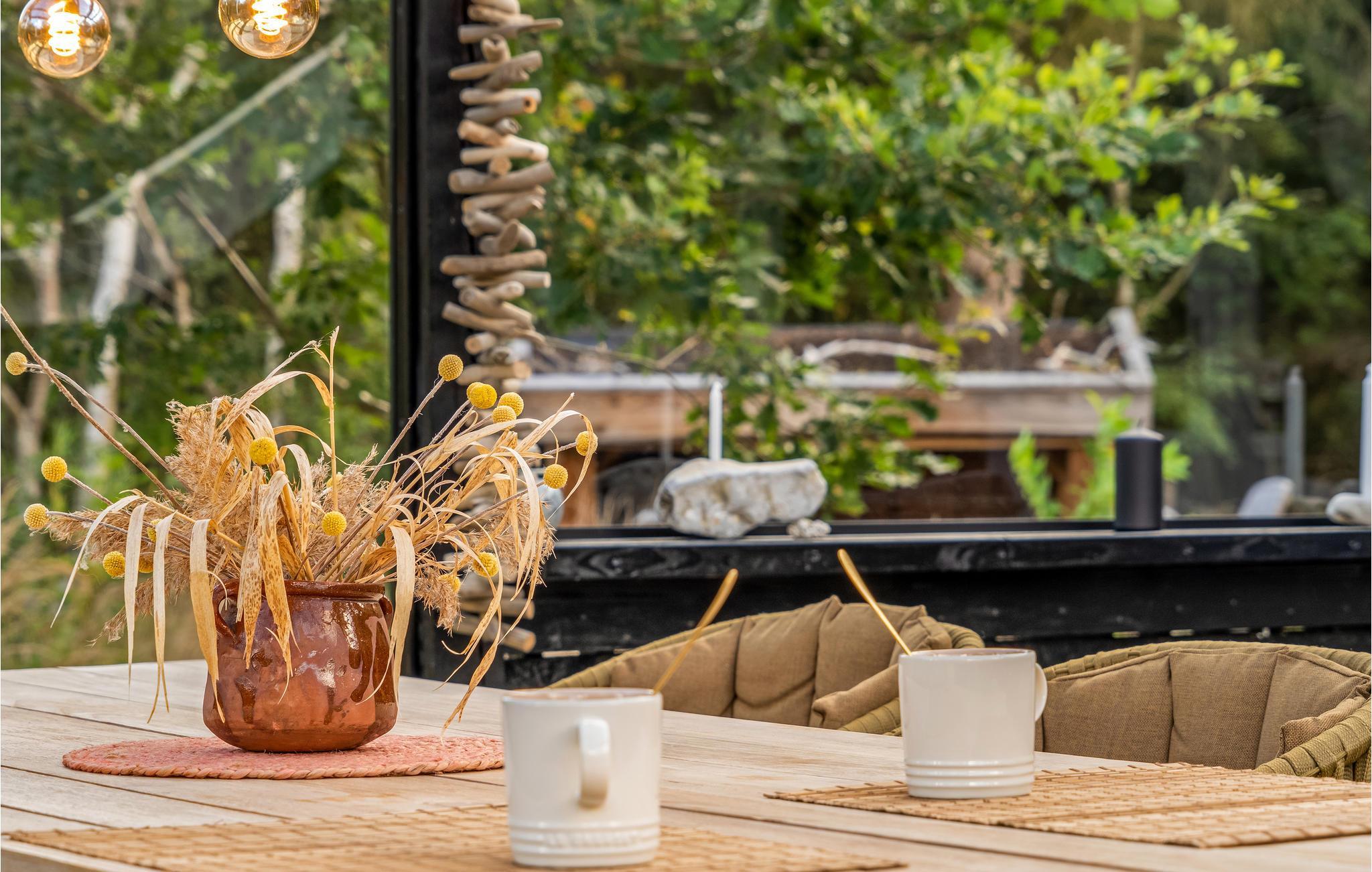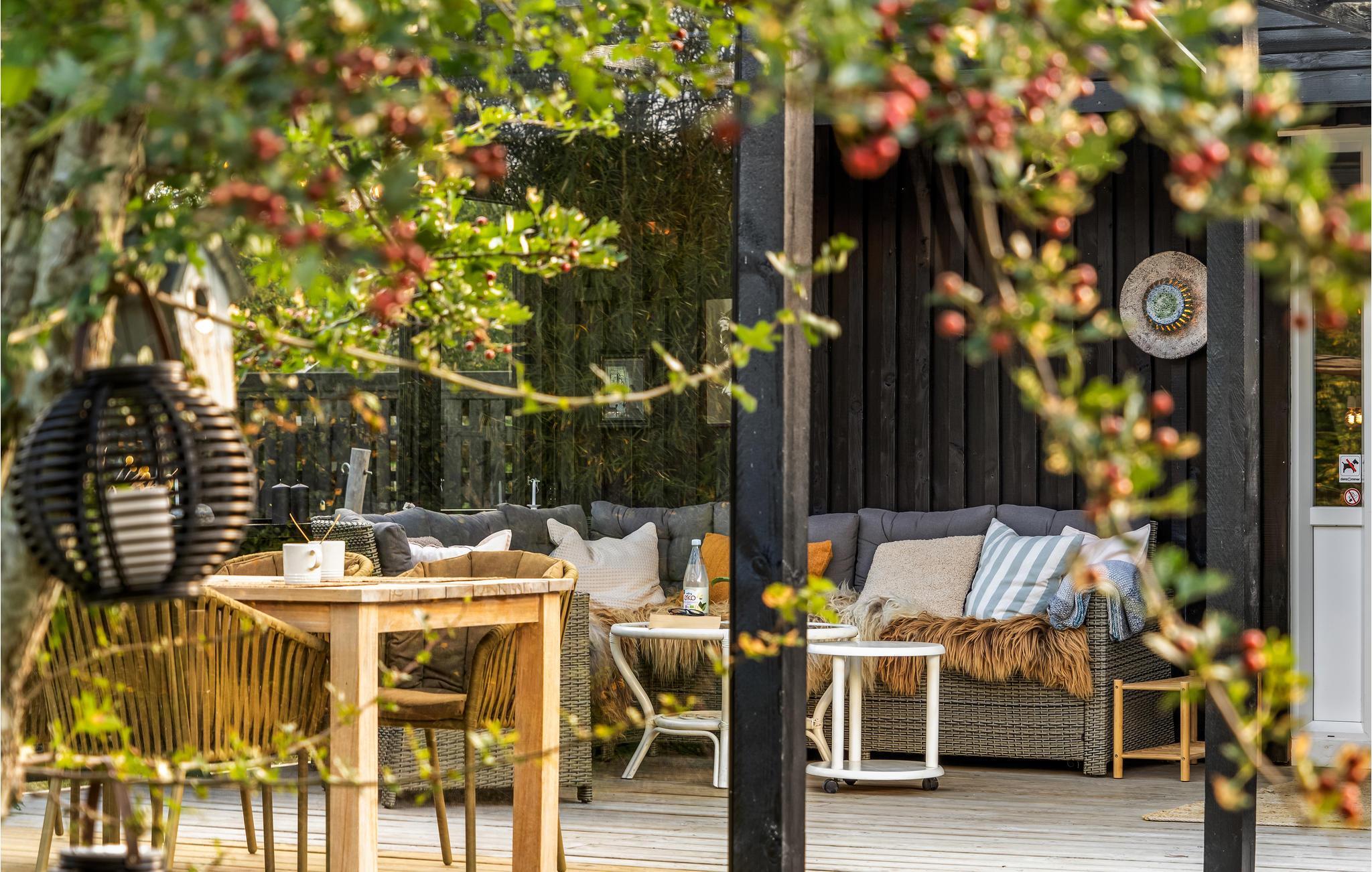 Das Haus befindet sich auf einem schönen Naturgrundstück, das viel Platz zum draußen sein bietet. Entspannen Sie auf der Terrasse mit offenen und überdachten Bereichen oder genießen Sie die Sonne auf den Sonnenliegen mit einem spannenden Buch. Nach einem aktiven Urlaubstag lädt das finnische Holzbad oder die Sauna zu schönen Wellness-Momenten ein. Oder genießen Sie ein Lagerfeuer am Shelter im Garten.