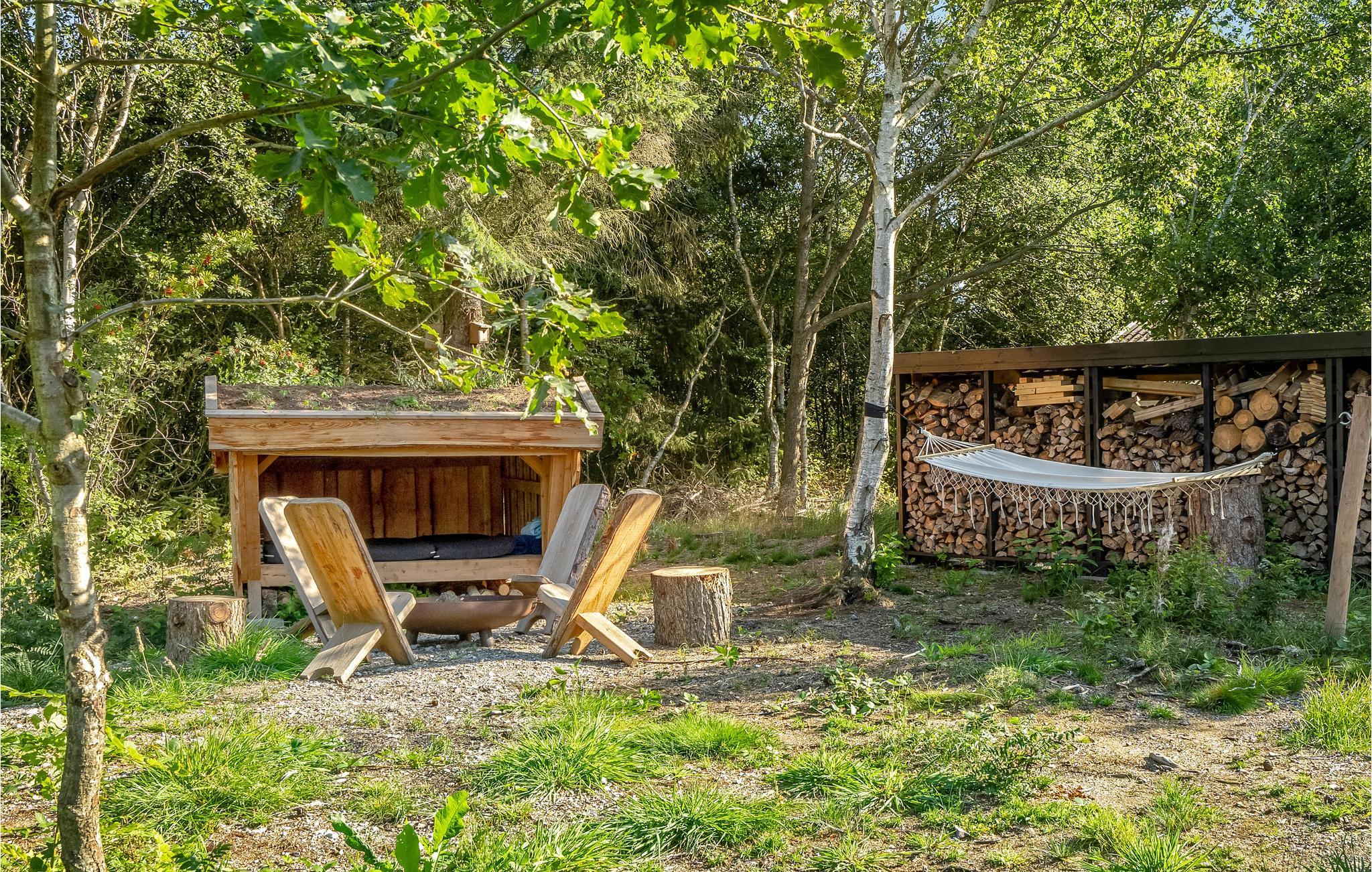 Charmantes Ferienhaus bei Helligsø Strand mit Sauna, Kamin und großem Naturgrundstück für entspannte Urlaubstage.