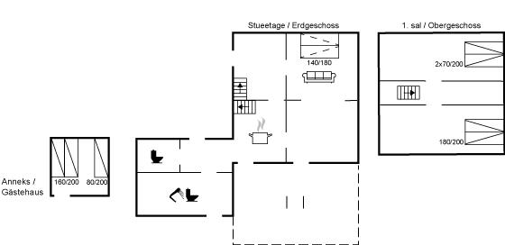 Die Schlafplätze verteilen sich auf 3 Schlafräume. 7 Schlafplätze in Einzelbetten. 2 Schlafplätze auf einer Doppelschlafcouch. 3 von diesen Schlafplätzen befinden sich im Gästehaus und 2 befinden sich im Wohnzimmer.