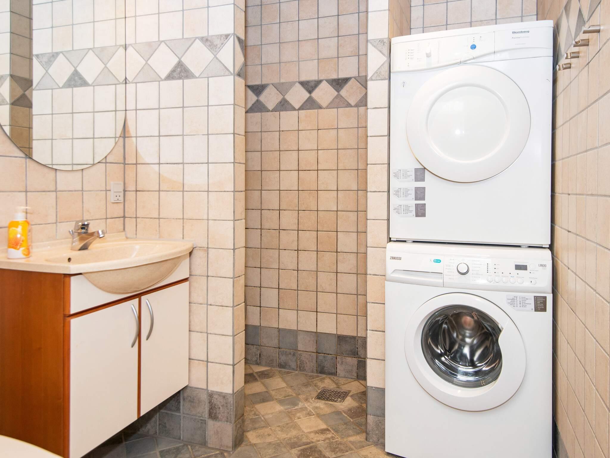 Bad: Waschm, Trockner, WC, Waschb., Dusche, Fußbodenheiz.
