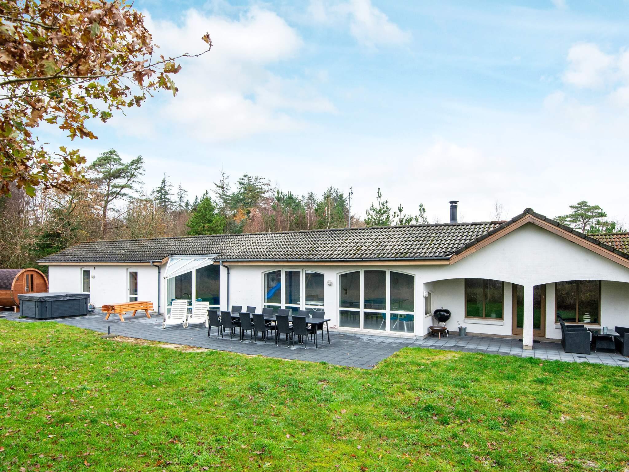 Auf einem von schützenden Bäumen umgebenen Naturgrundstück steht in ländlicher Umgebung, in einem Ferienhausgebiet bei Henne, dieses sehr geräumige Ferienhaus mit Swimmingpool im Haus sowie einem Whirlpool im Außenbereich. Zudem Saunafass im Garten.