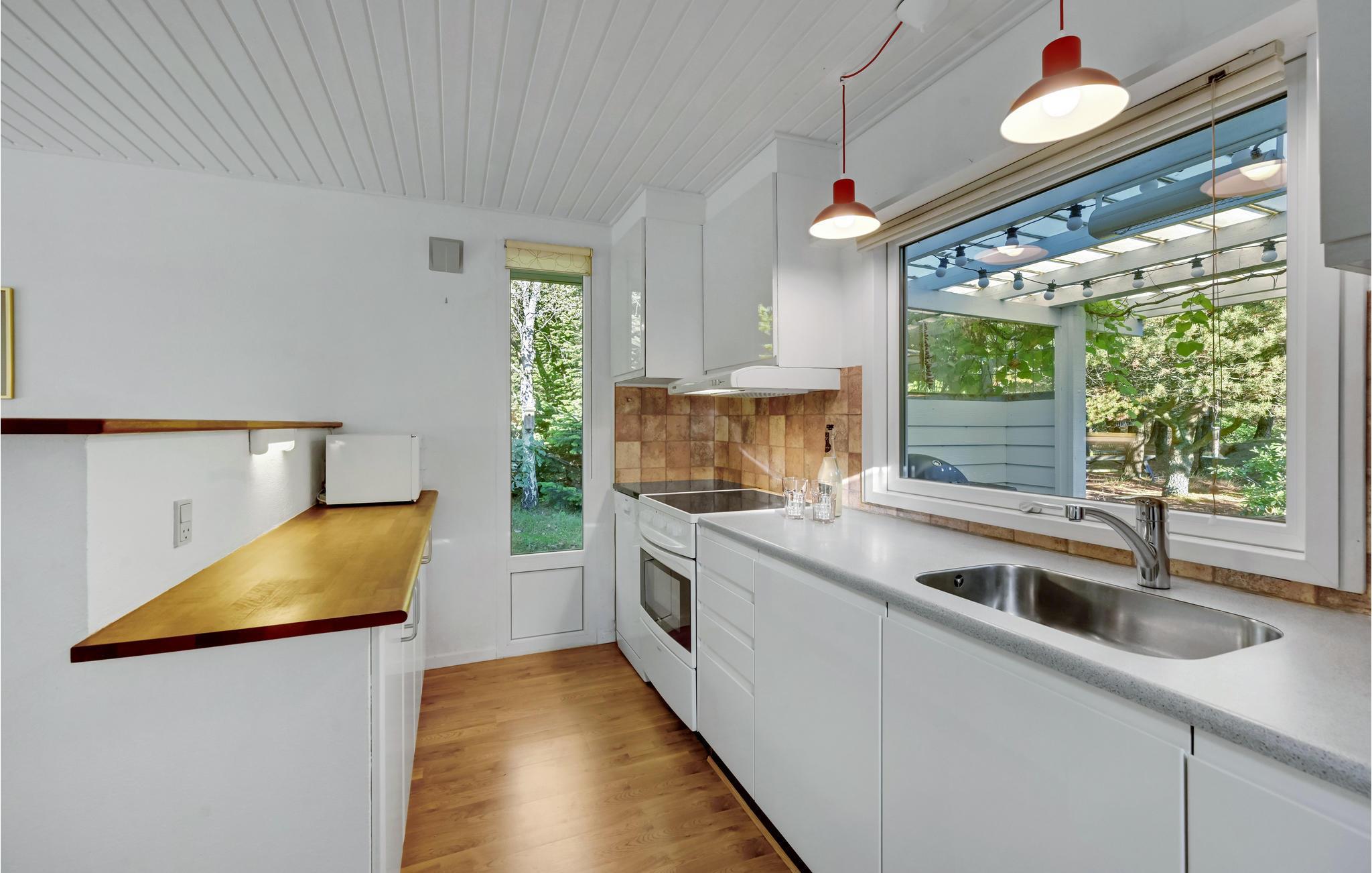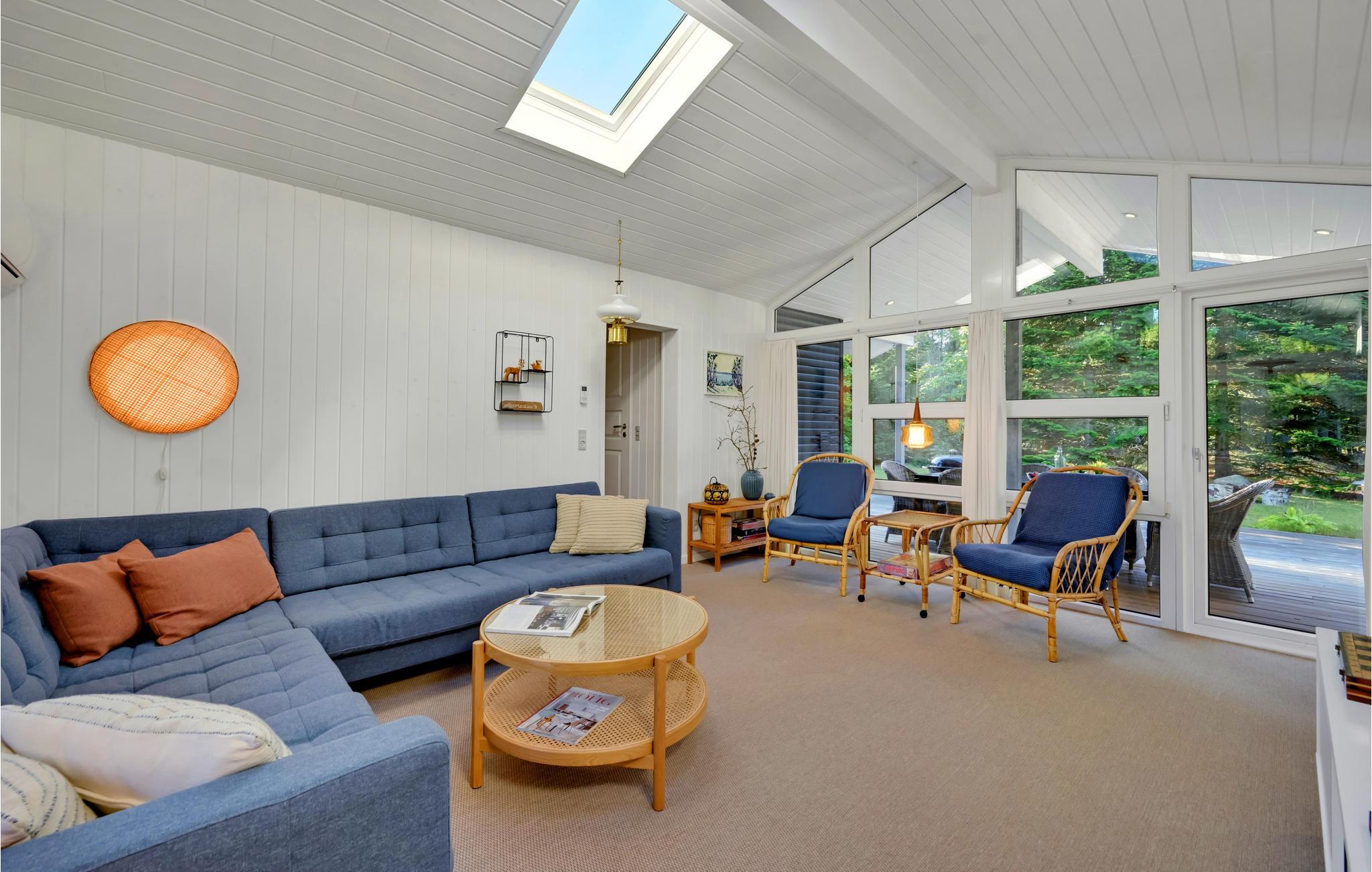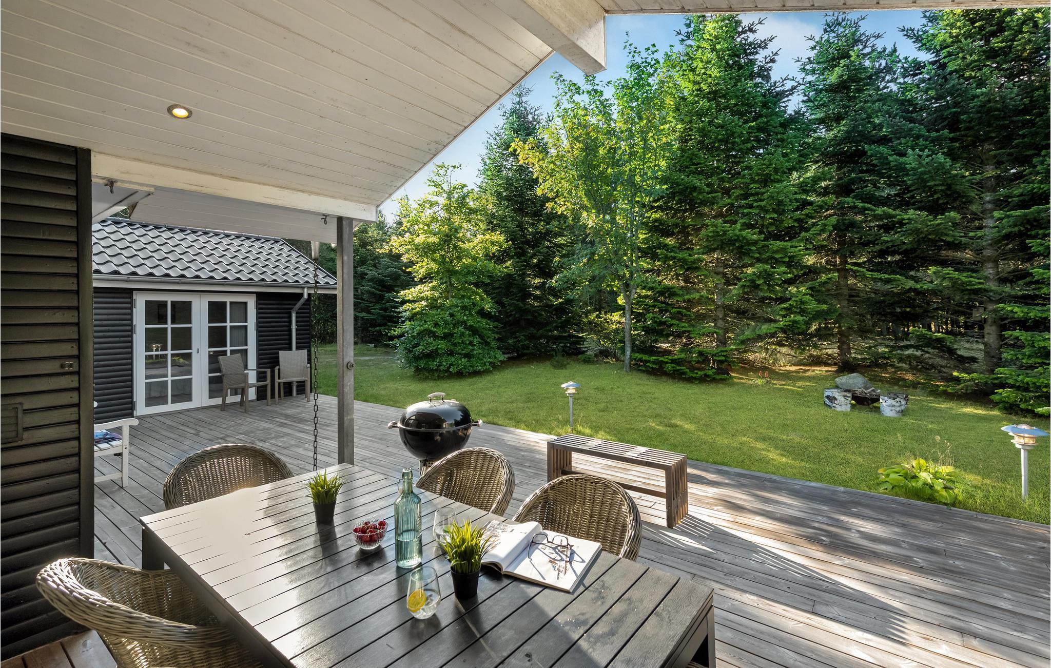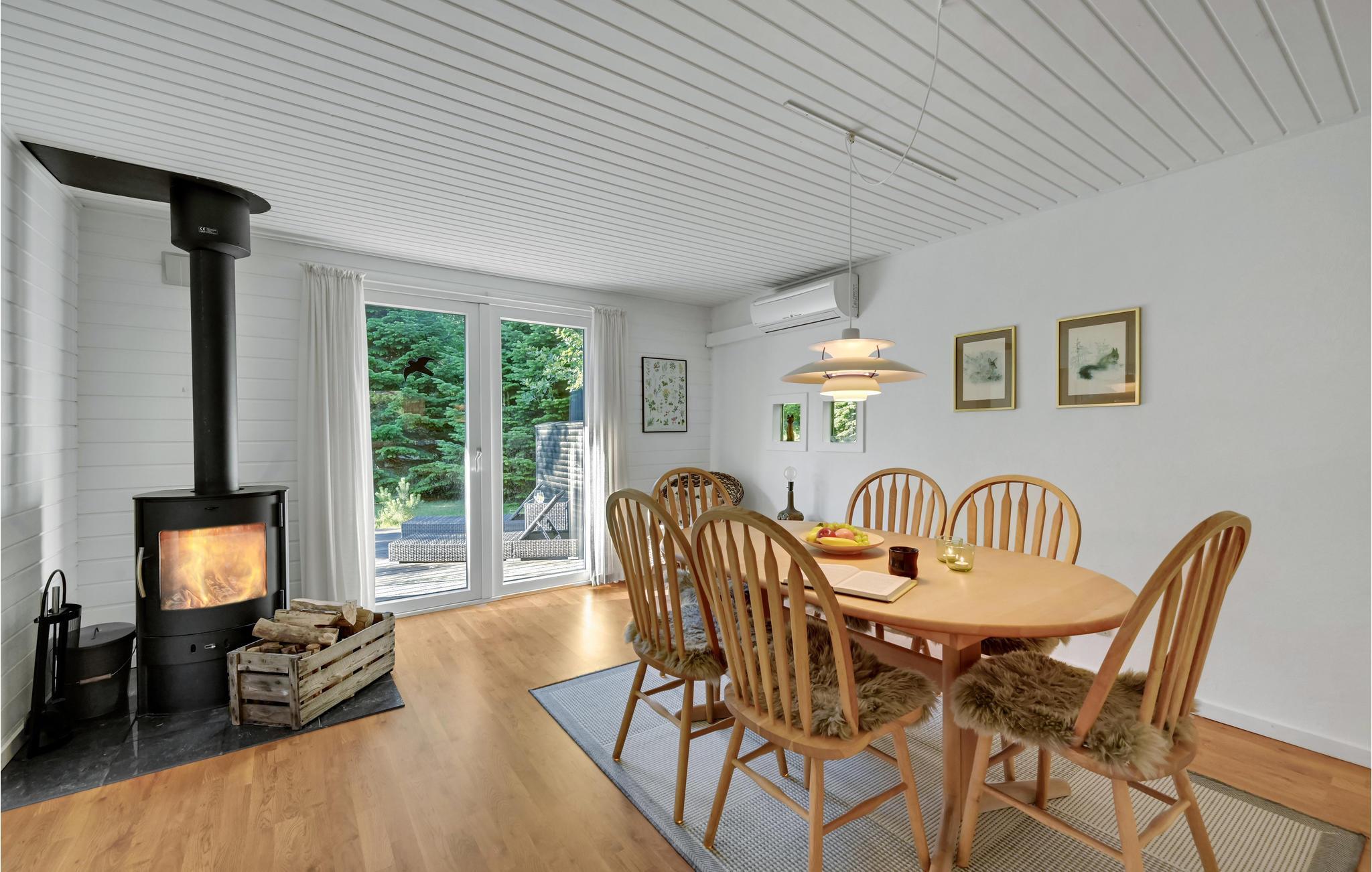 Dieses sehr schöne und gemütlich eingerichtete Ferienhaus liegt einmalig auf einem großen Waldgrundstück. Hier wohnen Sie wirklich ruhig. Das Grundstück liegt außerdem am Ende einer Schotterstraße, die nach Henne führt. 2019 wurde das Feienhaus komplett renovier und bietet nun eine schöne Wohnküche mit Kaminofen. Eine Wärmepumpe dient als ergänzende Heizquelle. Vom Wohnraum aus gibt es zwei Ausgänge zu den Terrassen, die teilweise überdacht sind. Von der kleineren Terrasse, die nach Nordwest gewandt liegt, haben Sie gute Bedingunge, um das Tierleben zu beobachten: Eichhörnchen, Hirsche, Rehe und viele verschieden Vögel kommen hier vorbei, denn der Hausbesitzer füttert diese das ganze Jahr.