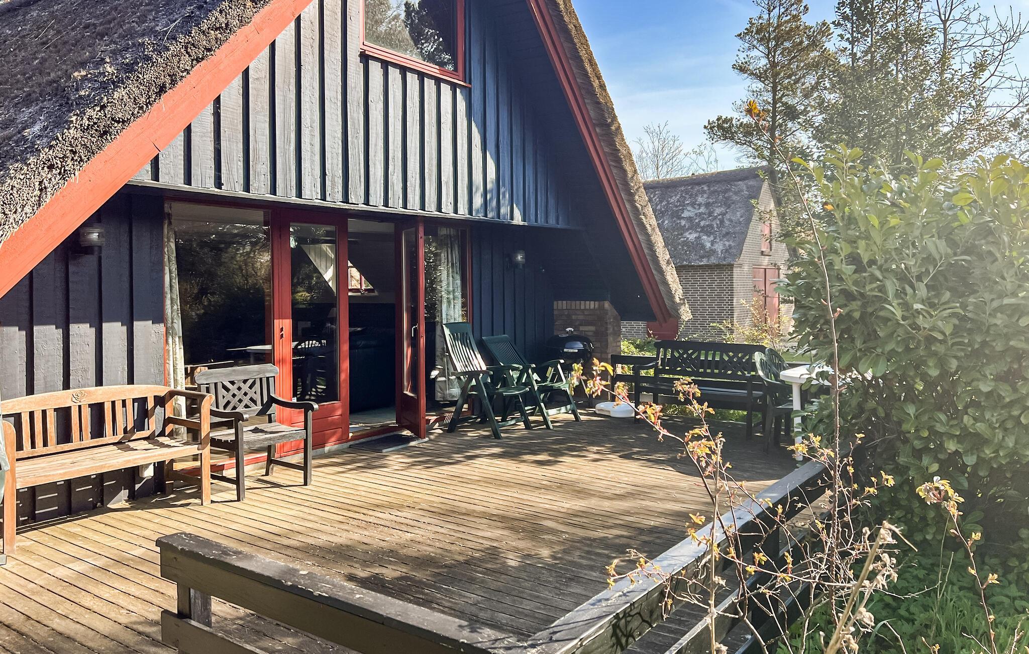 Gemütliches Reetdachhaus nahe Henne Strand mit Kamin, großer Terrasse und Garten für erholsame Urlaubstage an der Nordsee.