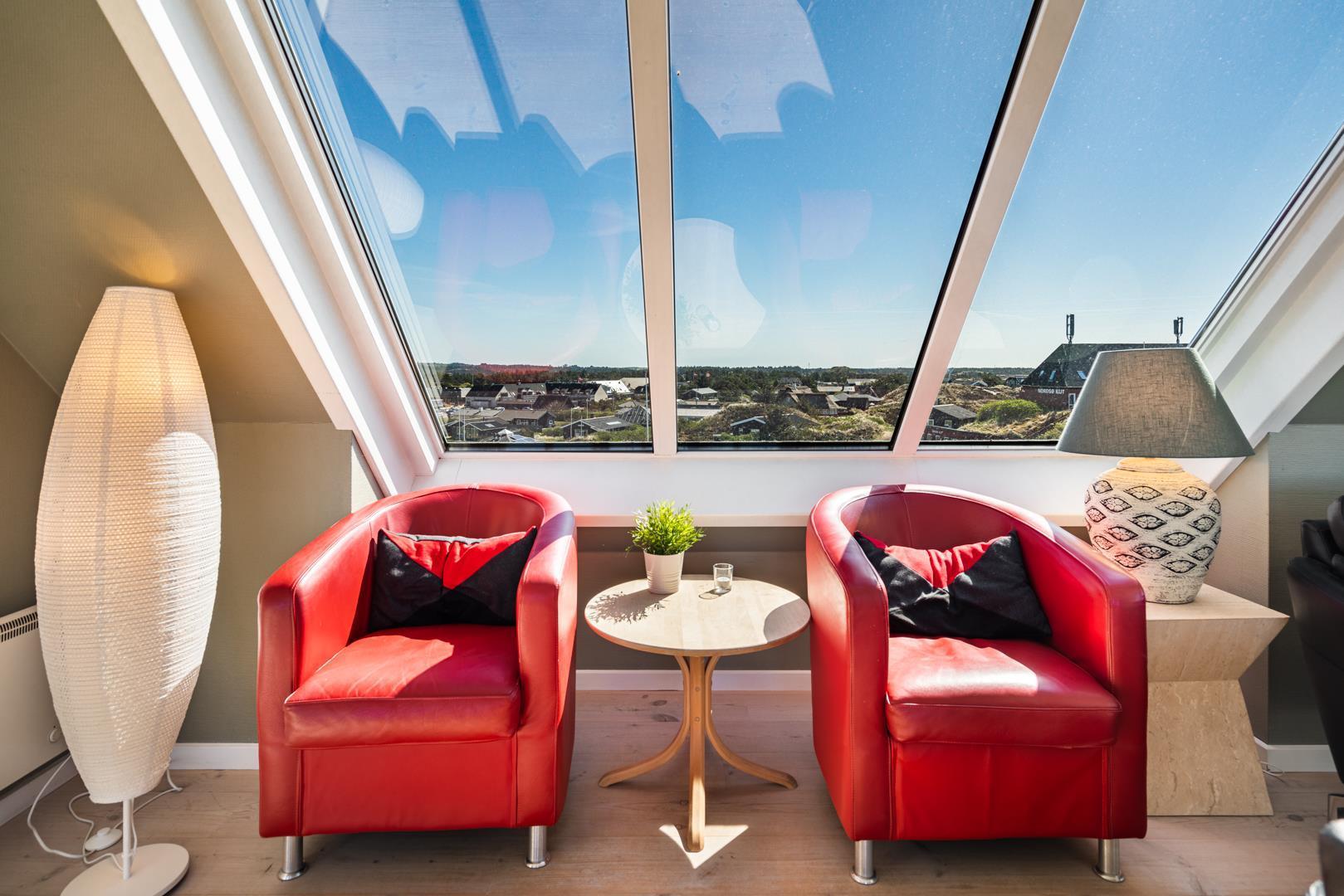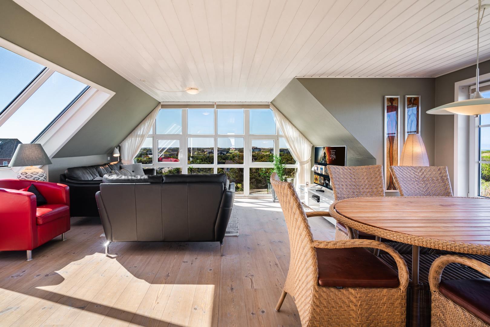 Das Haus erstreckt sich über zwei Etagen und bietet einen grandiosen Ausblick auf die Nordsee und die Stadt.