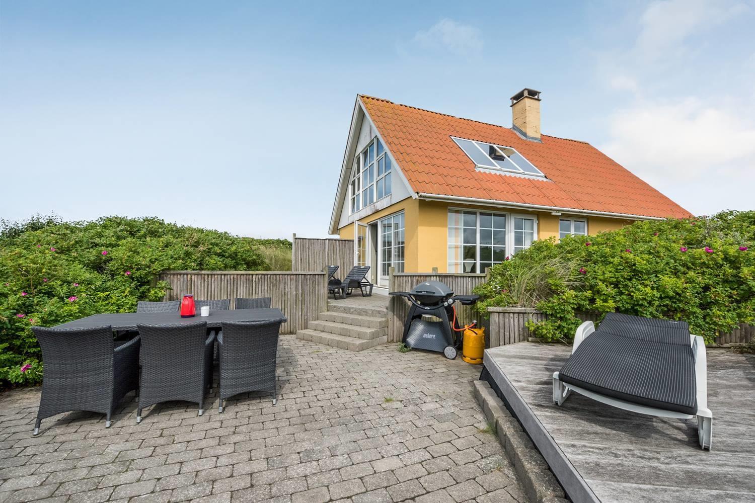 Auf einer schönen Düne, nur wenige hundert Meter vom breiten Sandstrand und dem gemütlichen Zentrum von Henne Strand entfernt, liegt dieses prachtvolle und gepflegte Ferienhaus.