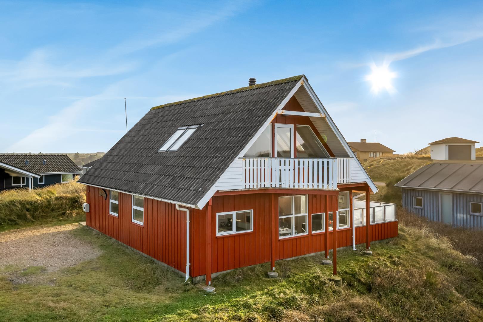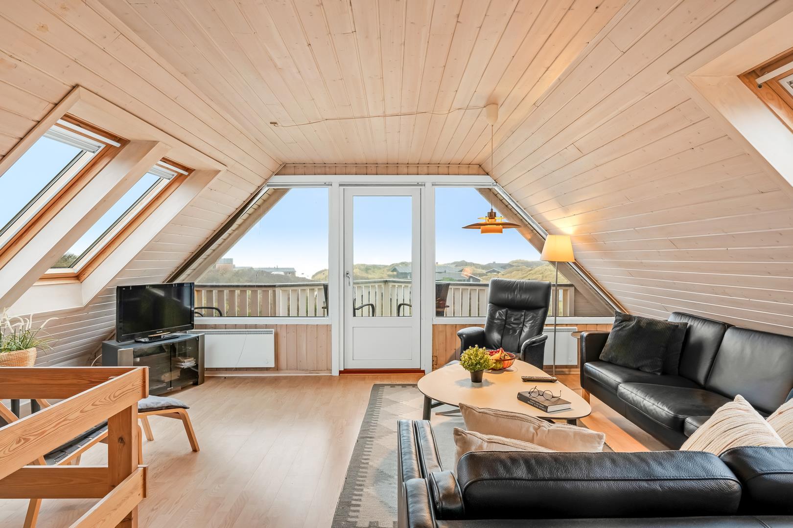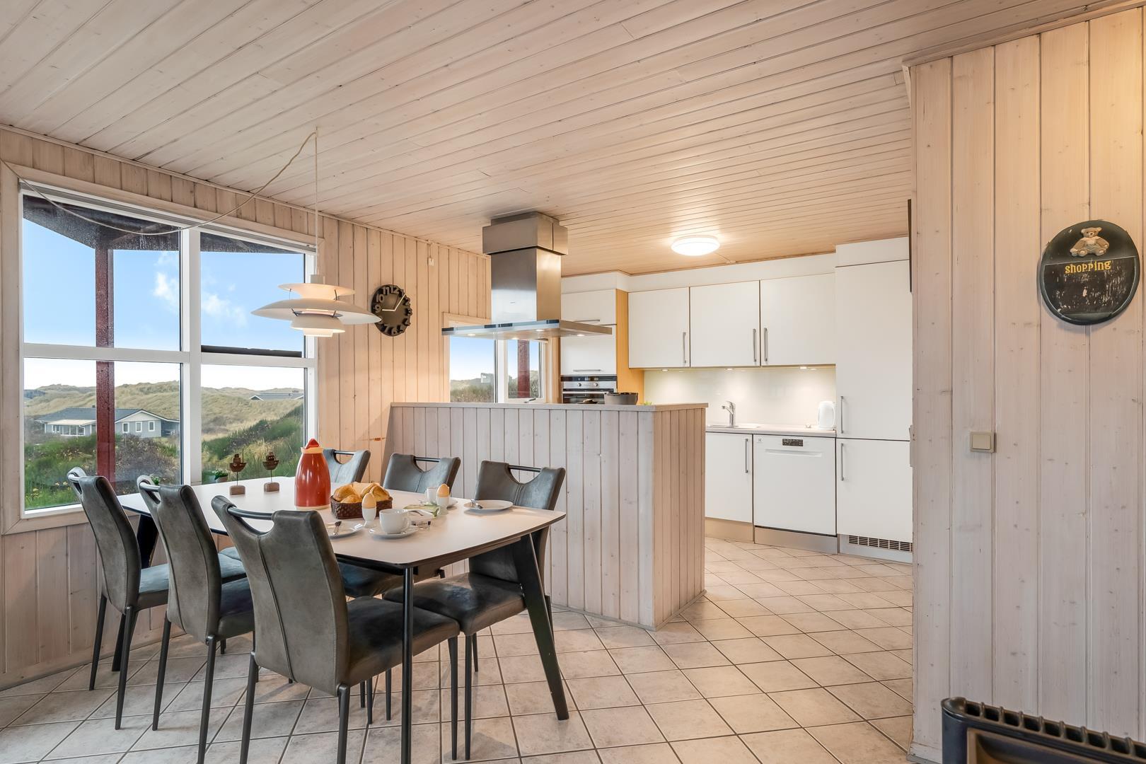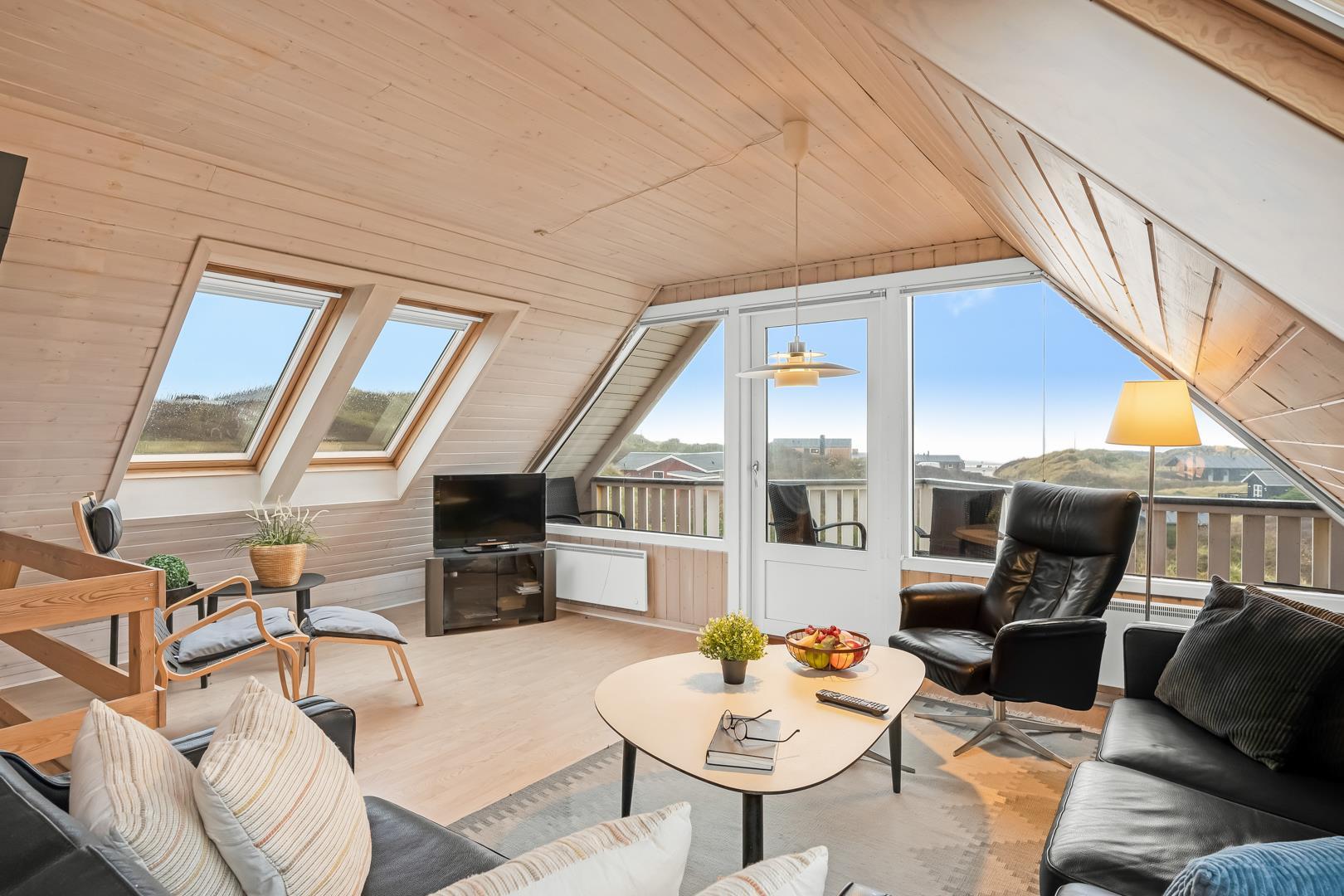 Schönes Ferienhaus auf 2 Etagen mit Meerblick gelegen auf einem tollen Dünengrundstück nahe am Strand. Es gibt sowohl Meerblick vom Erdgeschoss als auch von der 1.Etage. Mehrere schöne Terrassen von wo man die schöne Aussicht genießen kann. Tolles Bad mit Sauna. In der 1. Etage gibt es eine gemütliche Stube wo man ebenfalls die schöne Aussicht genießen kann und wo es Zugang zum Balkon gibt. Ein fantastisches Haus nahe am Wasser.