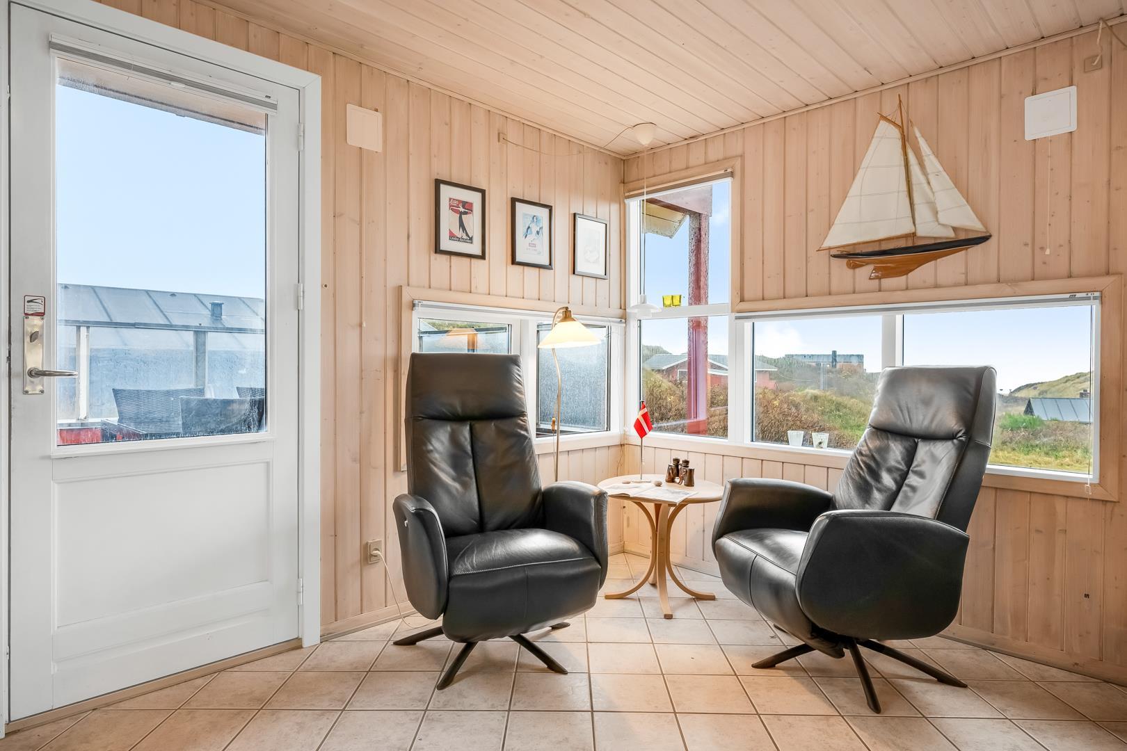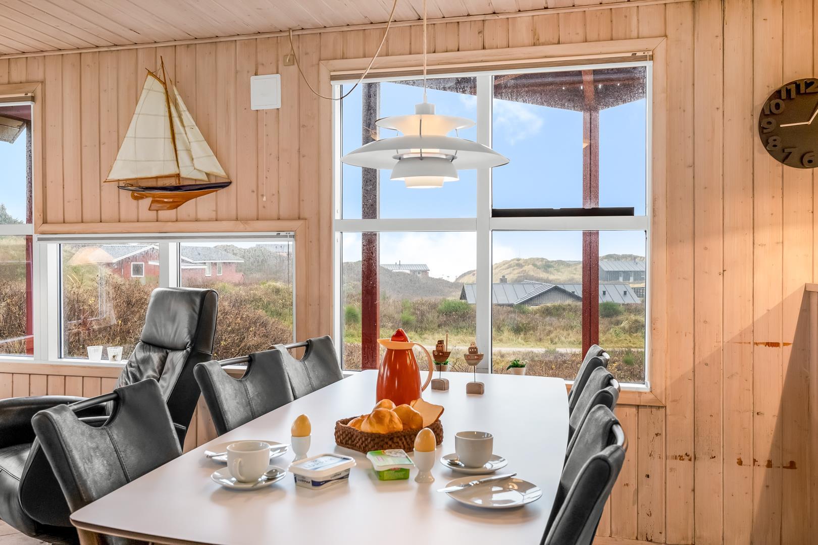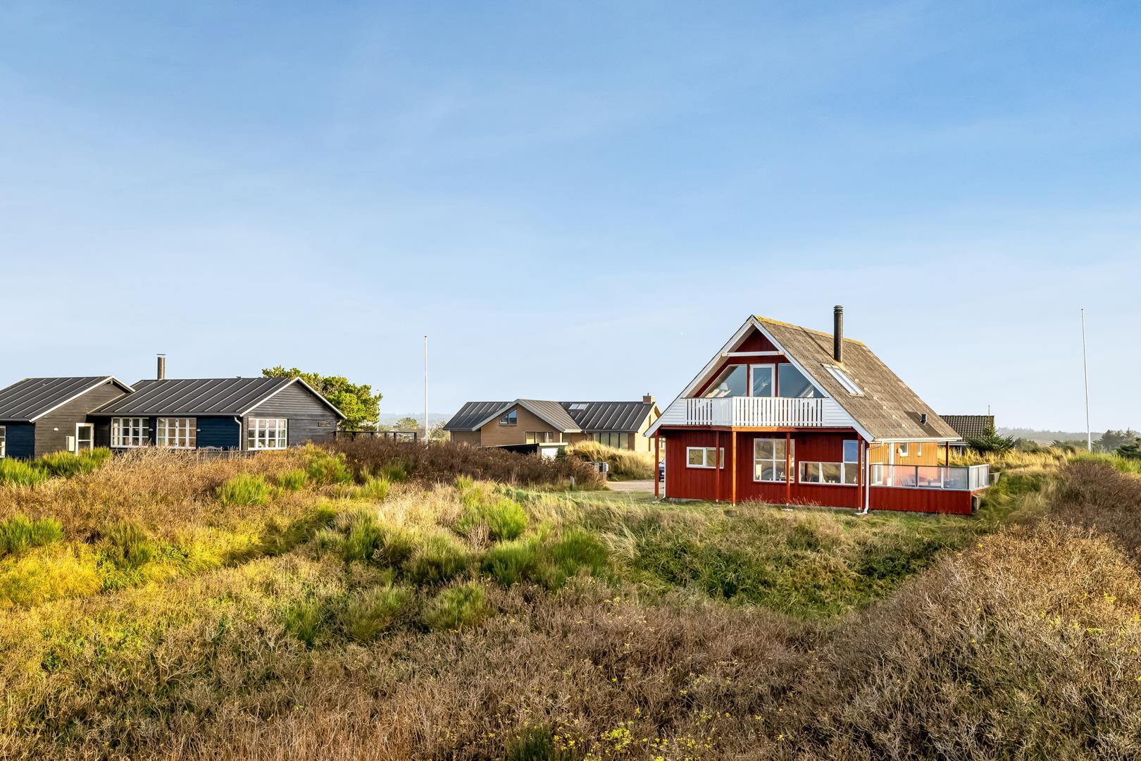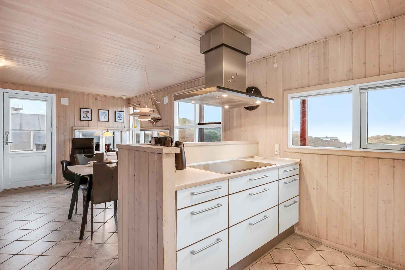 Schönes Ferienhaus auf 2 Etagen mit Meerblick gelegen auf einem tollen Dünengrundstück nahe am Strand. Es gibt sowohl Meerblick vom Erdgeschoss als auch von der 1.Etage. Mehrere schöne Terrassen von wo man die schöne Aussicht genießen kann. Tolles Bad mit Sauna. In der 1. Etage gibt es eine gemütliche Stube wo man ebenfalls die schöne Aussicht genießen kann und wo es Zugang zum Balkon gibt. Ein fantastisches Haus nahe am Wasser.
