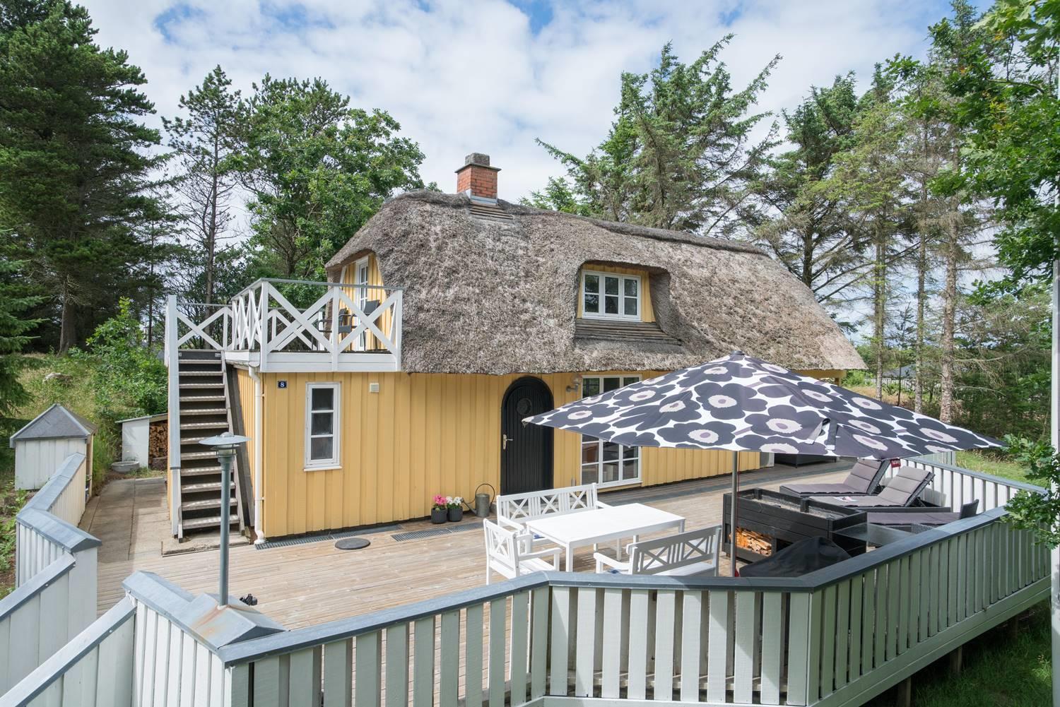 Charmantes Ferienhaus in Henne Strand mit großem Naturgrund und windgeschützter Terrasse für erholsame Urlaubstage.
