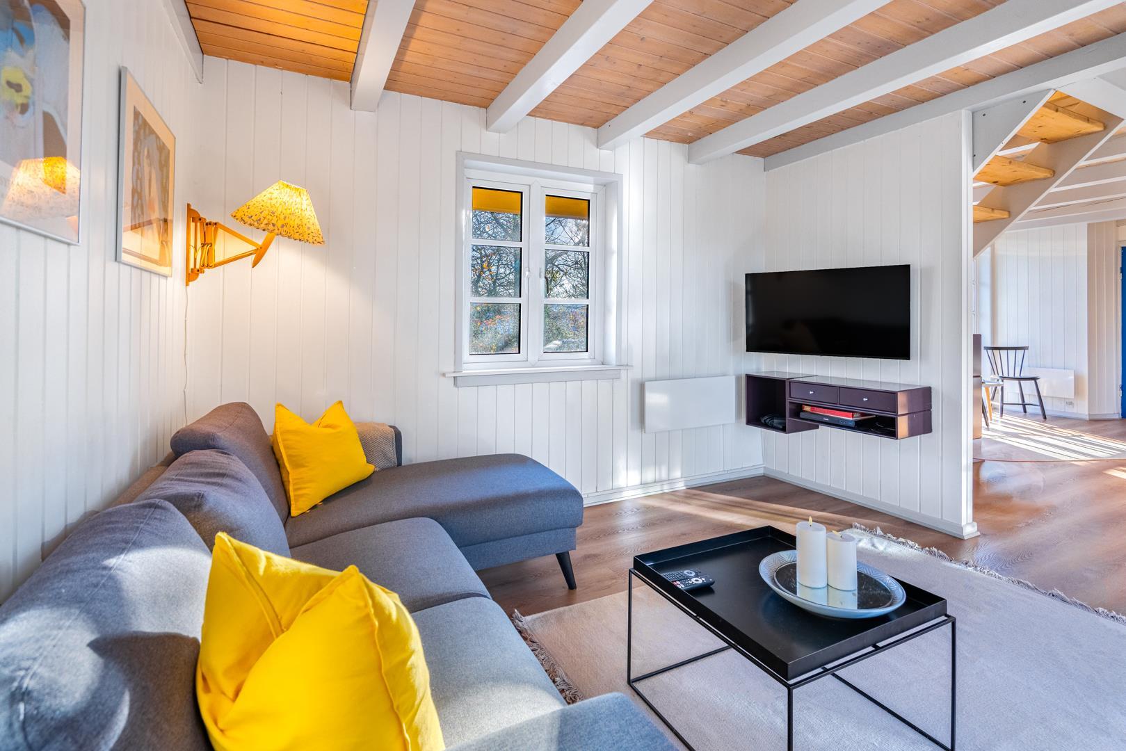 Prachtvolles und charmantes 2 - stöckiges Ferienhaus auf einem schönen und ungestörten Naturgrund. Das Haus hat ein grosses windgeschütztes Terrassenareal um das Haus herum. Hier ist ein Ferienhaus mit Seele und Atmosphäre und allen Möglichkeiten für einen schönen Urlaub.