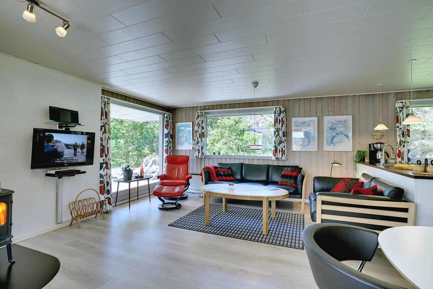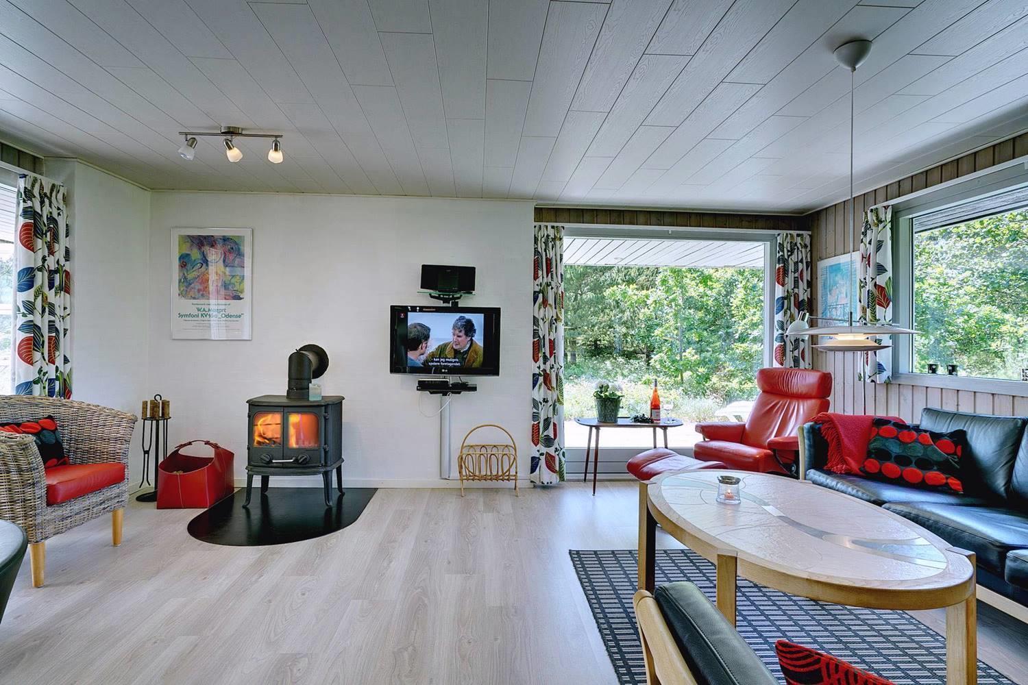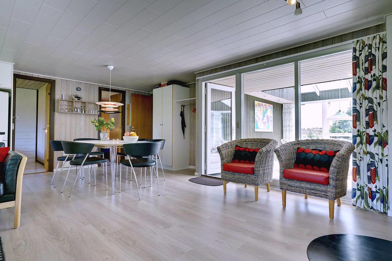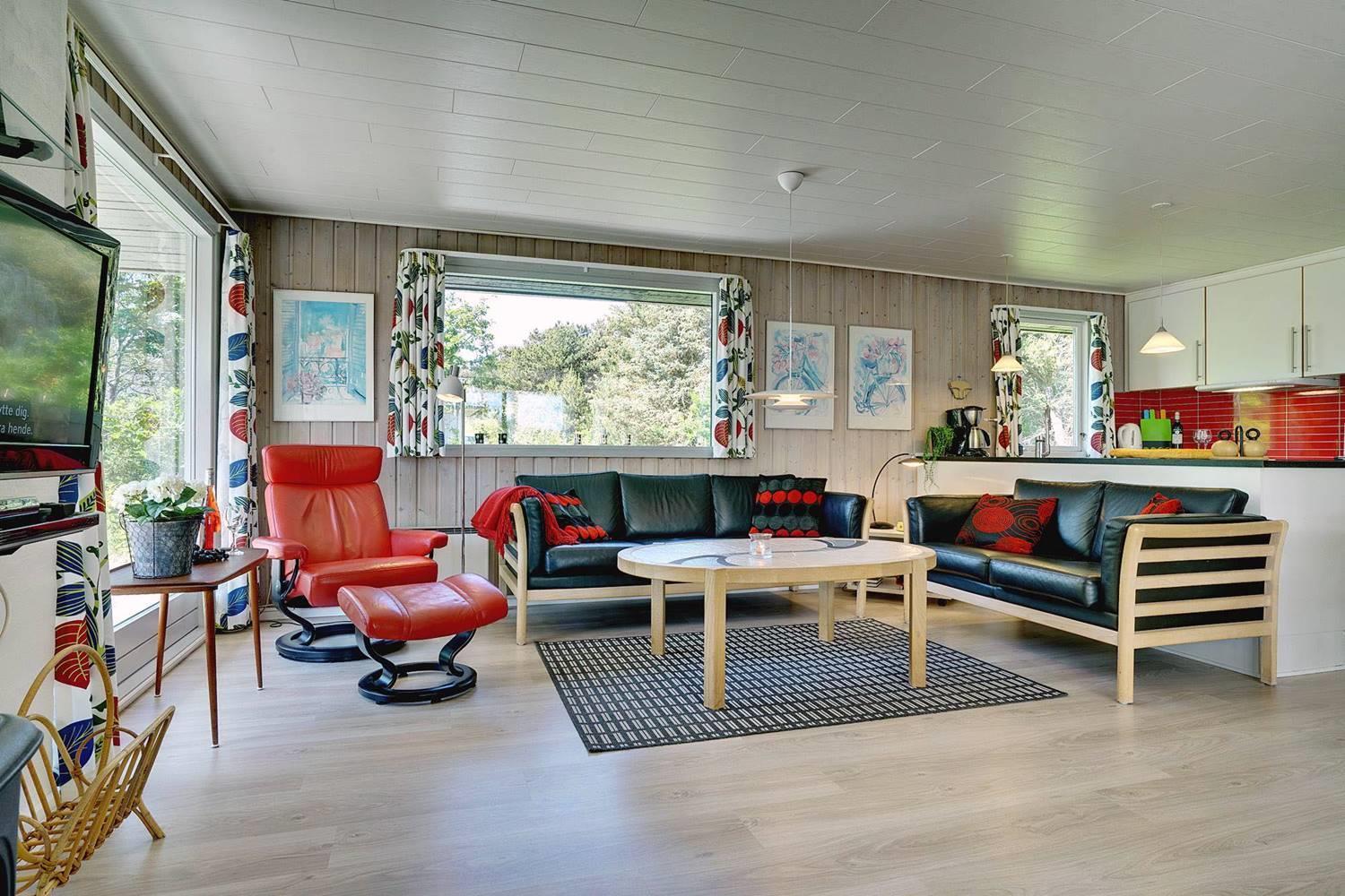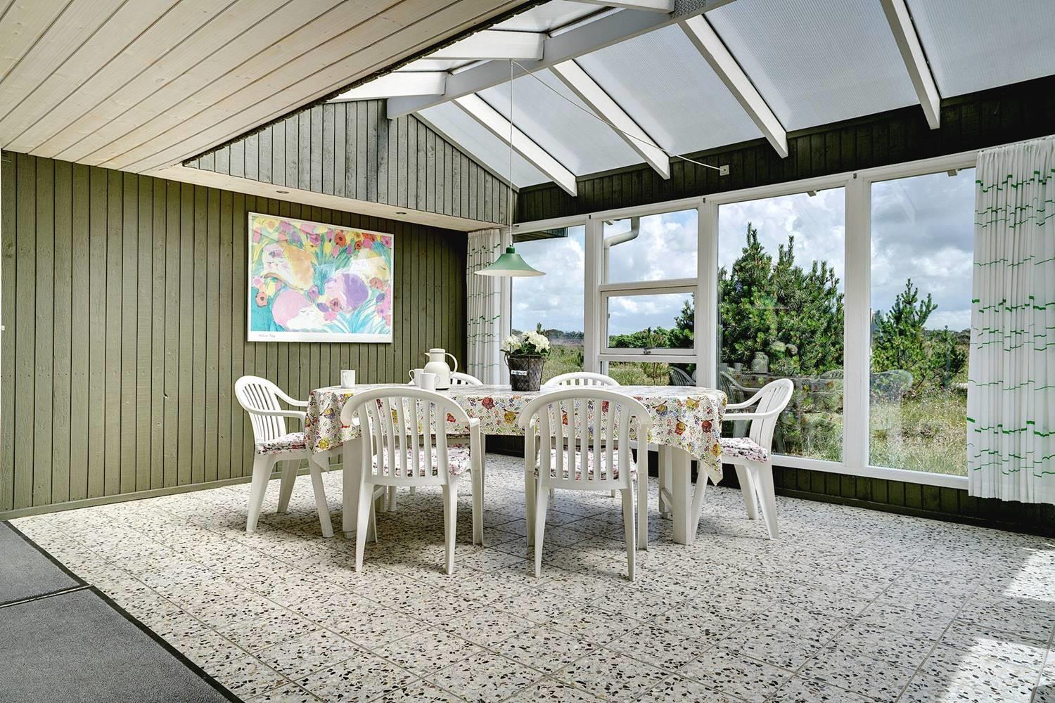 Auf einem großen Naturgrundstück liegt dieses gut gepflegte Ferienhaus in der Nähe der Henne Mølle Å. Gemütliches möbliertes Wohnzimmer, die in offener Verbindung mit der neueren Küche liegt. Helles Badezimmer mit Sauna mit Fußbodenheizung. Vom großem Wintergarten kann man die Aussicht auf das geschützte Heidegebiet genießen.