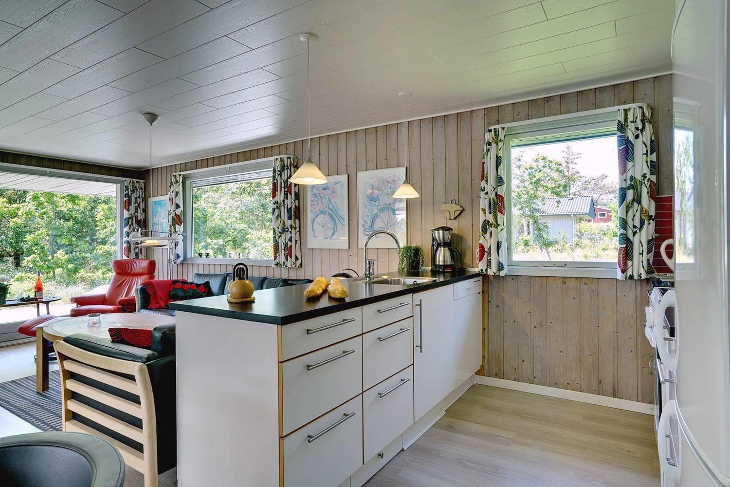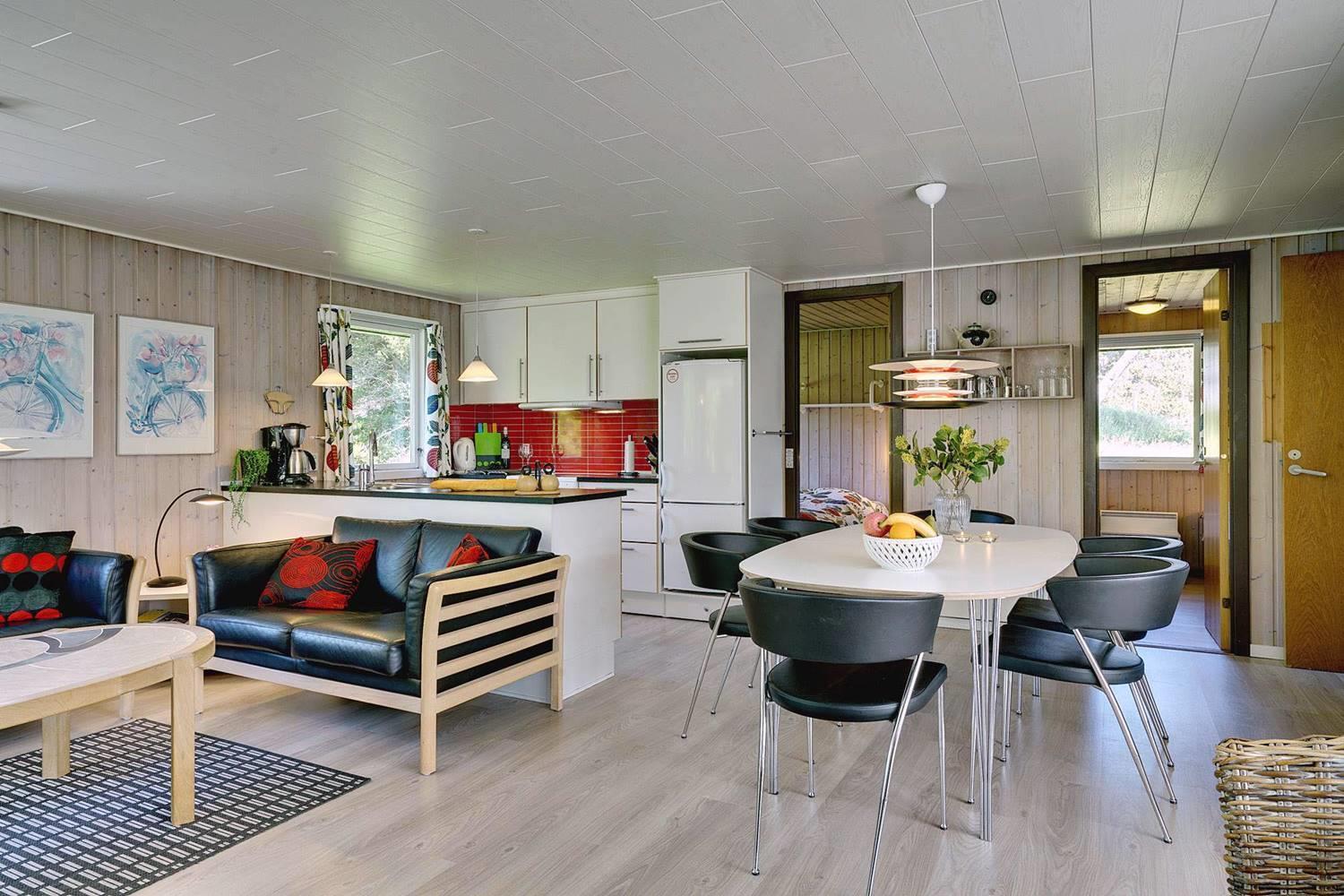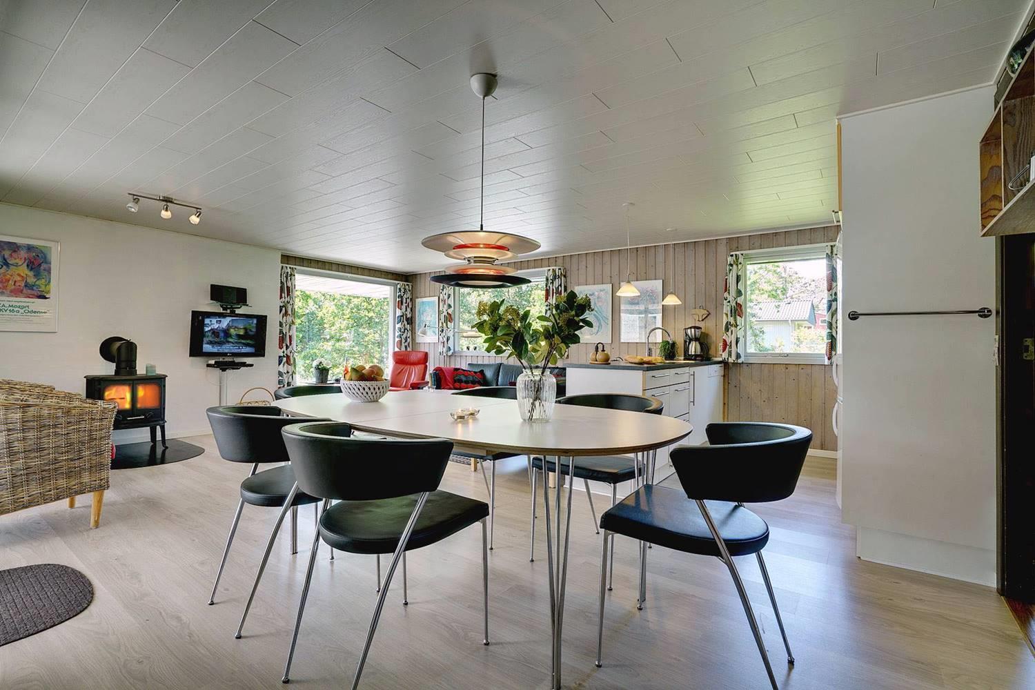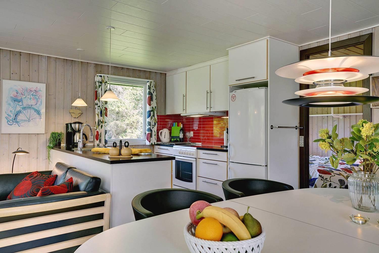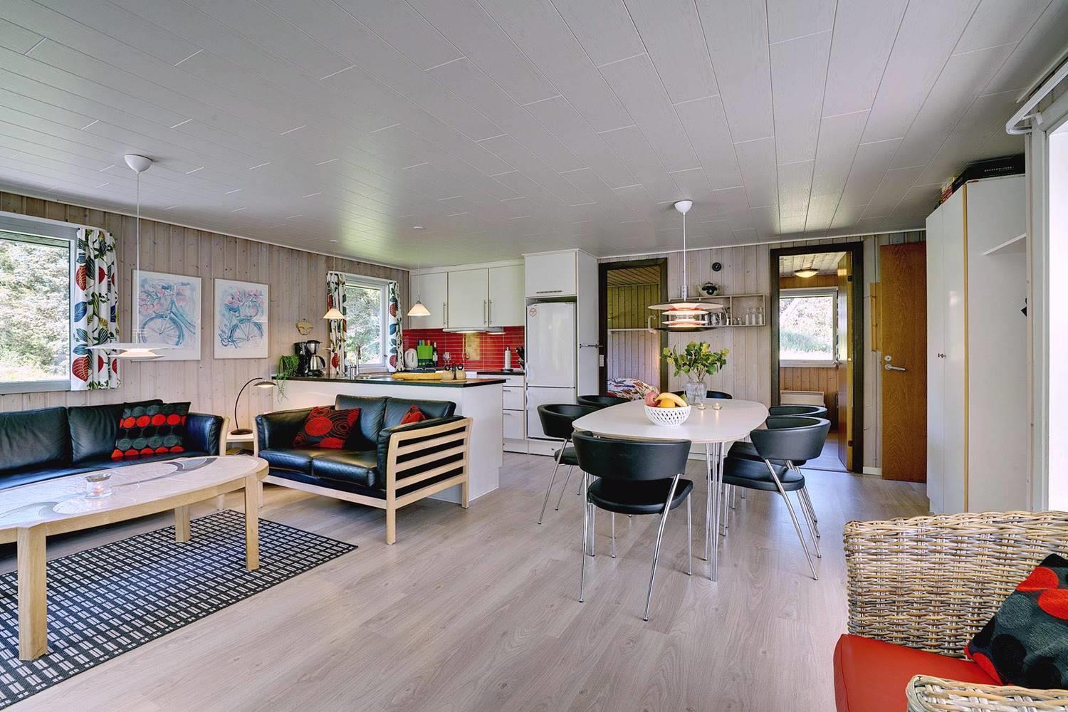 Auf einem großen Naturgrundstück liegt dieses gut gepflegte Ferienhaus in der Nähe der Henne Mølle Å. Gemütliches möbliertes Wohnzimmer, die in offener Verbindung mit der neueren Küche liegt. Helles Badezimmer mit Sauna mit Fußbodenheizung. Vom großem Wintergarten kann man die Aussicht auf das geschützte Heidegebiet genießen.