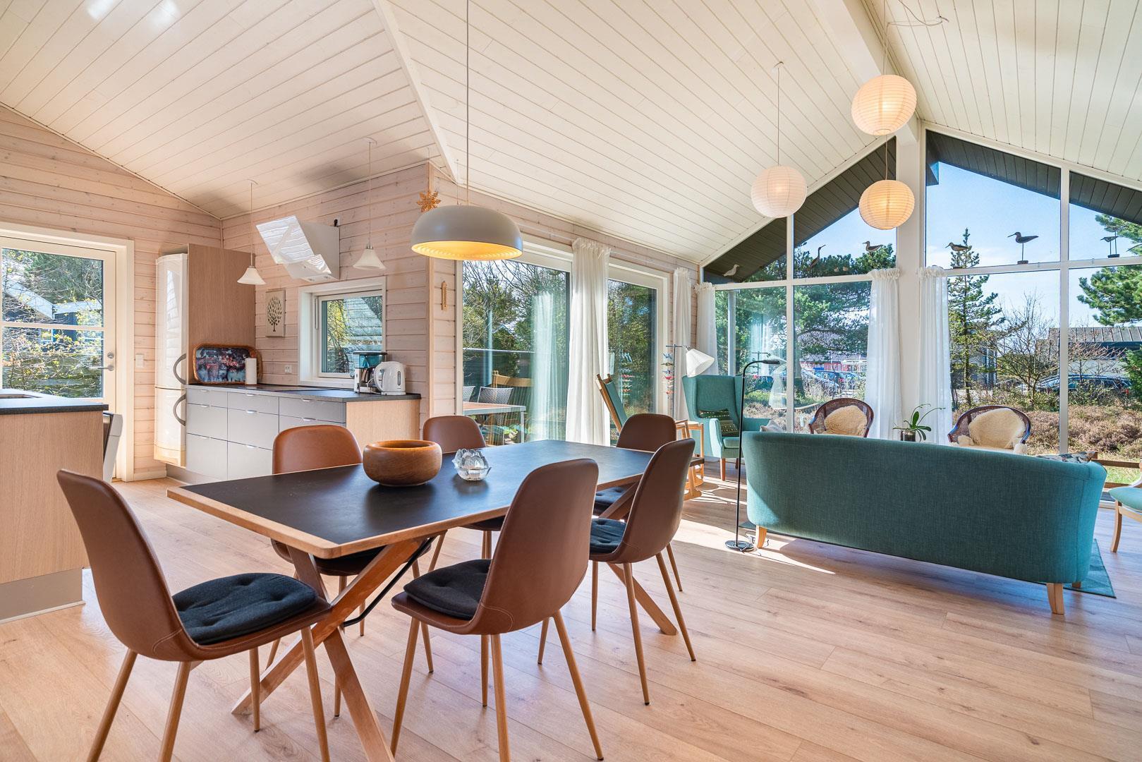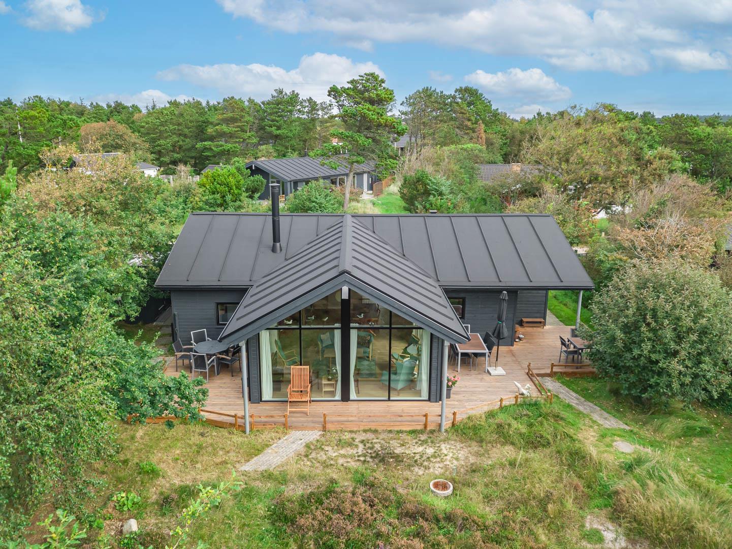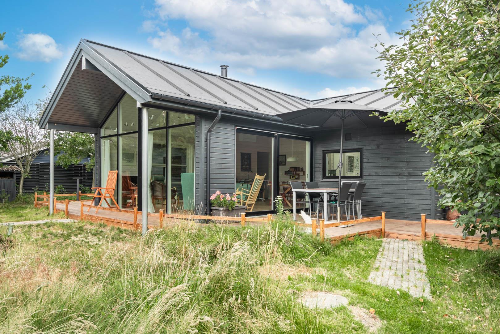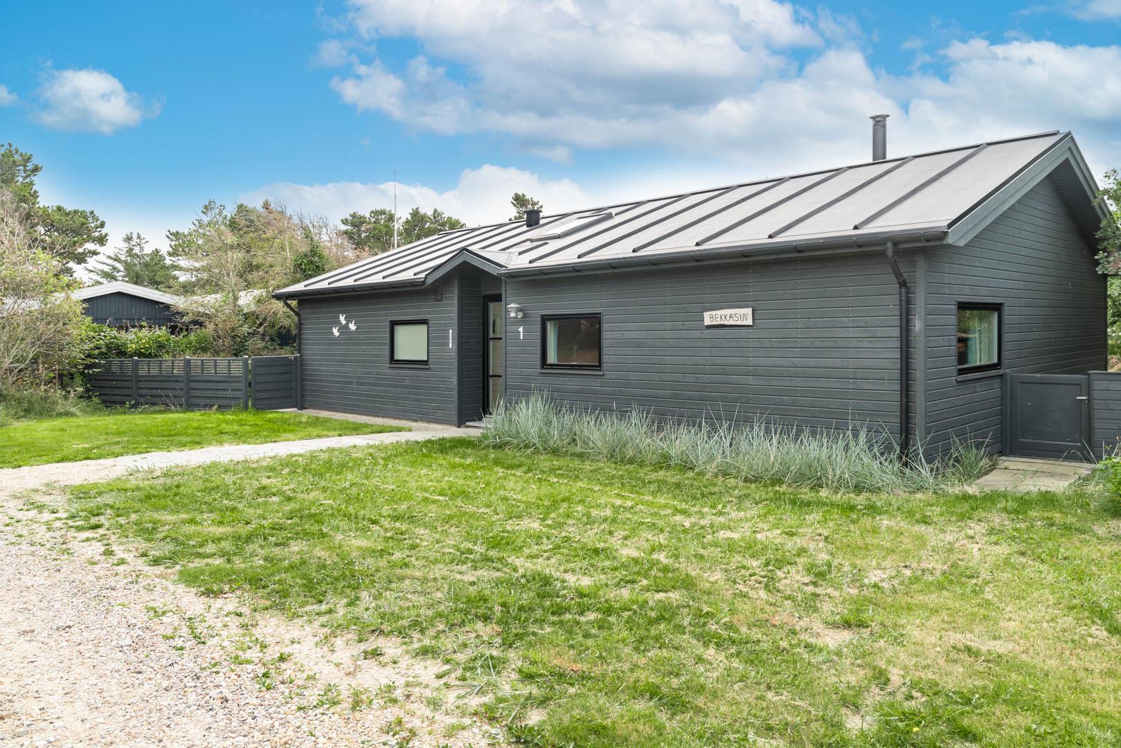 Nahe der Stadt und dennoch in ruhiger Umgebung liegt dieses charmante Ferienhaus im Bekkasinvej 1. Das Ferienhaus wurde im Jahr 2022 gebaut, und es wurde Wert auf das gemütliche Wohnzimmer gelegt, das das Herzstück des Sommerhauses darstellt. Hier werden Sie sich sofort wohlfühlen! Das Wohnzimmer ist mit der gut ausgestatteten Küche verbunden, verfügt über eine hohe Decke und große Fenster, die für fantastisches Licht im Raum sorgen. Hier hat man das Gefühl, der Natur ganz nah zu sein. Ein fantastischer Ort zum Entspannen und Genießen. An den kühlen Tagen können Sie sich natürlich auch vor dem Holzofen in ein gutes Buch vertiefen. Das Ferienhaus bietet Platz für 6 Personen und verfügt über 3 gute Schlafzimmer mit Doppelbetten und 2 stilvolle Badezimmer. In einem Badezimmer finden Sie auch eine Sauna, sodass Sie in Ihrem Urlaub das gewisse Extra an Wohlbefinden und Entspannung erleben können. Das ungestörte Grundstück, umgeben von Bäumen, lädt zu schönen Erinnerungen ein. Auf den drei schönen Holzterrassen können Sie in Ruhe Ihren Morgenkaffee genießen, leckeres Essen auf dem Grill zaubern oder geschützt vor dem Wind entspannen und die Sonnenstrahlen genießen. In diesem schönen Ferienhaus in Henne Strand werden die Möglichkeit für unvergessliche Momente geschaffen.