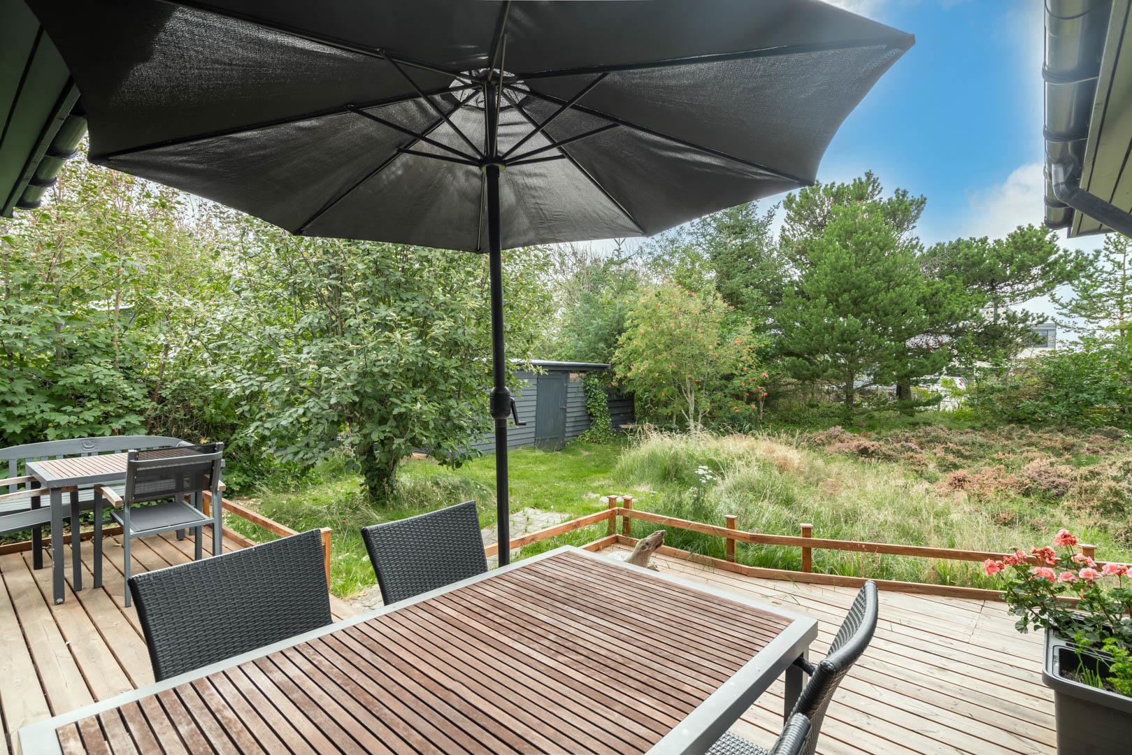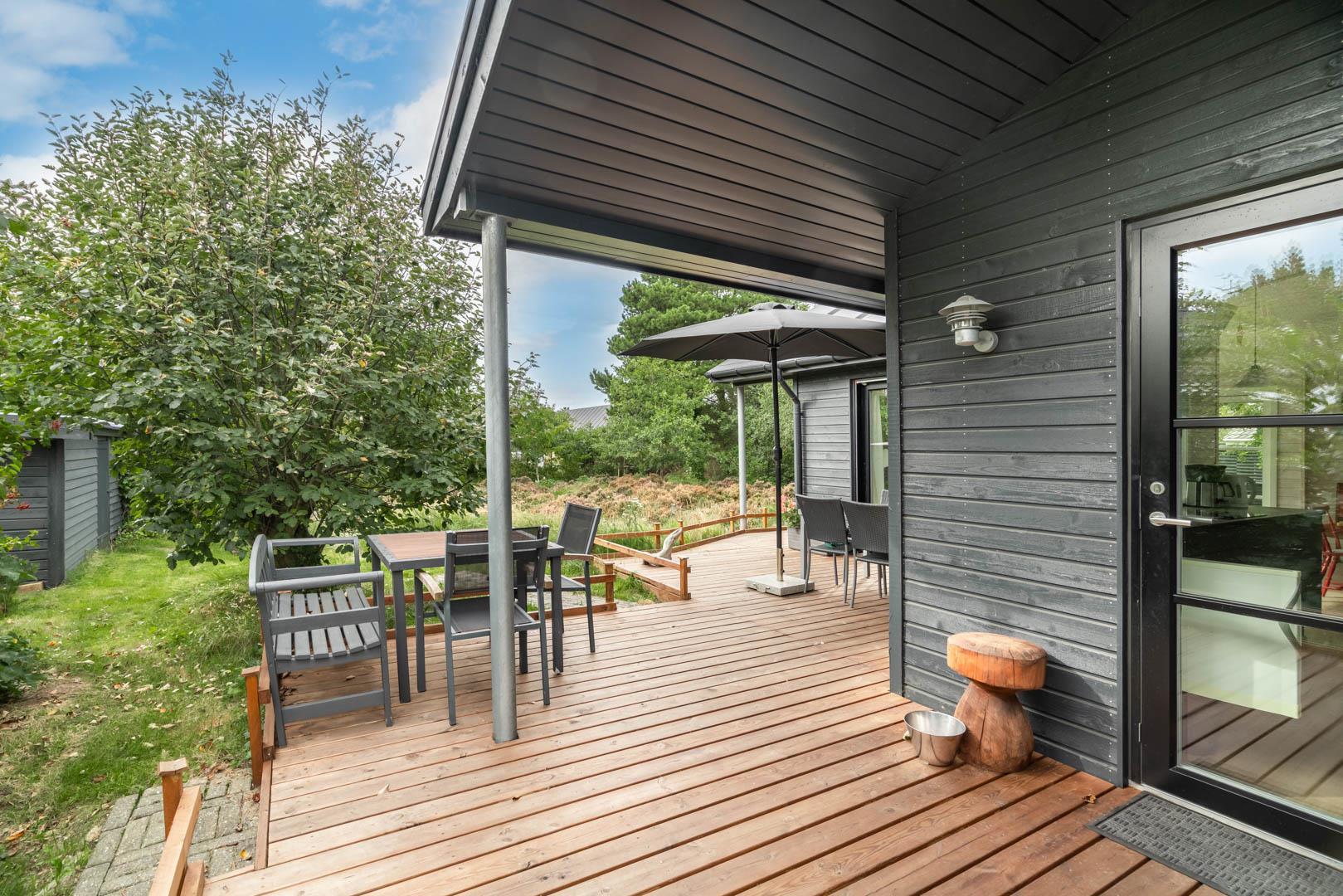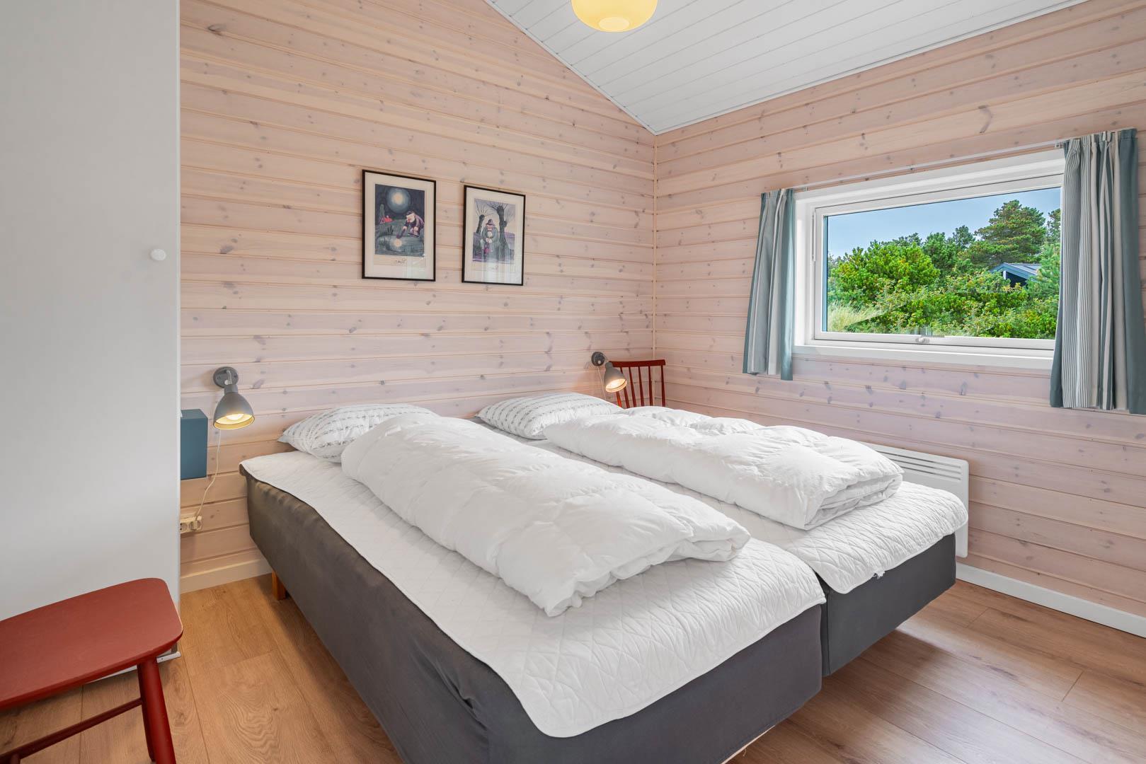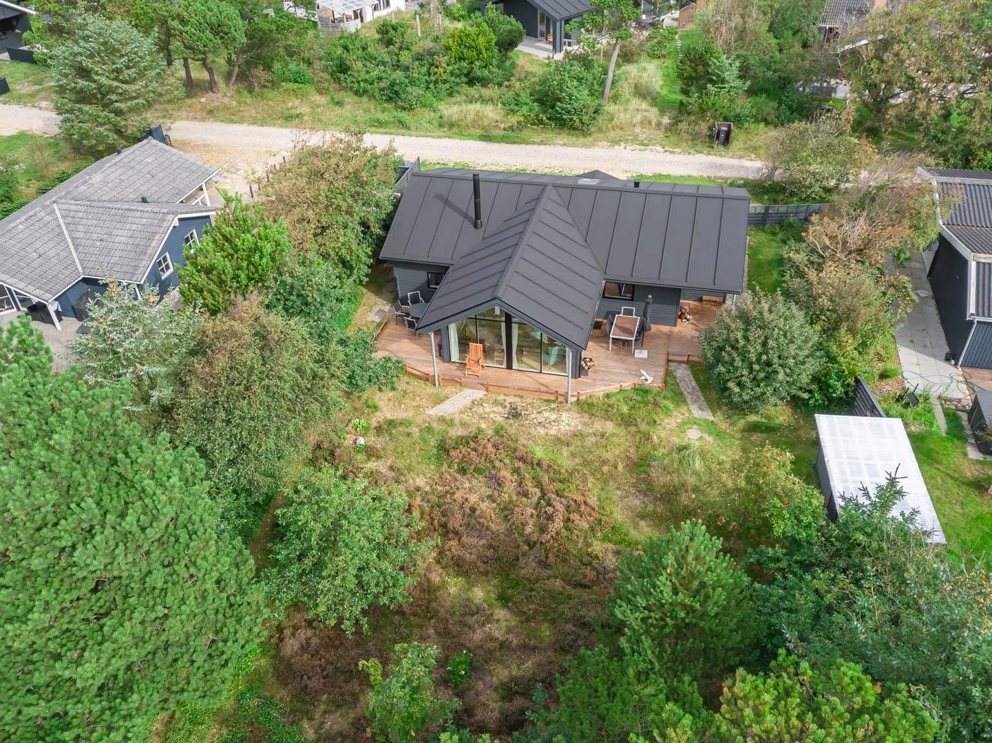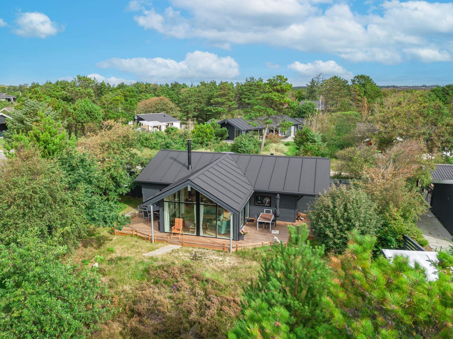 Nahe der Stadt und dennoch in ruhiger Umgebung liegt dieses charmante Ferienhaus im Bekkasinvej 1. Das Ferienhaus wurde im Jahr 2022 gebaut, und es wurde Wert auf das gemütliche Wohnzimmer gelegt, das das Herzstück des Sommerhauses darstellt. Hier werden Sie sich sofort wohlfühlen! Das Wohnzimmer ist mit der gut ausgestatteten Küche verbunden, verfügt über eine hohe Decke und große Fenster, die für fantastisches Licht im Raum sorgen. Hier hat man das Gefühl, der Natur ganz nah zu sein. Ein fantastischer Ort zum Entspannen und Genießen. An den kühlen Tagen können Sie sich natürlich auch vor dem Holzofen in ein gutes Buch vertiefen. Das Ferienhaus bietet Platz für 6 Personen und verfügt über 3 gute Schlafzimmer mit Doppelbetten und 2 stilvolle Badezimmer. In einem Badezimmer finden Sie auch eine Sauna, sodass Sie in Ihrem Urlaub das gewisse Extra an Wohlbefinden und Entspannung erleben können. Das ungestörte Grundstück, umgeben von Bäumen, lädt zu schönen Erinnerungen ein. Auf den drei schönen Holzterrassen können Sie in Ruhe Ihren Morgenkaffee genießen, leckeres Essen auf dem Grill zaubern oder geschützt vor dem Wind entspannen und die Sonnenstrahlen genießen. In diesem schönen Ferienhaus in Henne Strand werden die Möglichkeit für unvergessliche Momente geschaffen.
